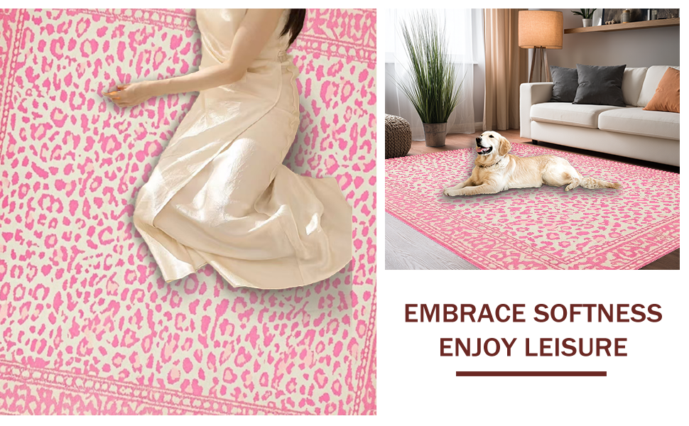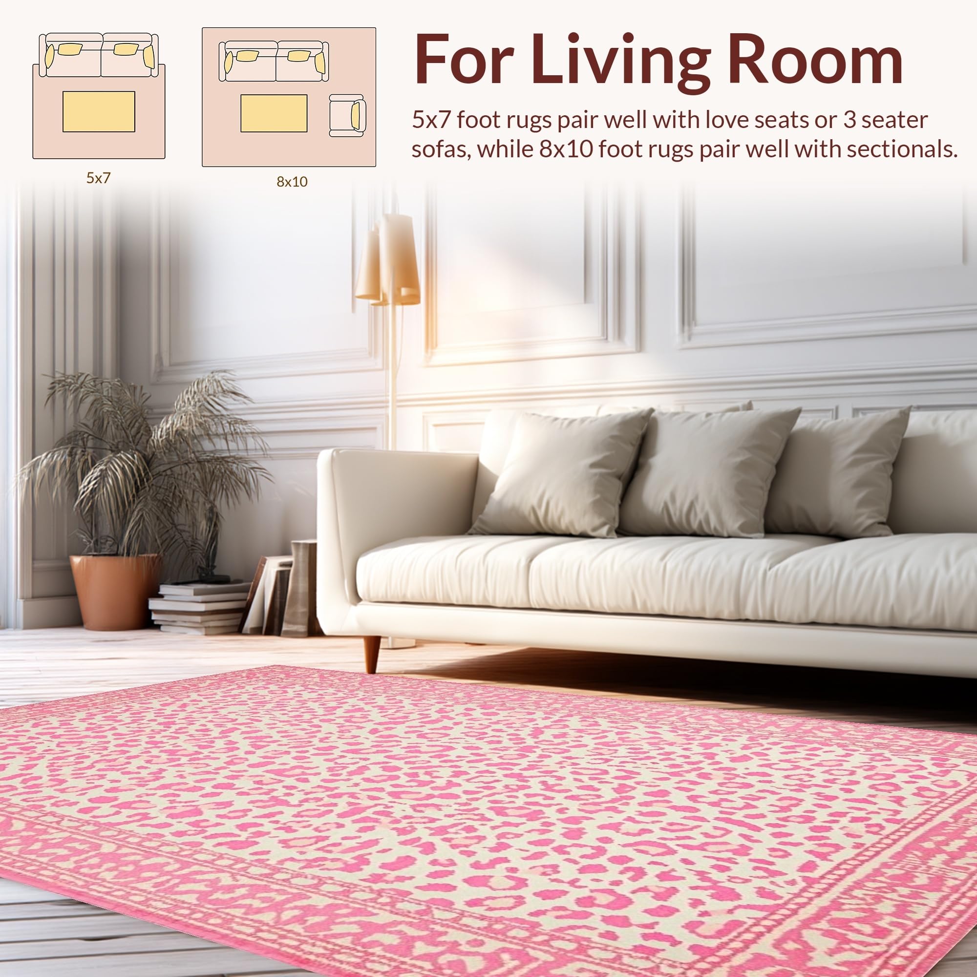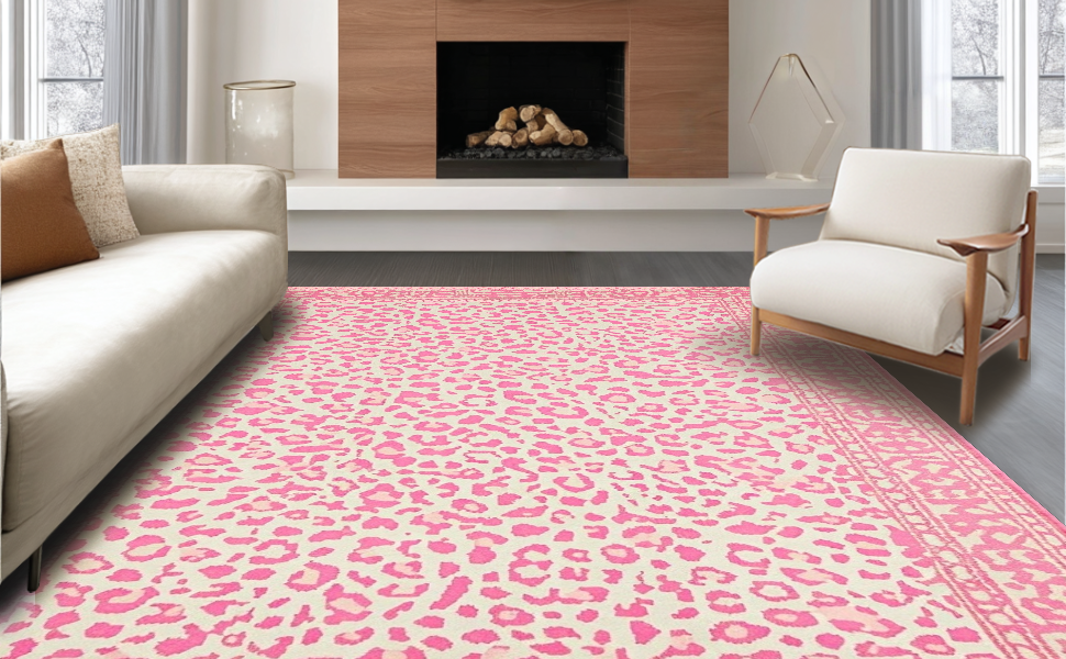 Ultra Soft Area Rug, Non Slip, Stain Resistant, Washable Area Rugs for Living Room, Bedroom, Transitional Soft Tones Leopard Theme(Pink) Overview: