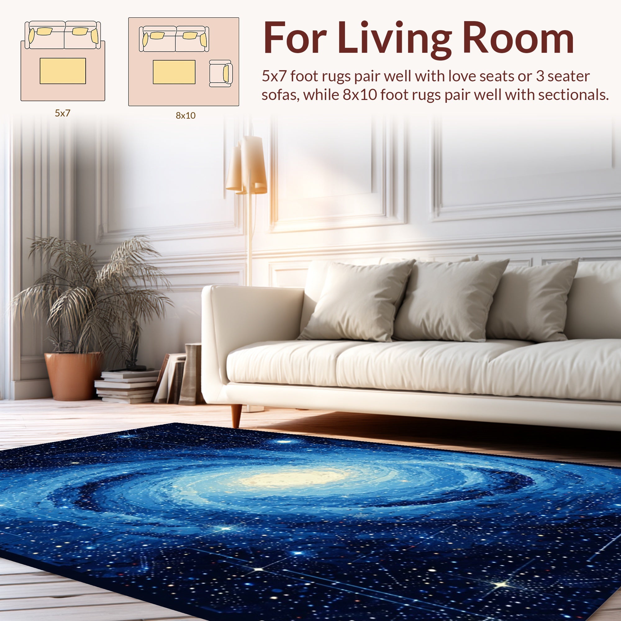 Flatwoven High Traffic Area Rug, Transitional Space Odyssey Palette, Non Slip, Stain Resistant, Washable Area Rugs for Living Room, Bedroom (Blue) Overview: