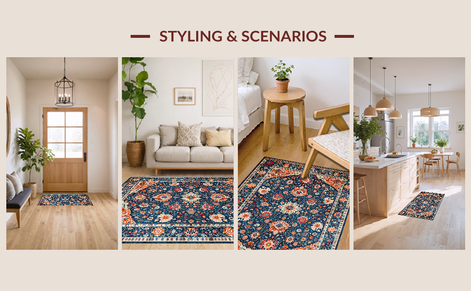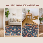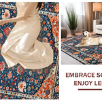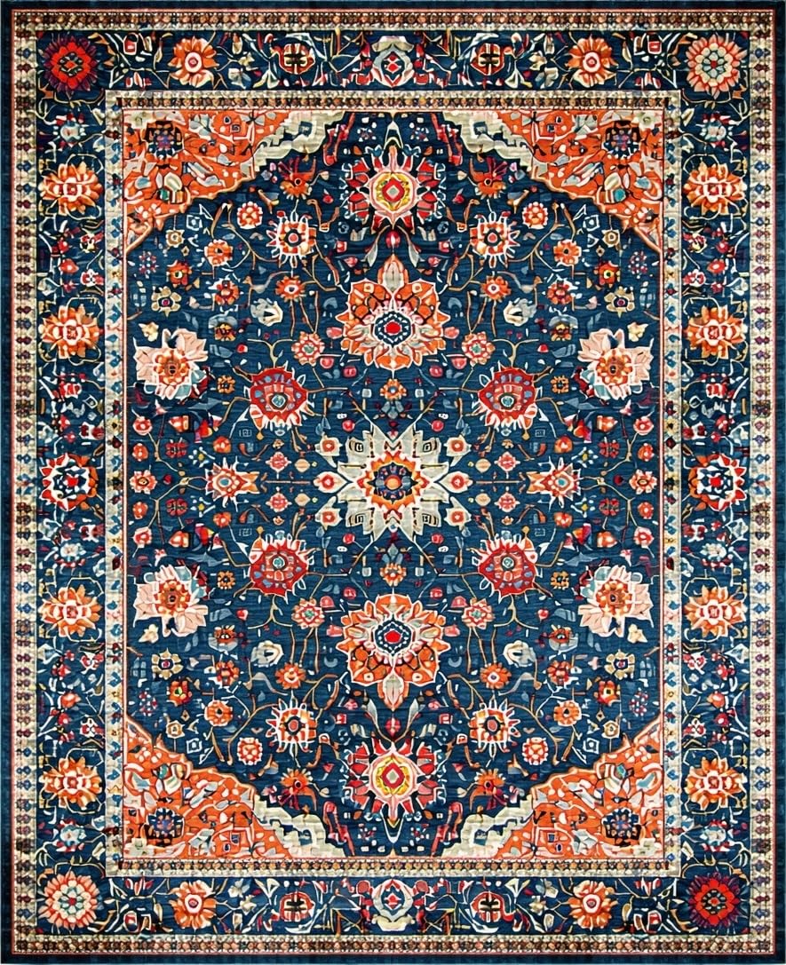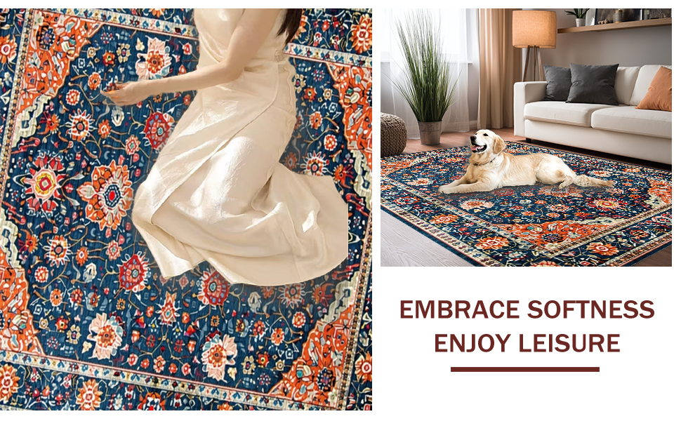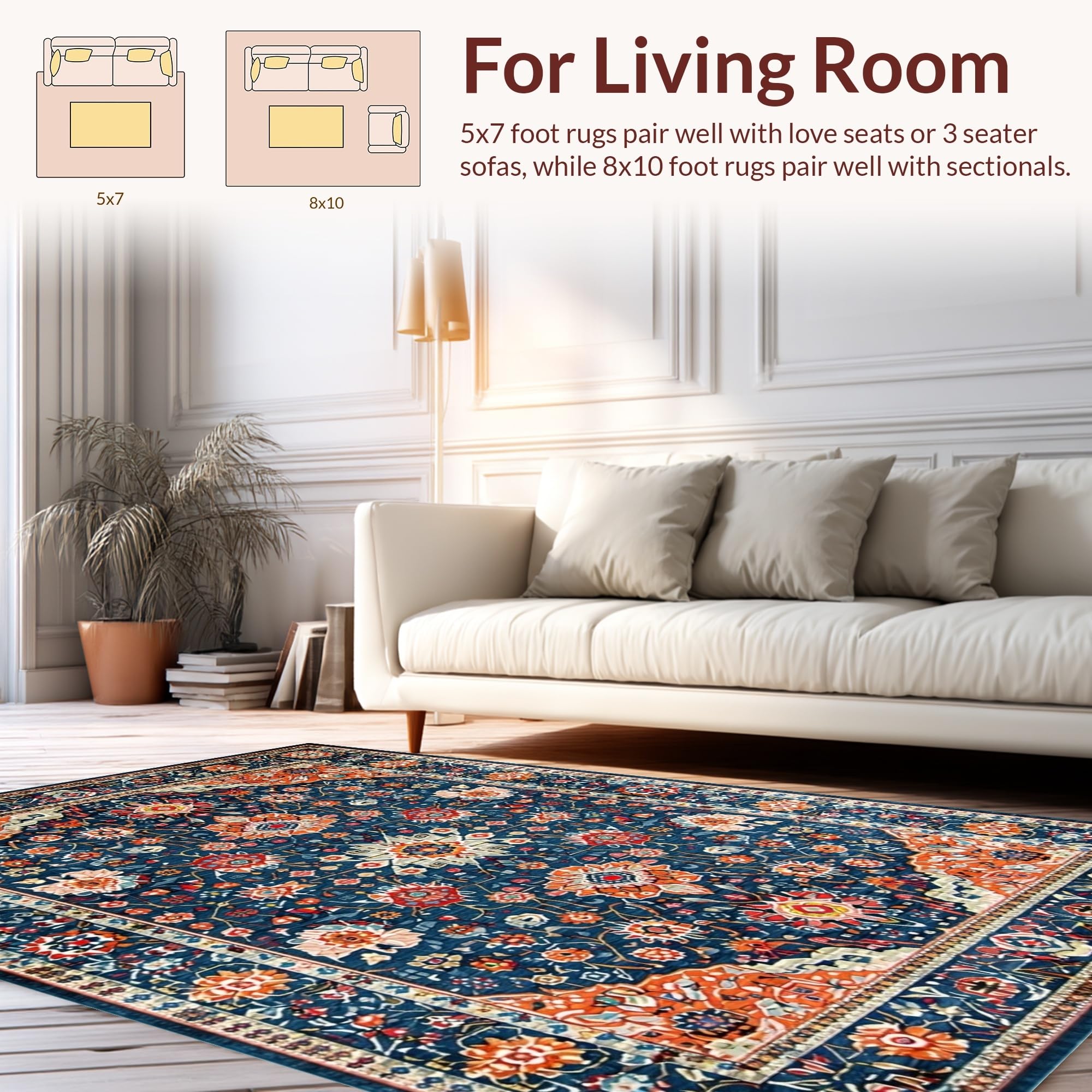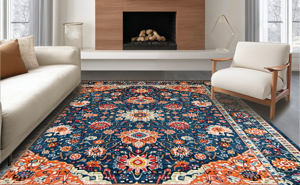 Ultra Soft Area Rug, Non Slip, Stain Resistant, Washable Area Rugs for Living Room, Bedroom, Transitional Symmetrical Pattern Harmony(Blue) Overview: