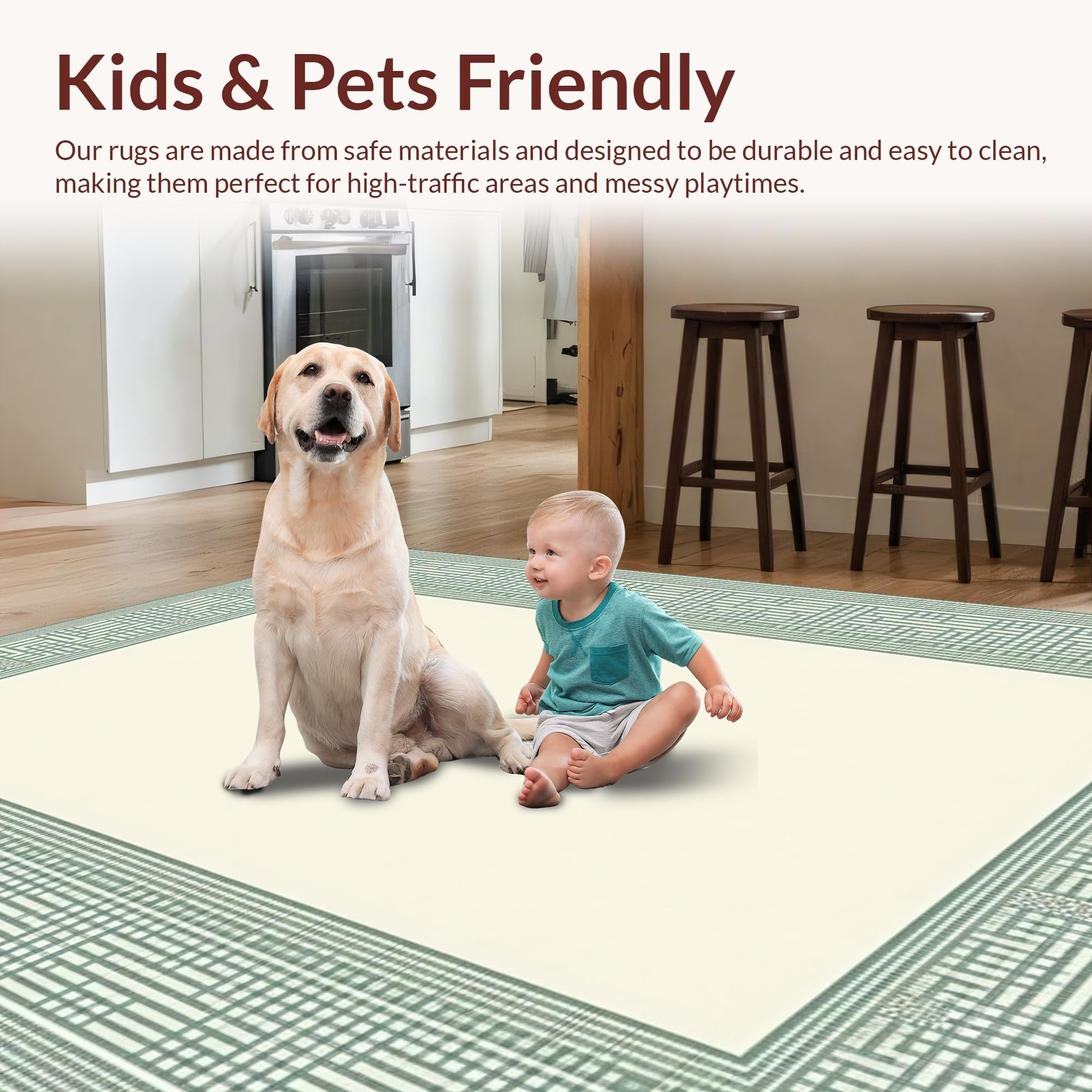 Ultra Soft Area Rug, Non Slip, Stain Resistant, Washable Area Rugs for Living Room, Bedroom, Transitional Textured Geometric Visuals(Beige) Overview:
