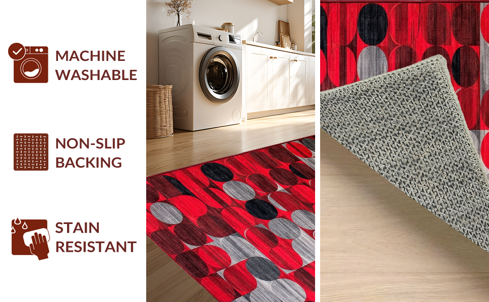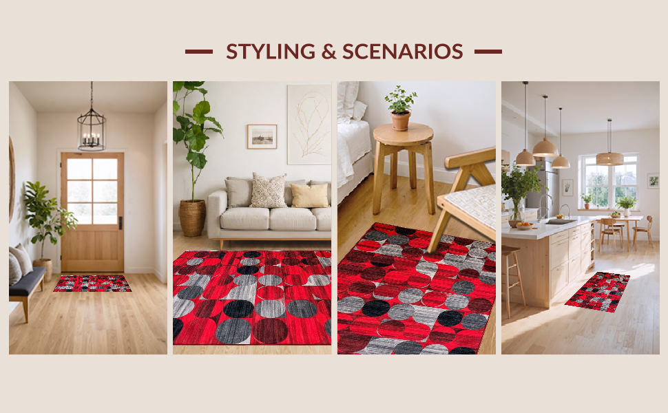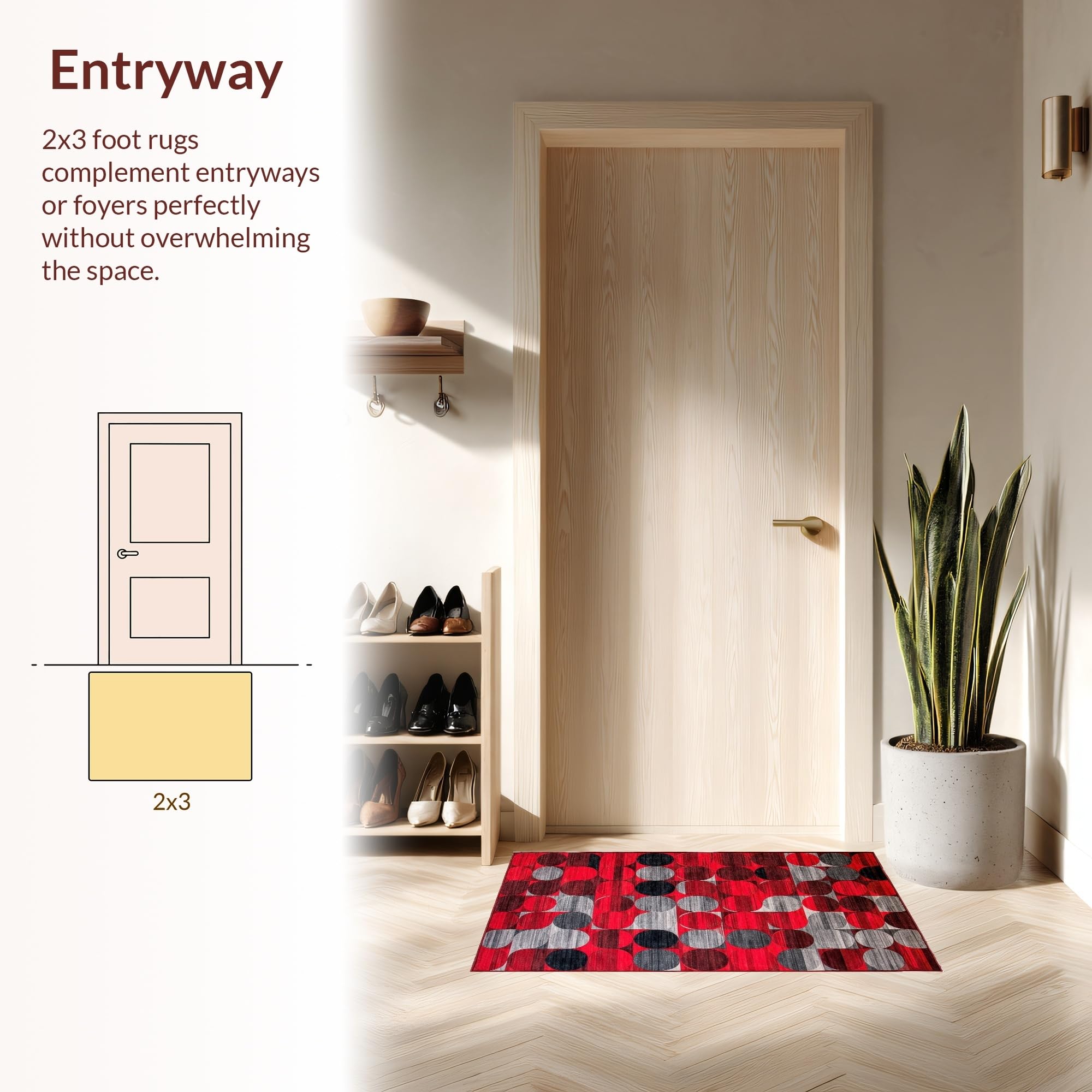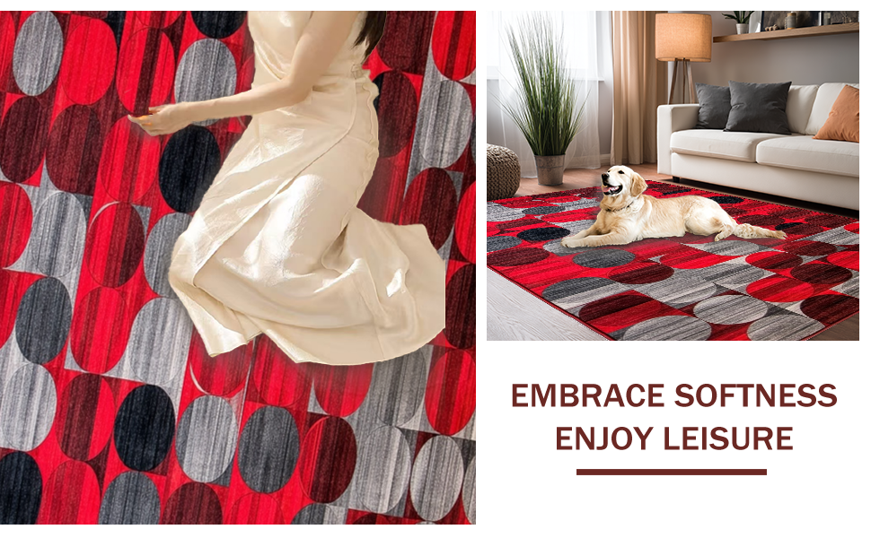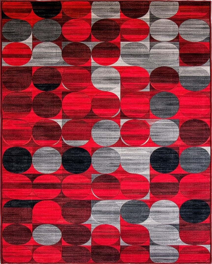 Ultra Soft Area Rug, Non Slip, Stain Resistant, Washable Area Rugs for Living Room, Bedroom, Trendy Abstract Circular Visuals(Red) Overview: