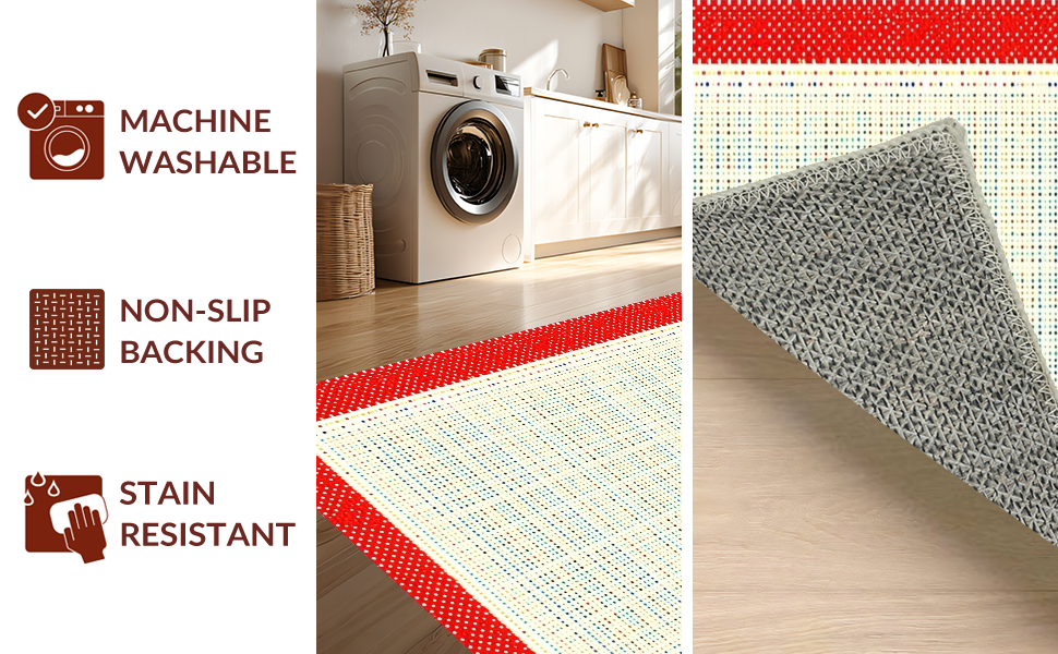 Ultra Soft Area Rug, Non Slip, Stain Resistant, Washable Area Rugs for Living Room, Bedroom, Trendy Abstract Dot Decor Style(Red) Overview: