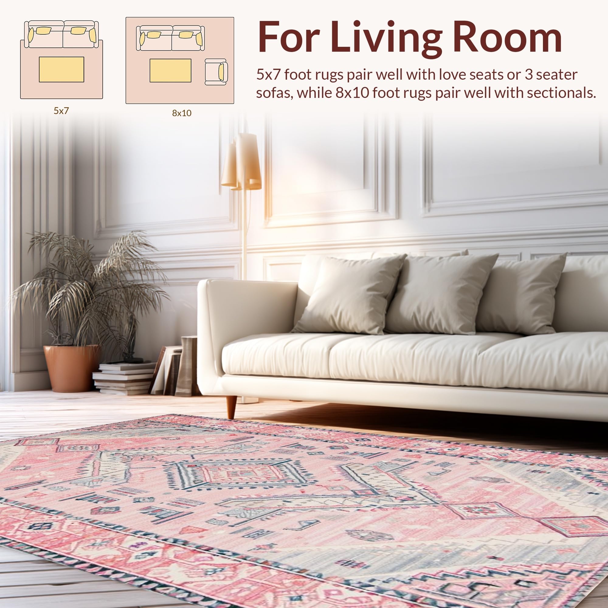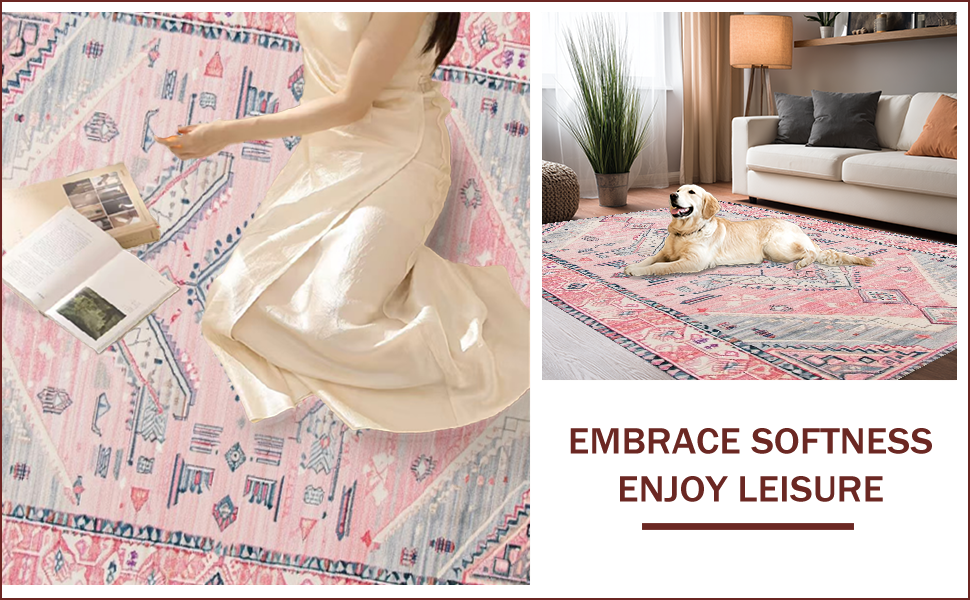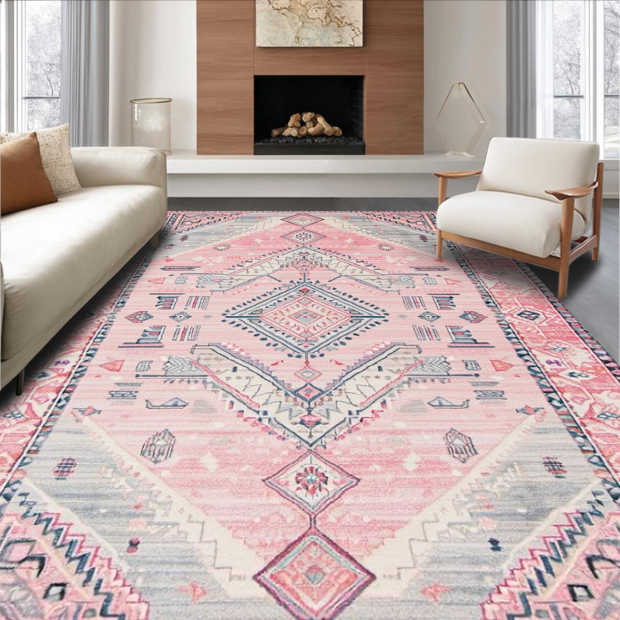 Ultra Soft Area Rug, Non Slip, Stain Resistant, Washable Area Rugs for Living Room, Bedroom, Trendy Abstract Soft Color Fusion(Pink) Overview: