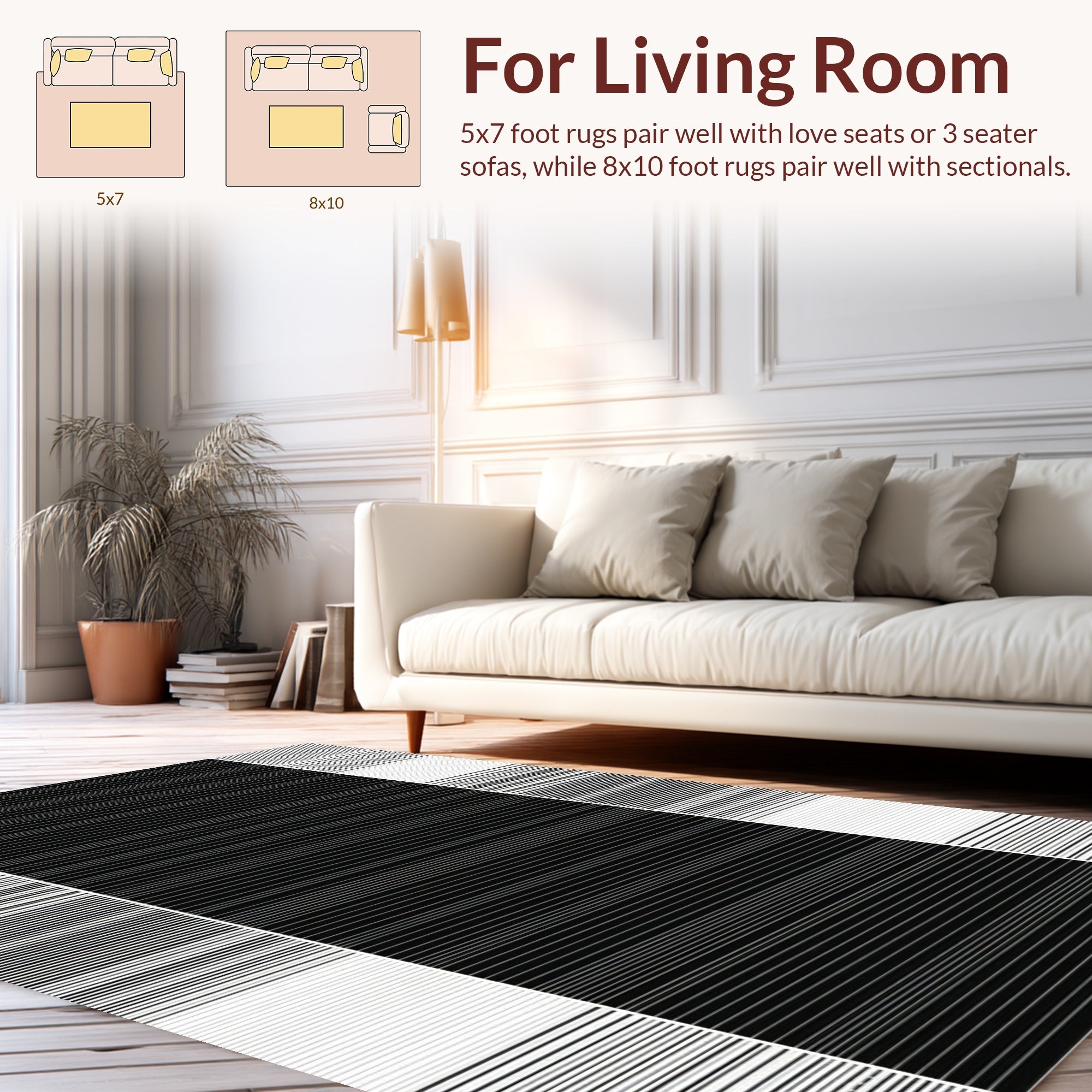 Flatwoven High Traffic Area Rug, Trendy Black and Camping Surface, Non Slip, Stain Resistant, Washable Area Rugs for Living Room, Bedroom (Black) Overview: