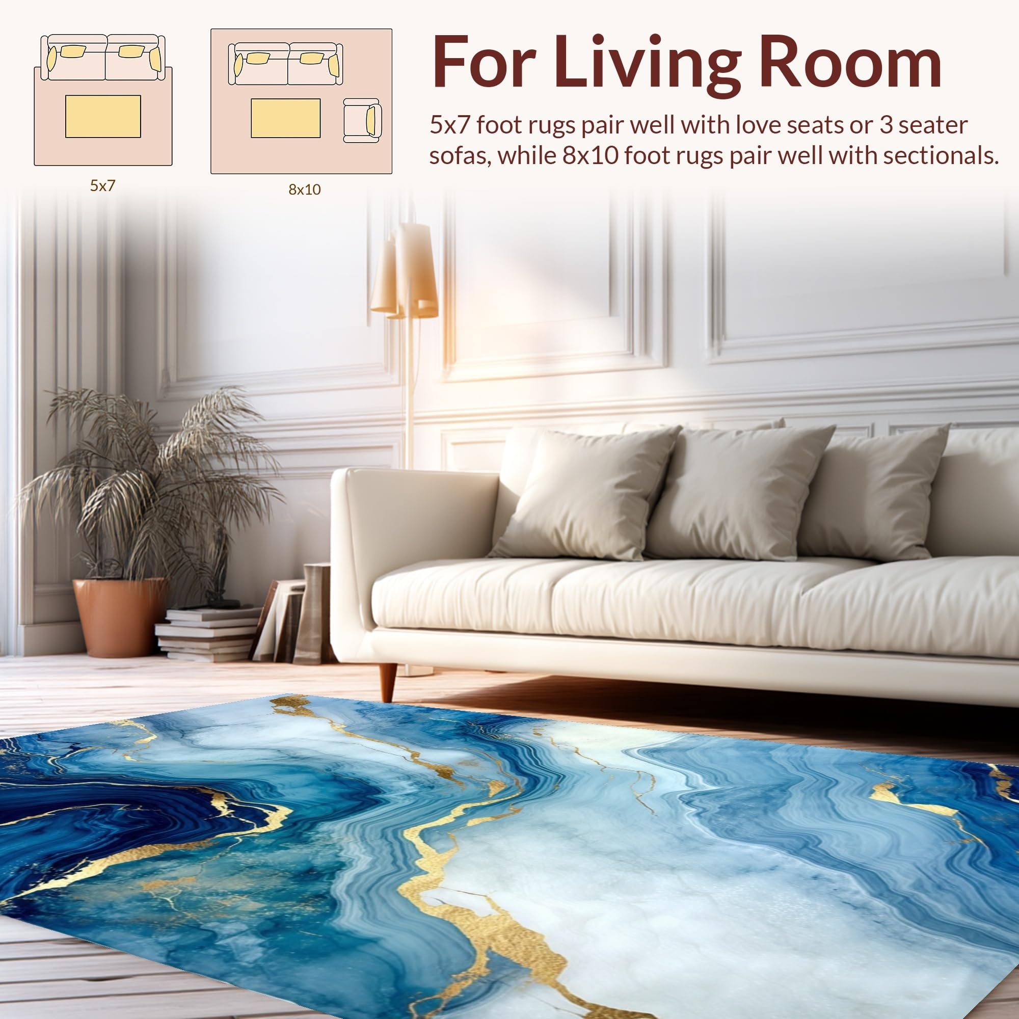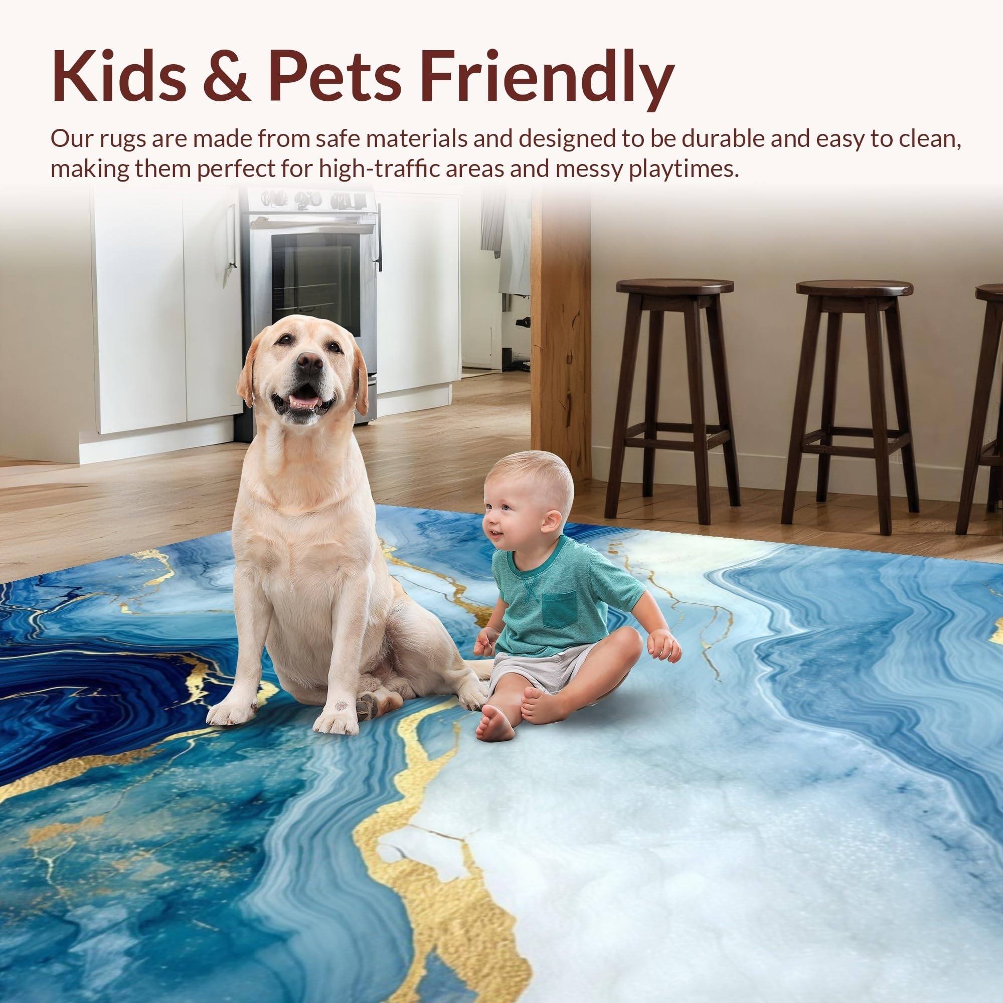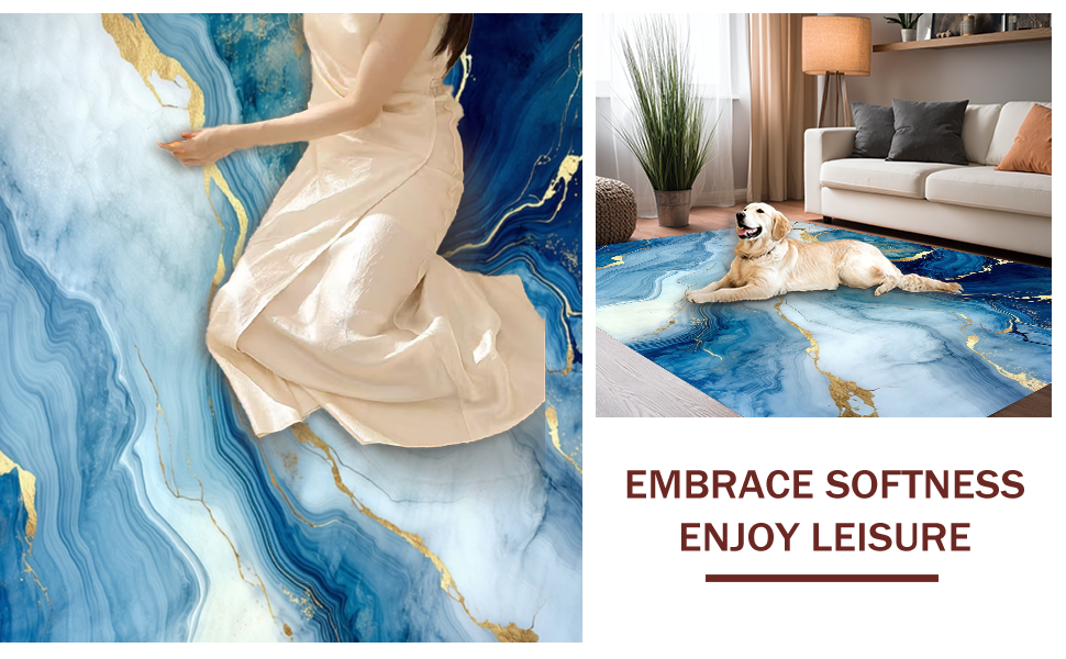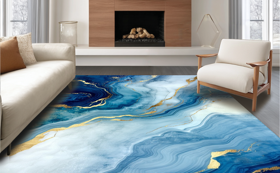 Ultra Soft Area Rug, Non Slip, Stain Resistant, Washable Area Rugs for Living Room, Bedroom, Trendy Blue and White Harmony(Blue) Overview: