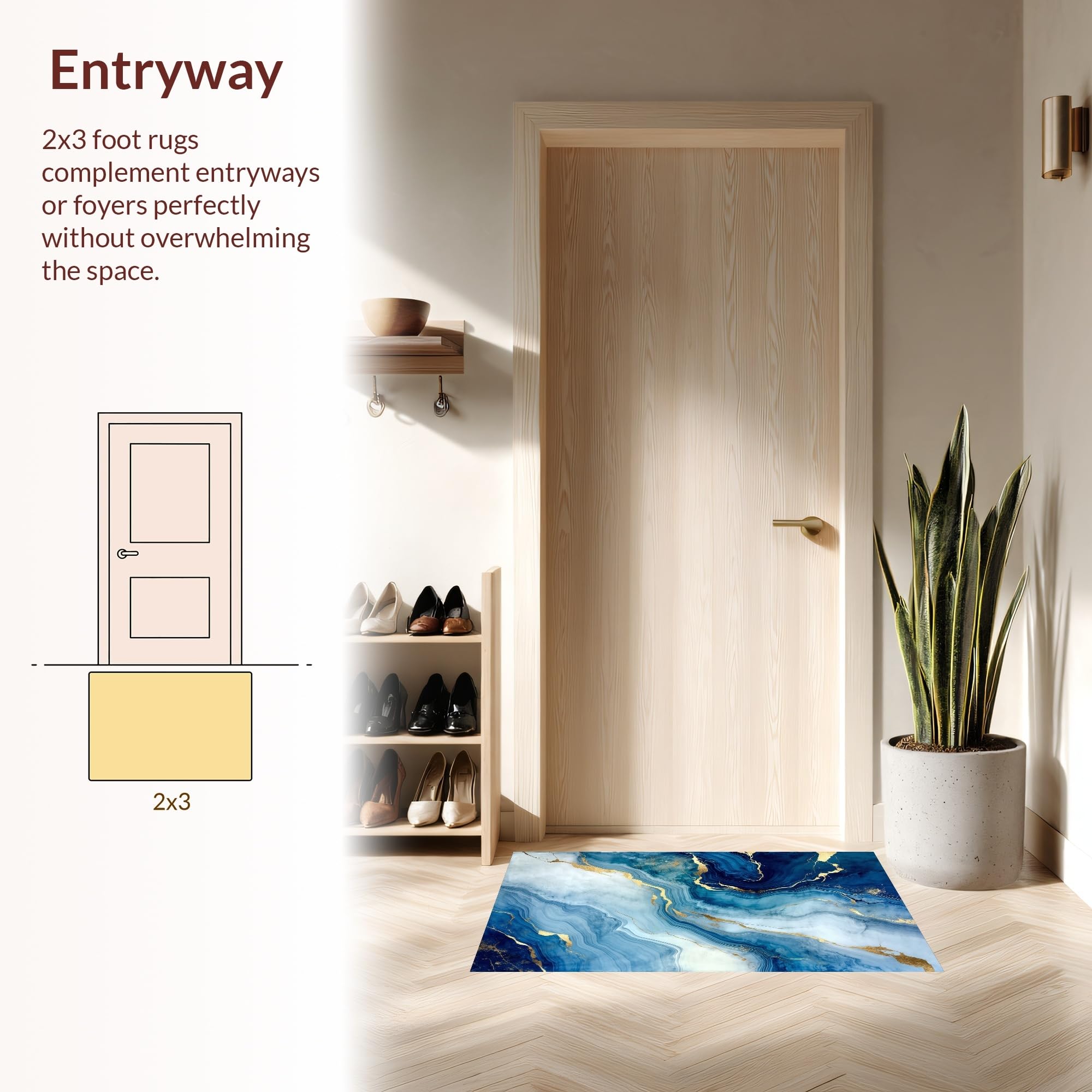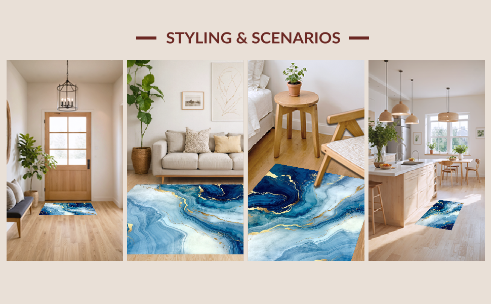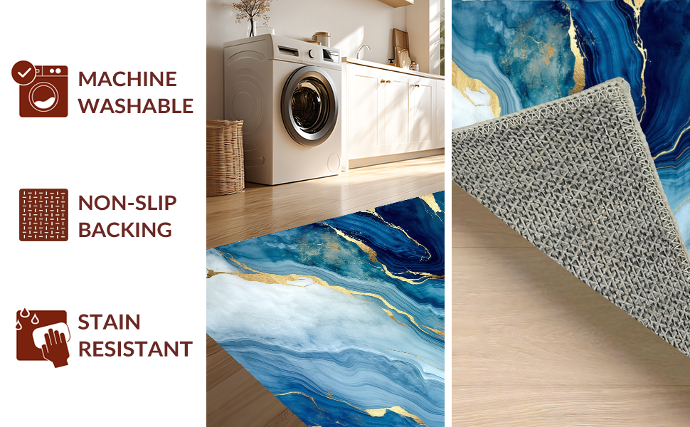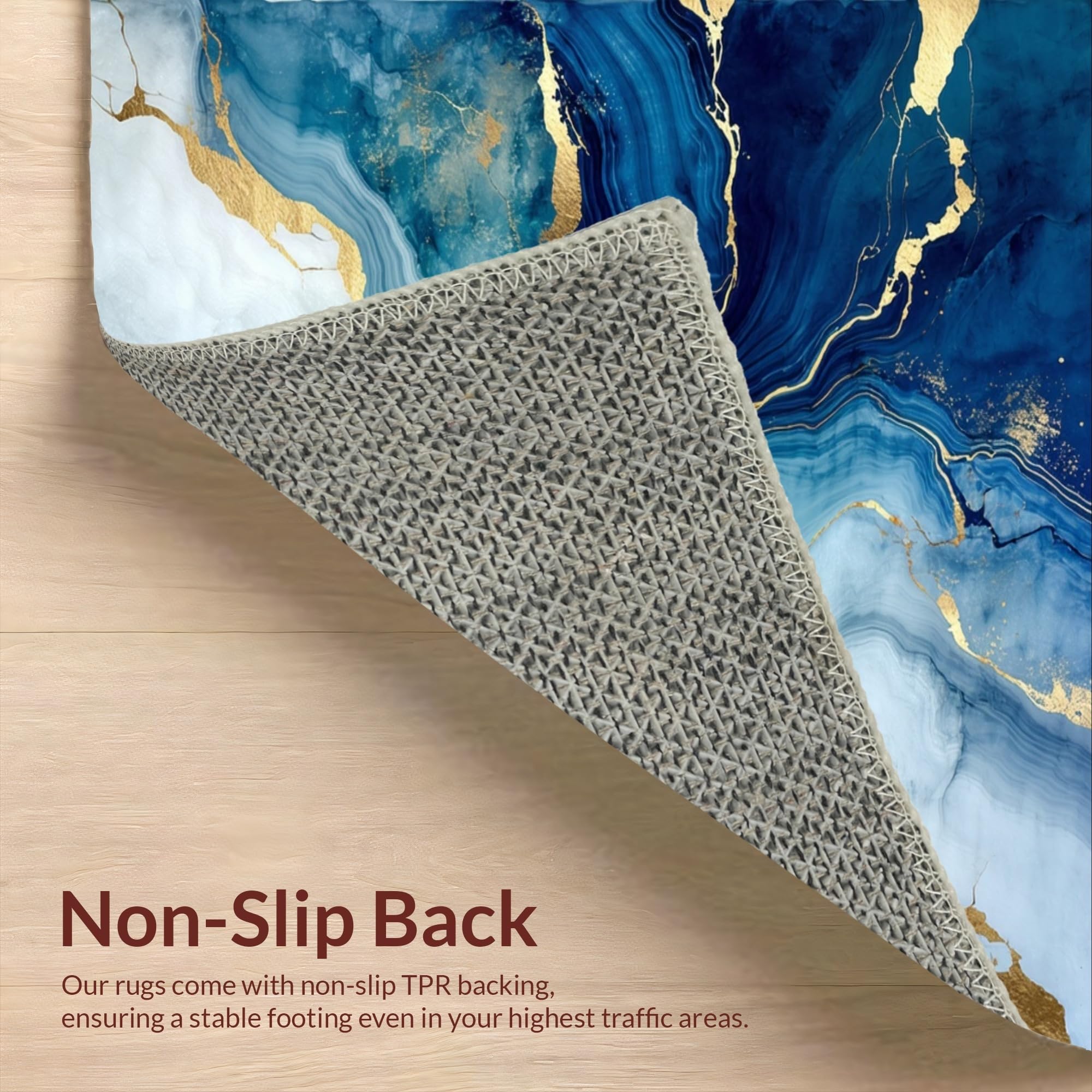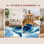 Ultra Soft Area Rug, Non Slip, Stain Resistant, Washable Area Rugs for Living Room, Bedroom, Trendy Blue and White Harmony(Blue) Overview: