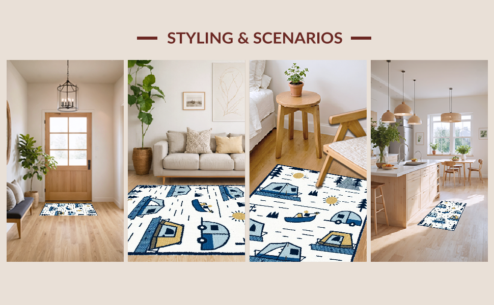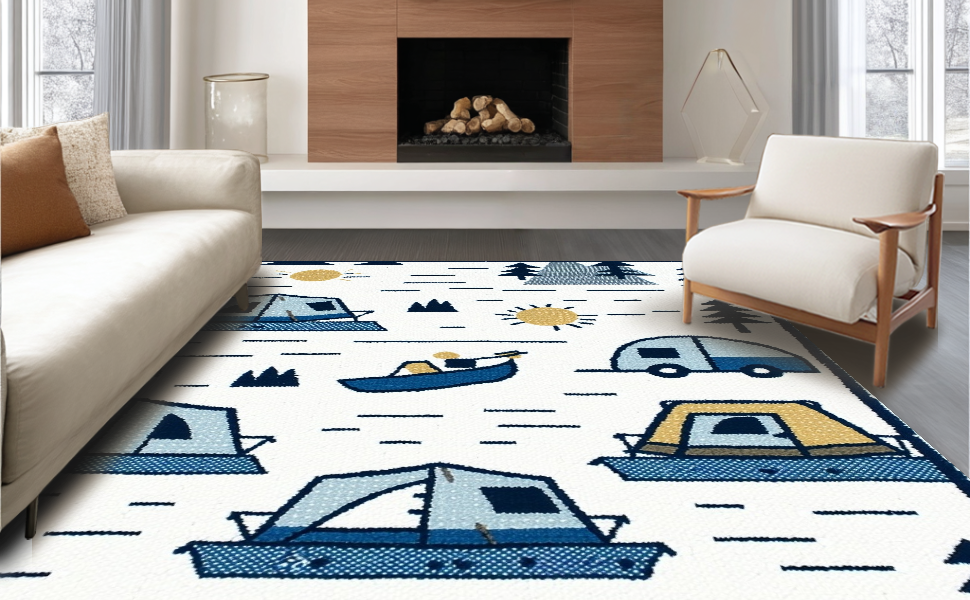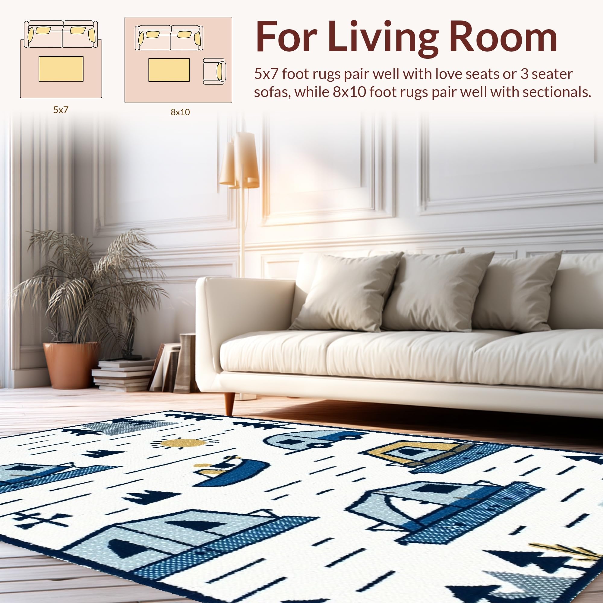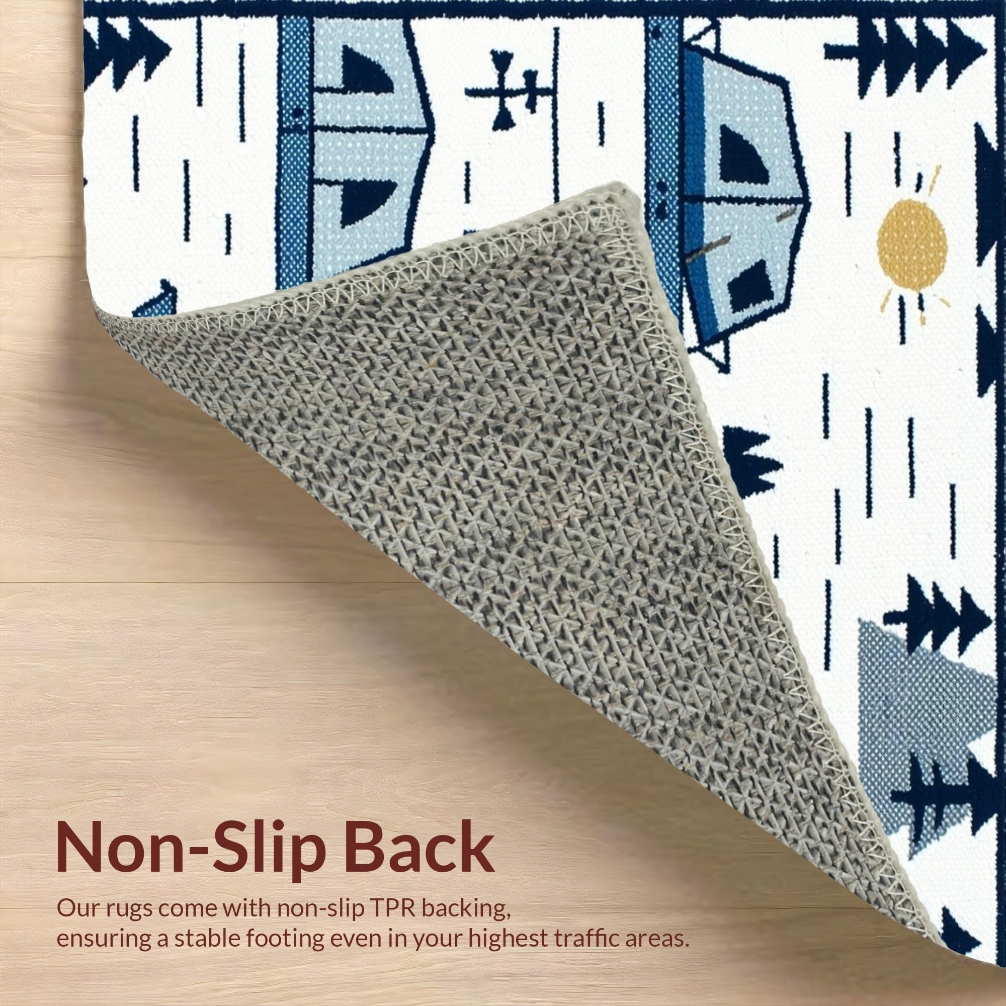 Ultra Soft Area Rug, Non Slip, Stain Resistant, Washable Area Rugs for Living Room, Bedroom, Trendy Blue Gray Nature Fusion(Blue) Overview:
