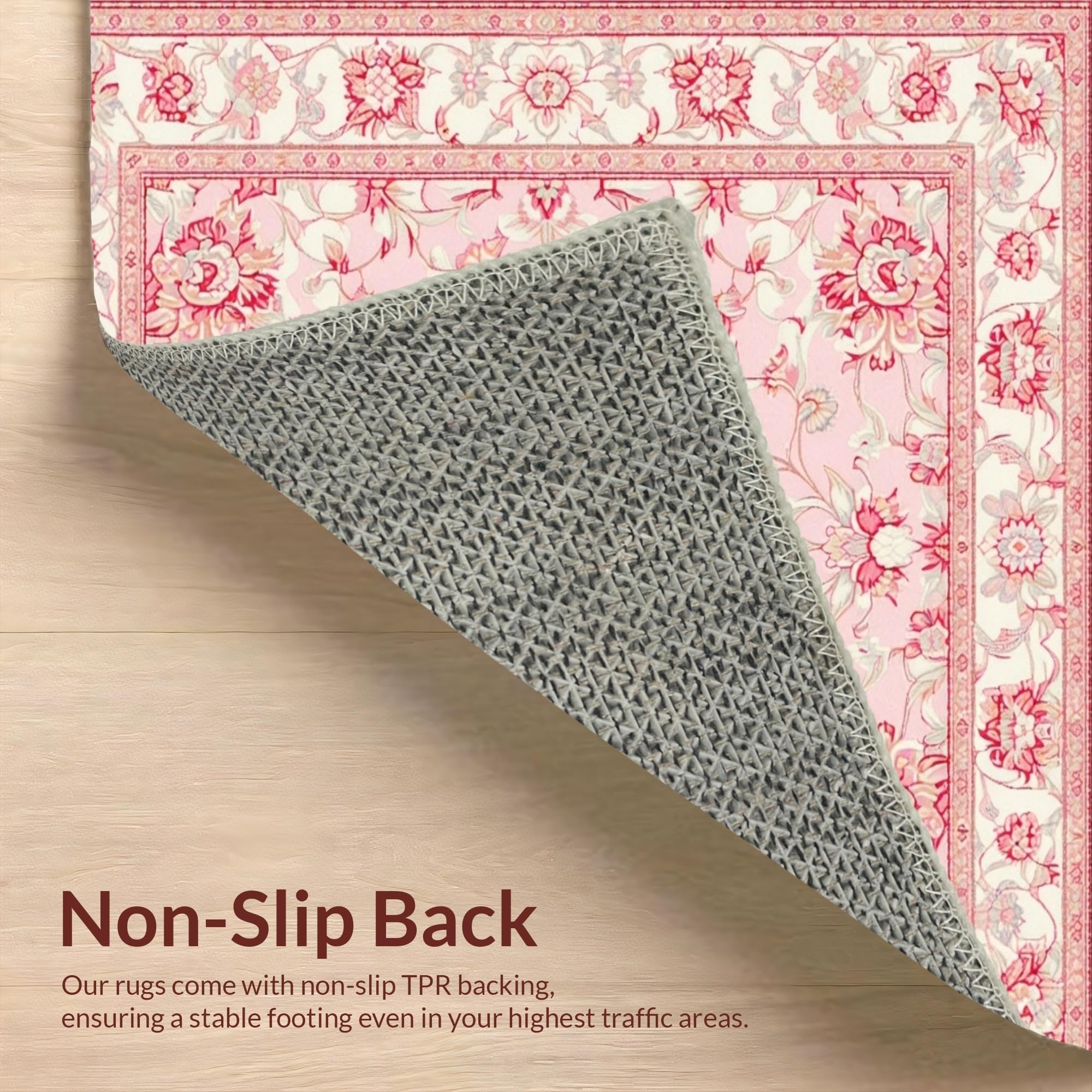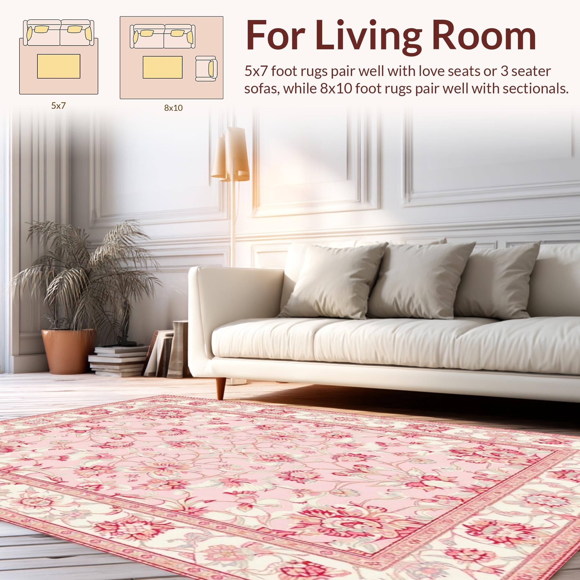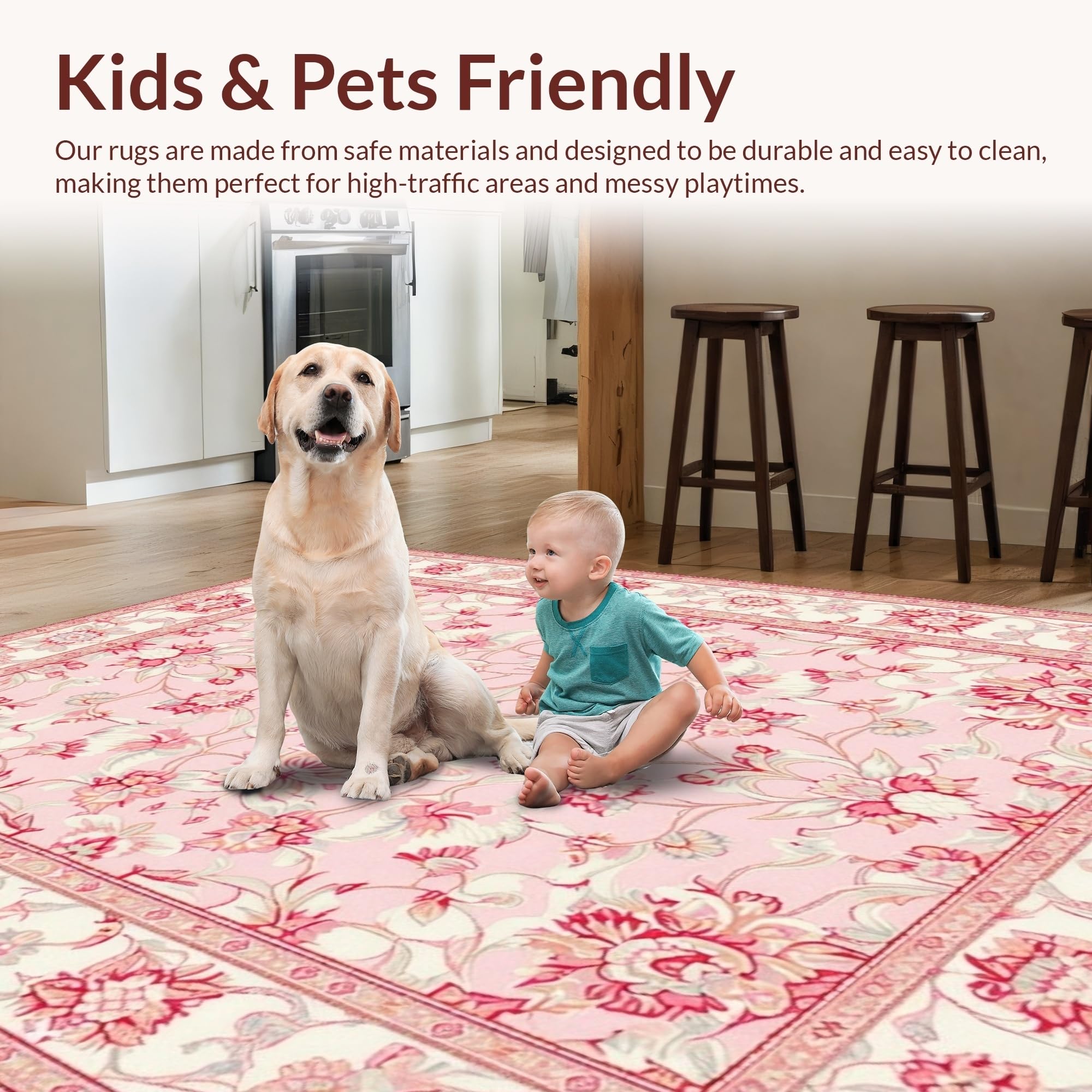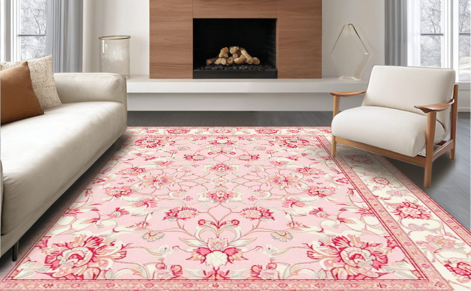 Ultra Soft Area Rug, Non Slip, Stain Resistant, Washable Area Rugs for Living Room, Bedroom, Trendy Blush and Blue Palette(Pink) Overview: