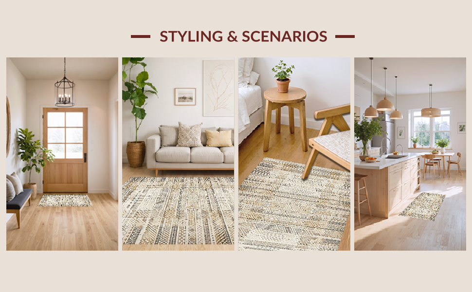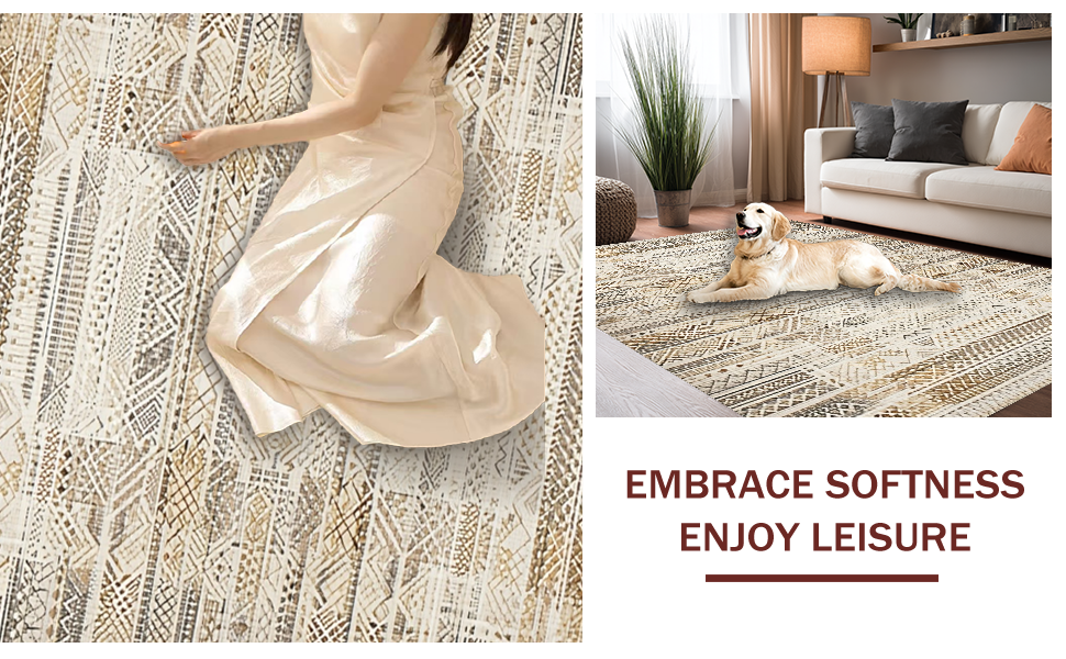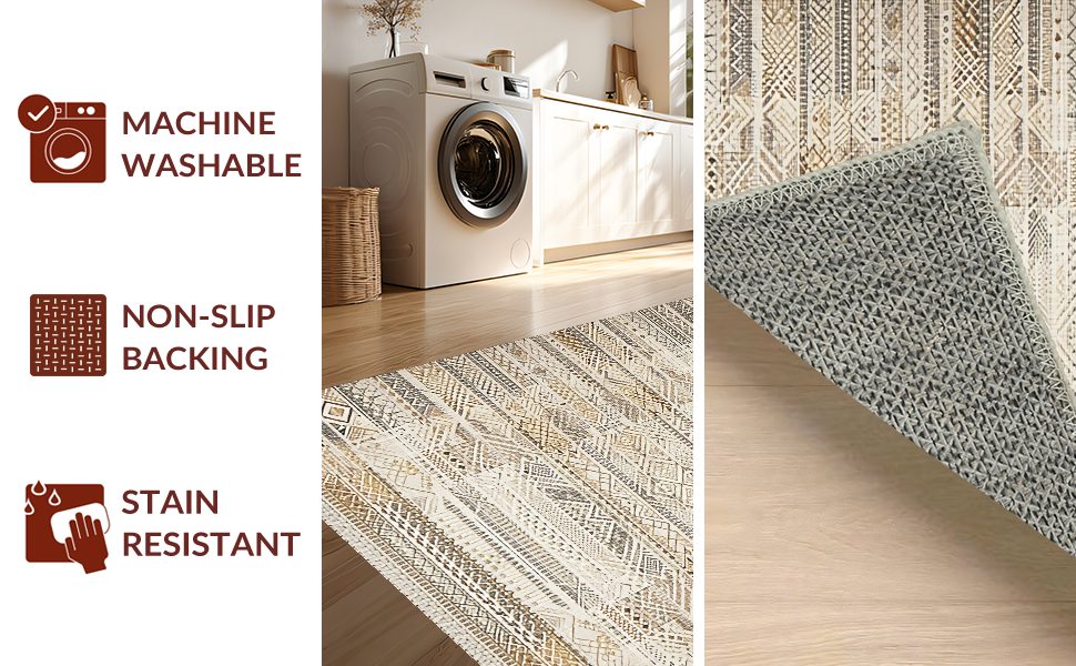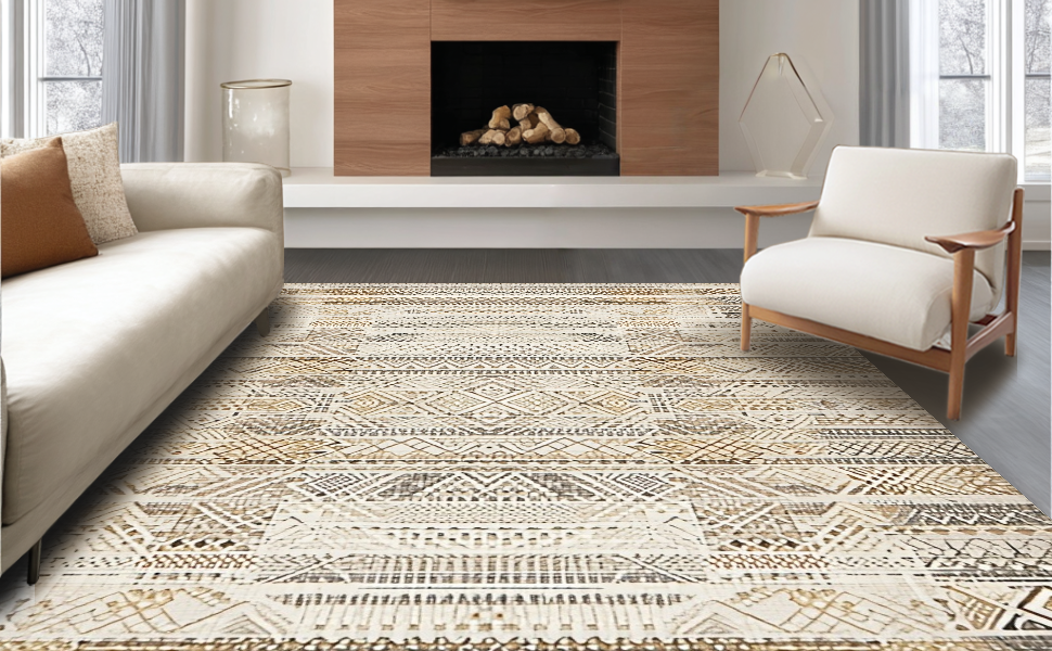 Ultra Soft Area Rug, Non Slip, Stain Resistant, Washable Area Rugs for Living Room, Bedroom, Trendy Boho Inspired Diamond Layout(Beige) Overview: