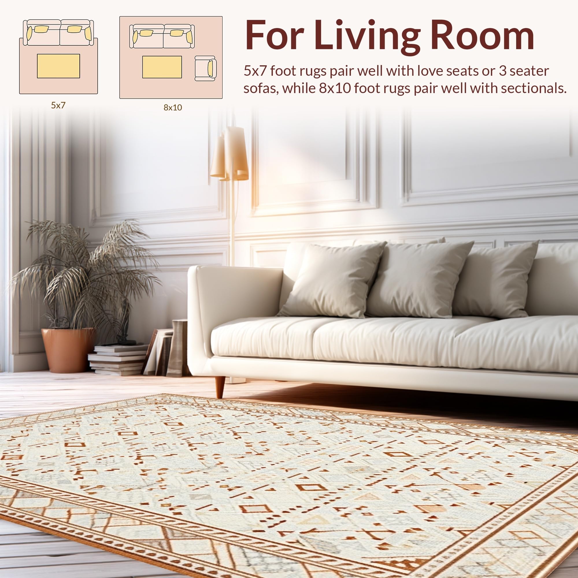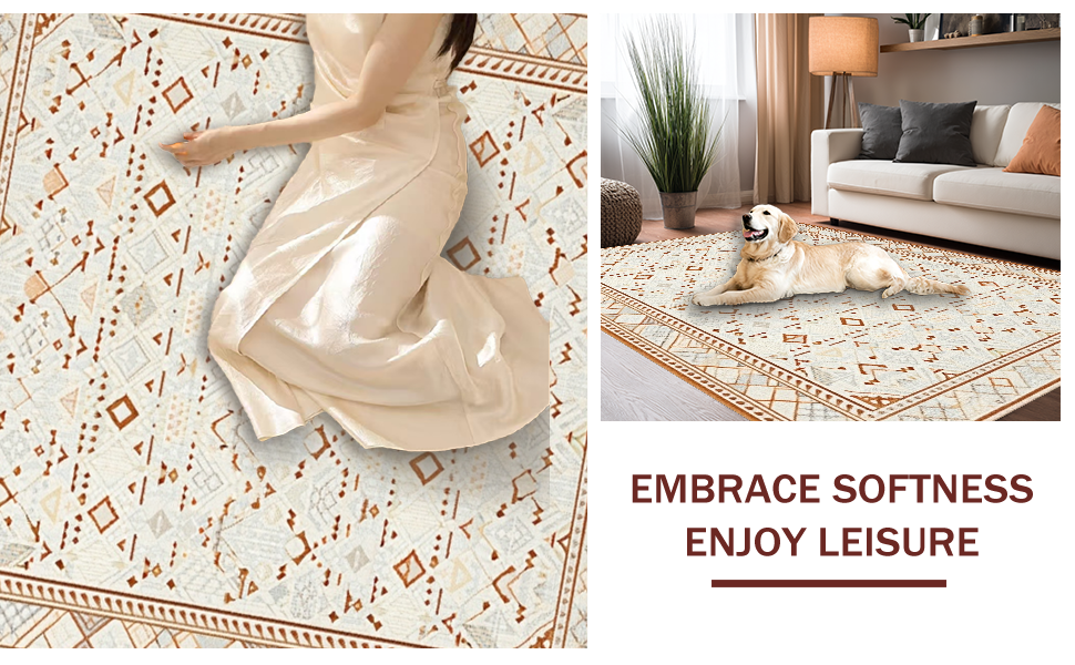 Ultra Soft Area Rug, Non Slip, Stain Resistant, Washable Area Rugs for Living Room, Bedroom, Trendy Casual Tassel Detailing(Beige) Overview: