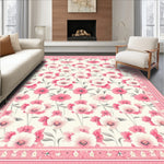 Flatwoven High Traffic Area Rug, Trendy Cheerful Botanical Print, Non Slip, Stain Resistant, Washable Area Rugs for Living Room, Bedroom (White) Overview: