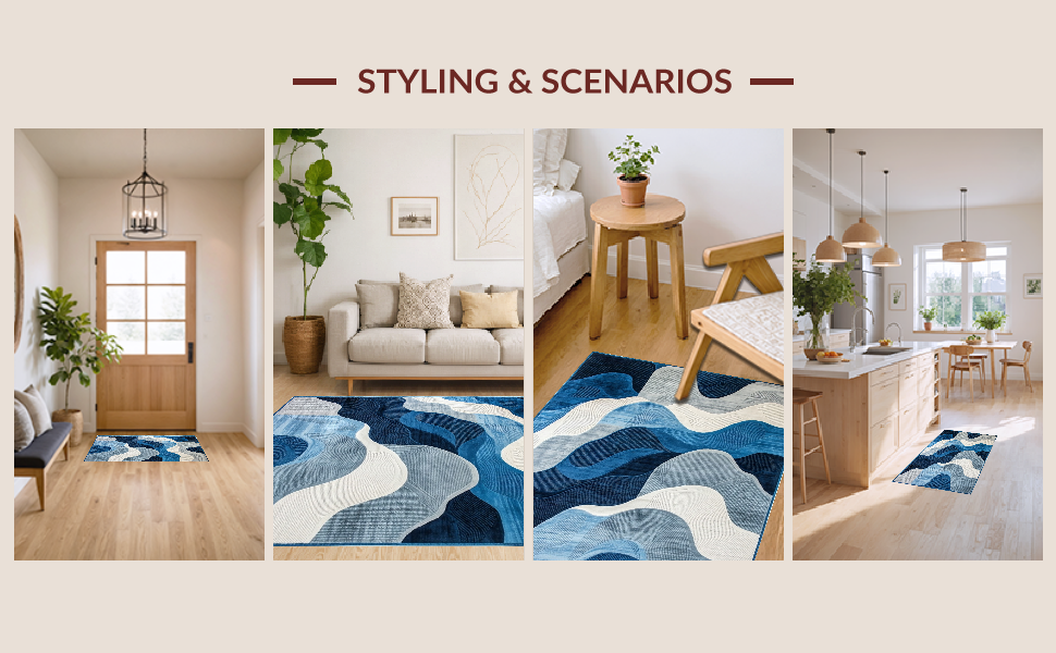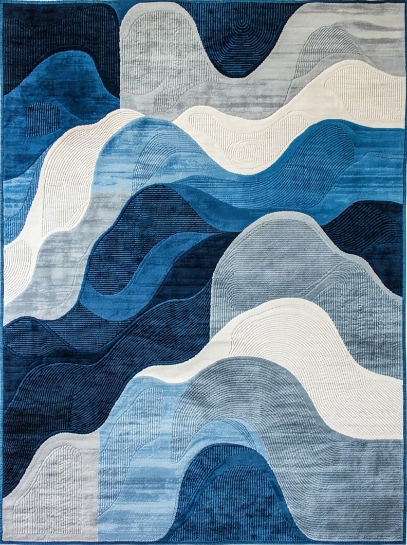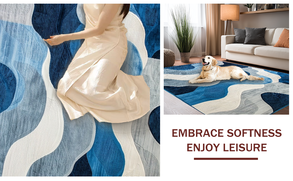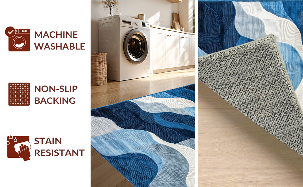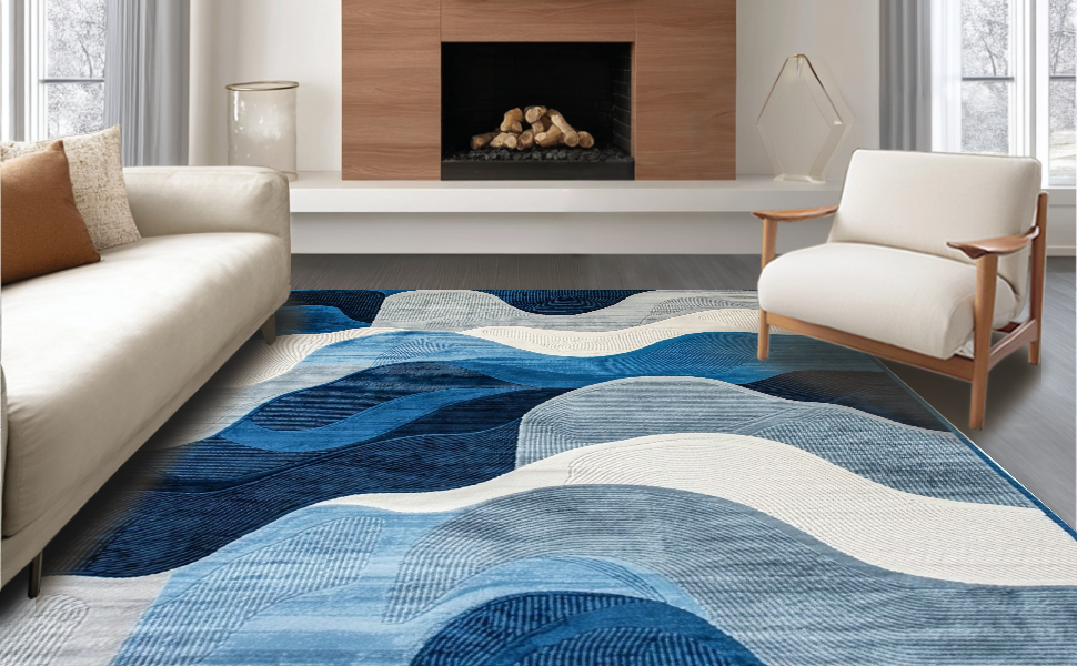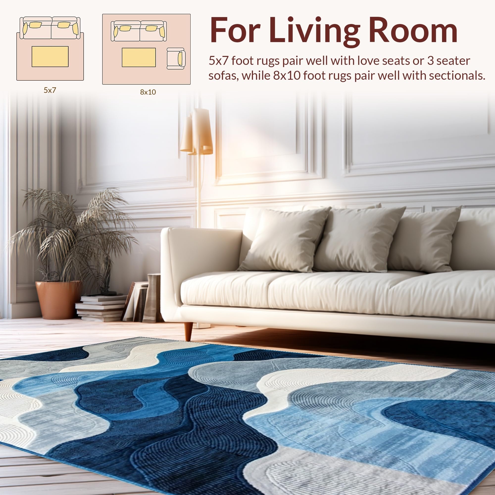 Ultra Soft Area Rug, Non Slip, Stain Resistant, Washable Area Rugs for Living Room, Bedroom, Trendy Coastal Wave-Inspired Design(Blue) Overview: