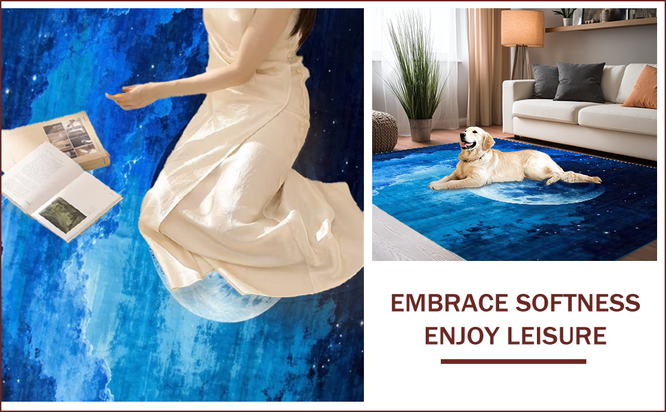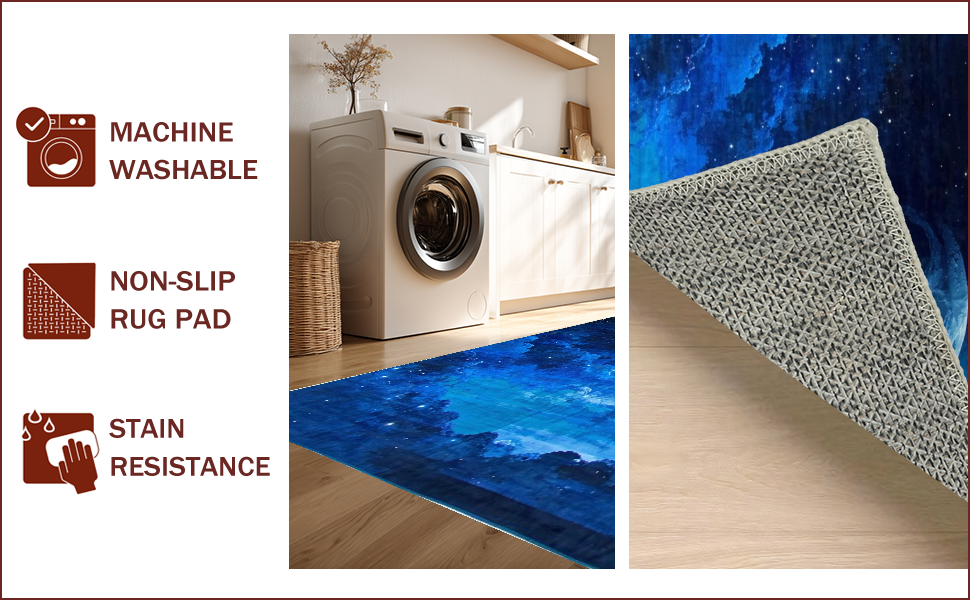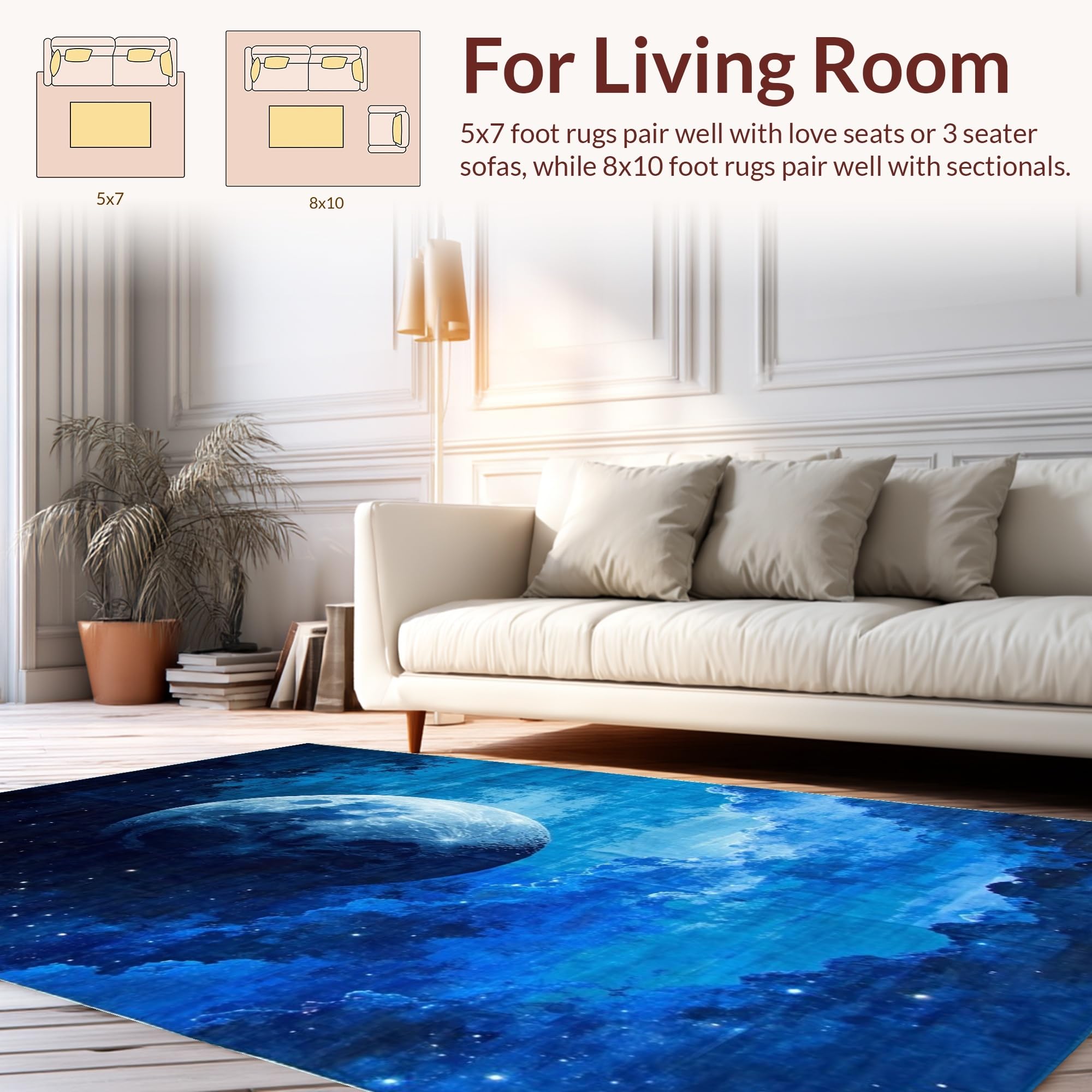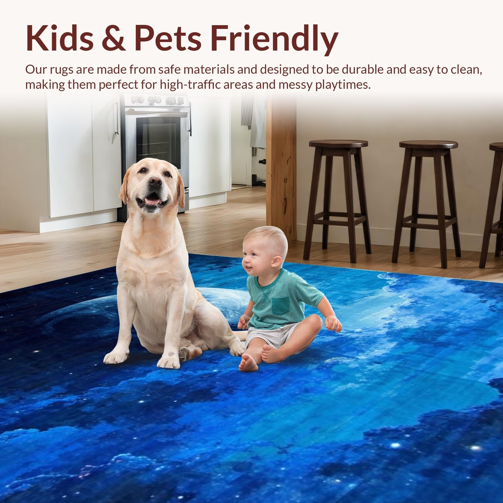 Ultra Soft Area Rug, Non Slip, Stain Resistant, Washable Area Rugs for Living Room, Bedroom, Trendy Cosmic Color Fusion(Blue) Overview: