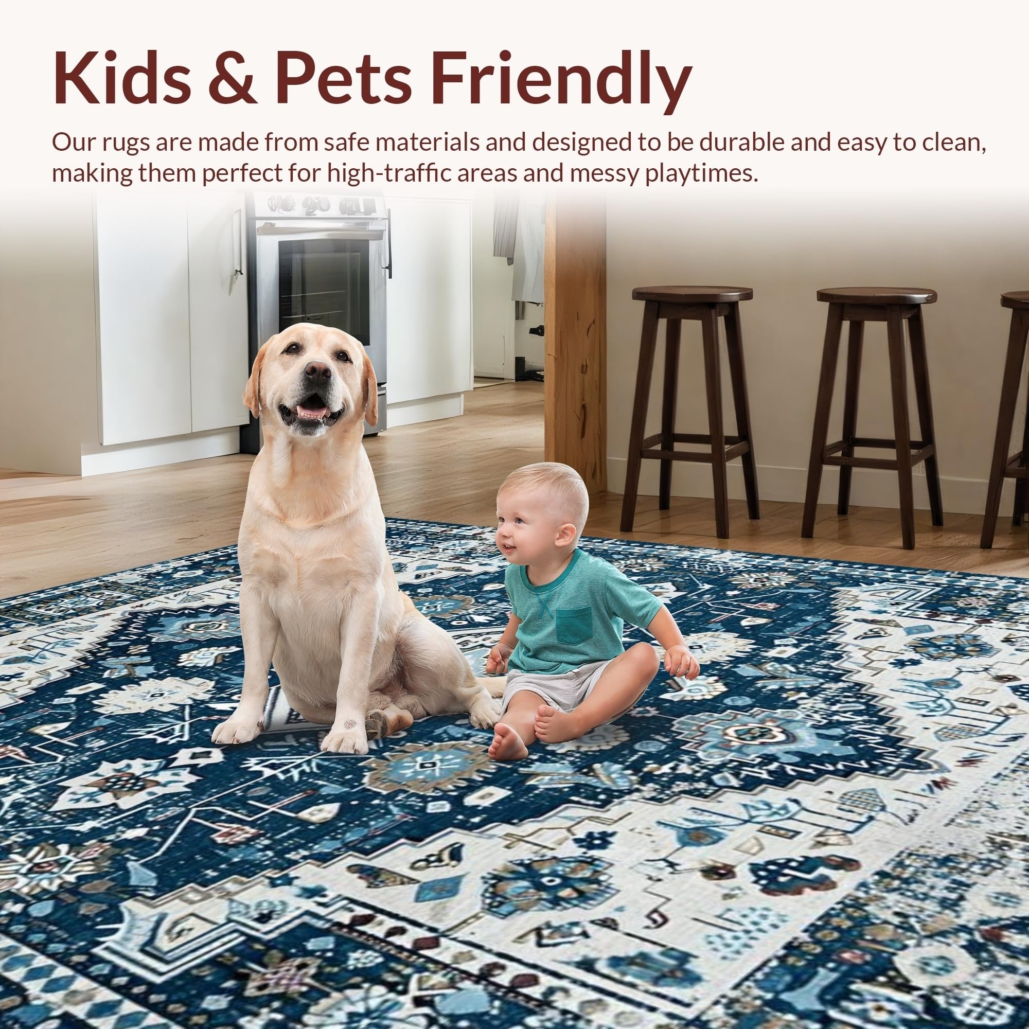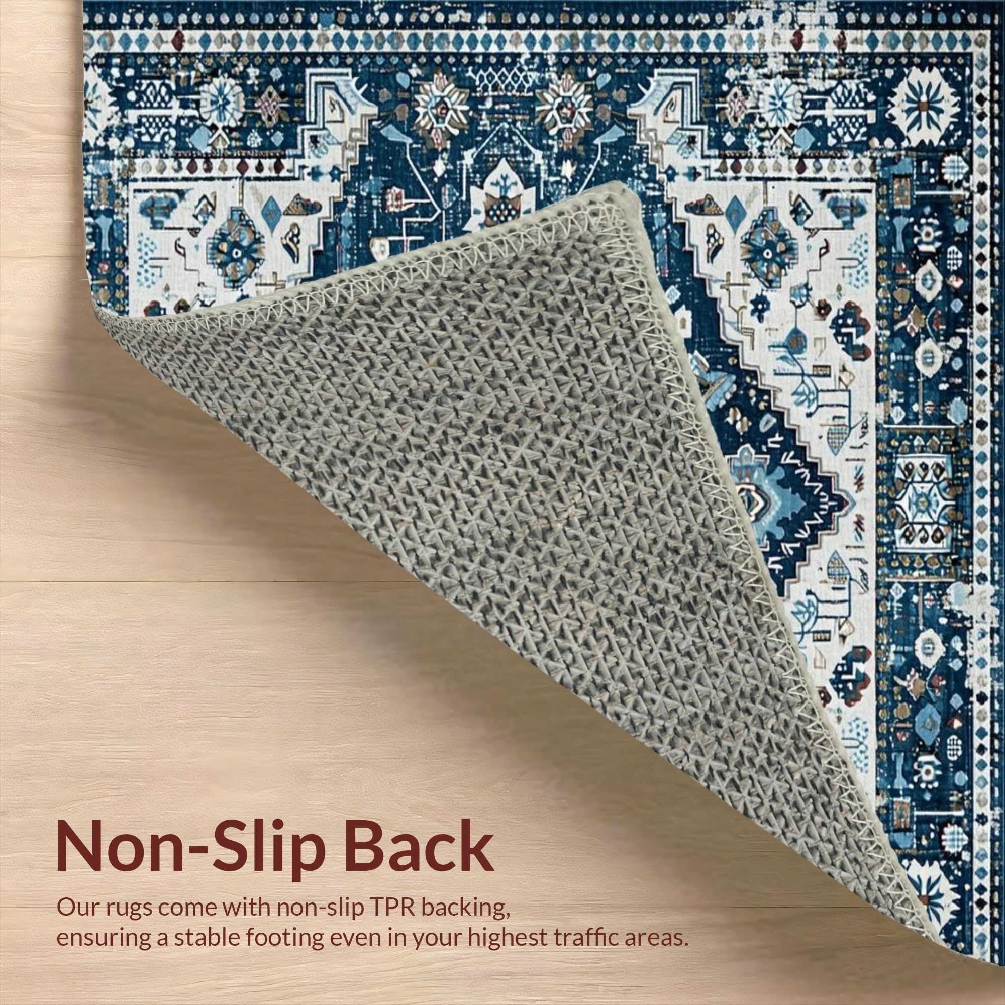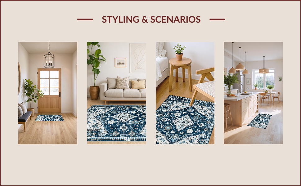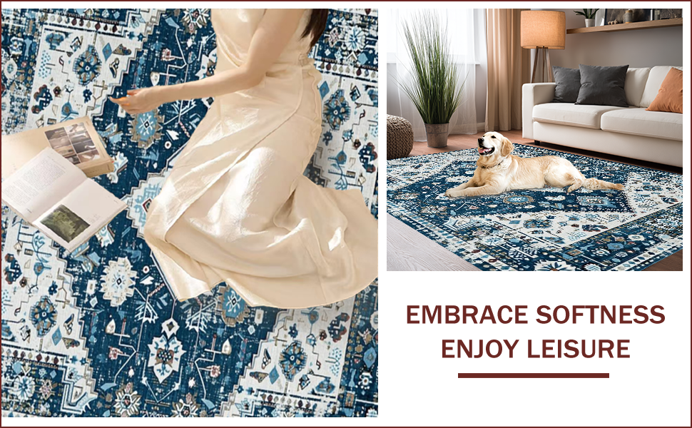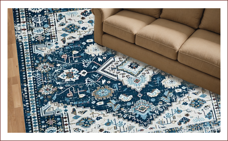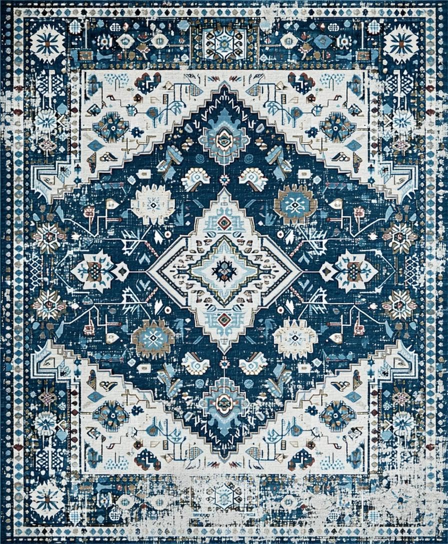 Ultra Soft Area Rug, Non Slip, Stain Resistant, Washable Area Rugs for Living Room, Bedroom, Trendy Distressed Blue Aesthetic(Blue) Overview: