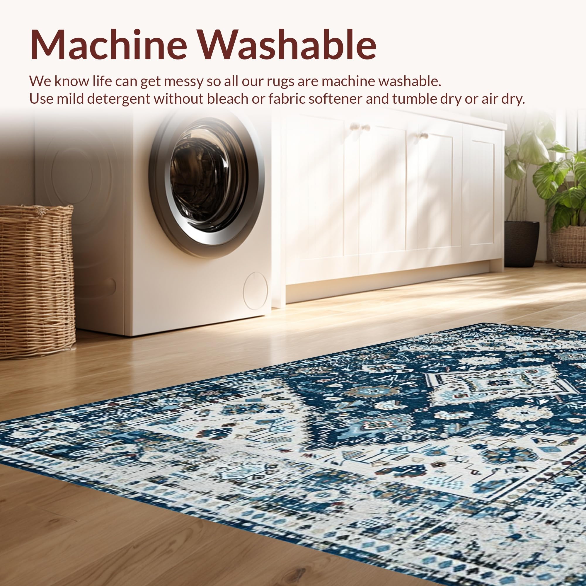 - Machine Washable: Our rugs can be easily thrown in the wash machine.