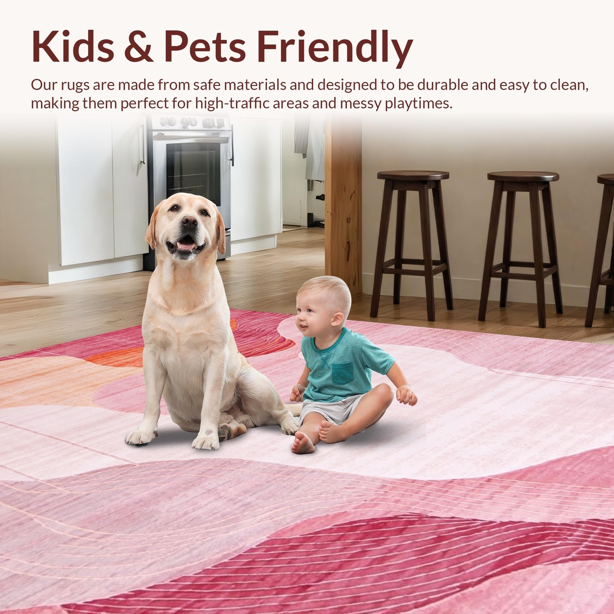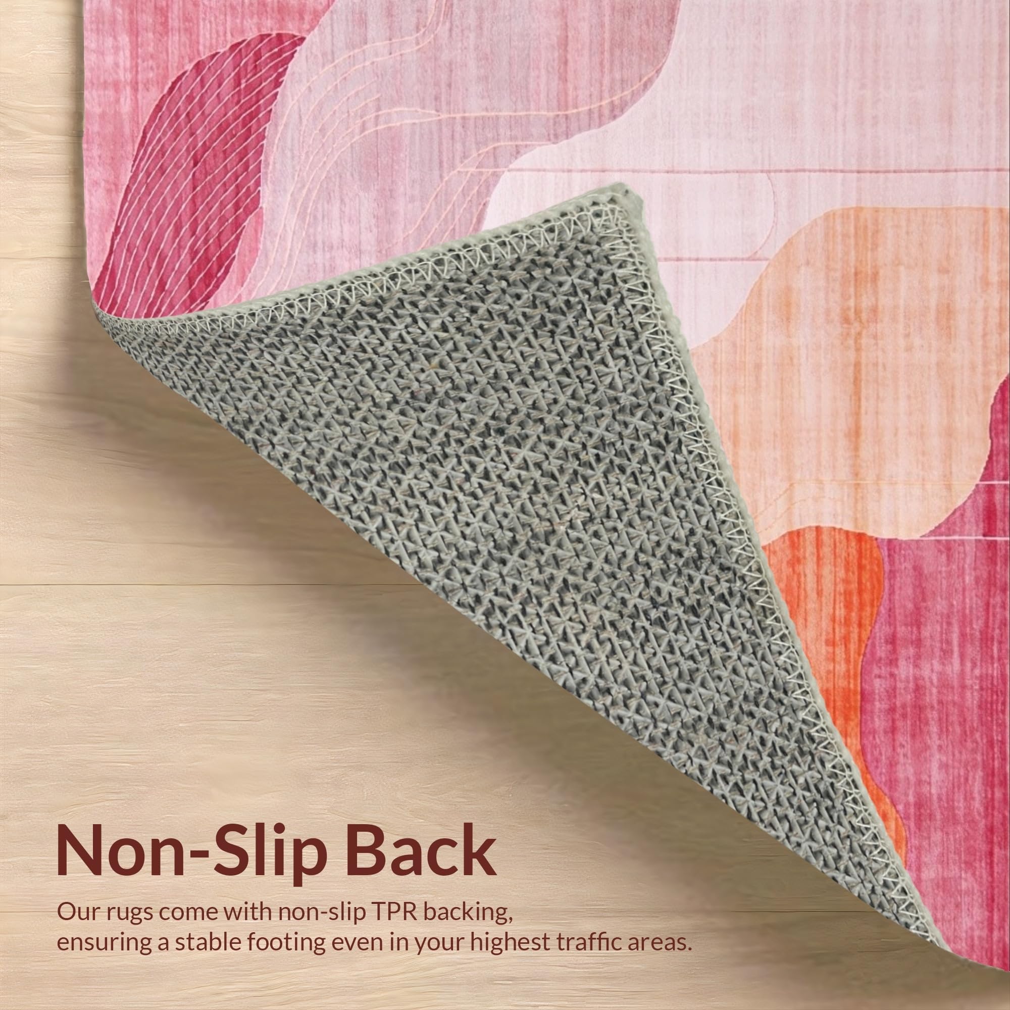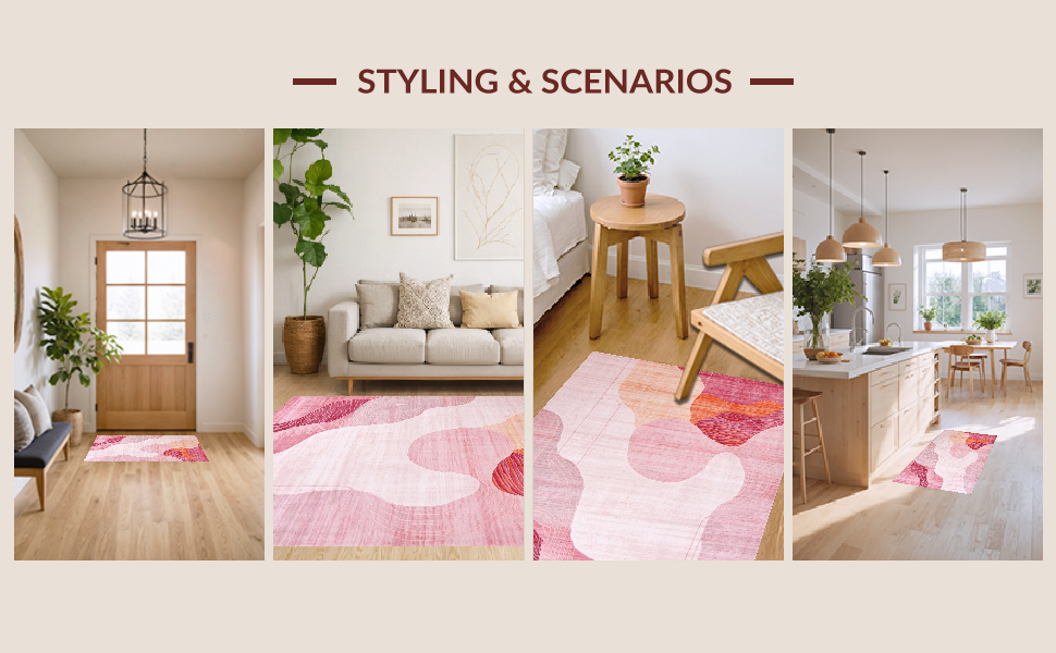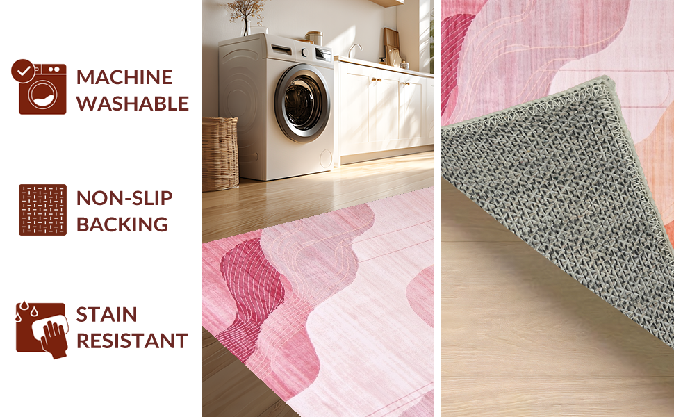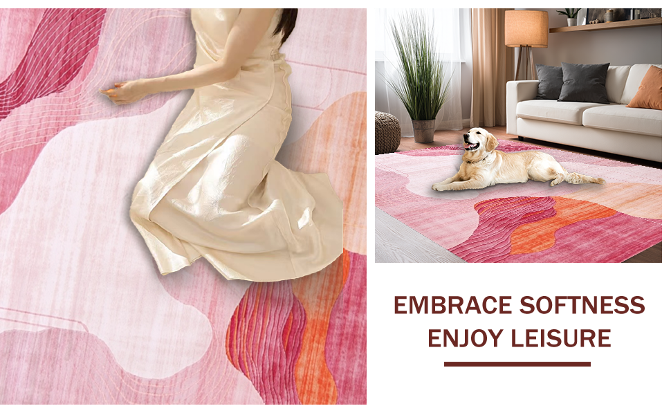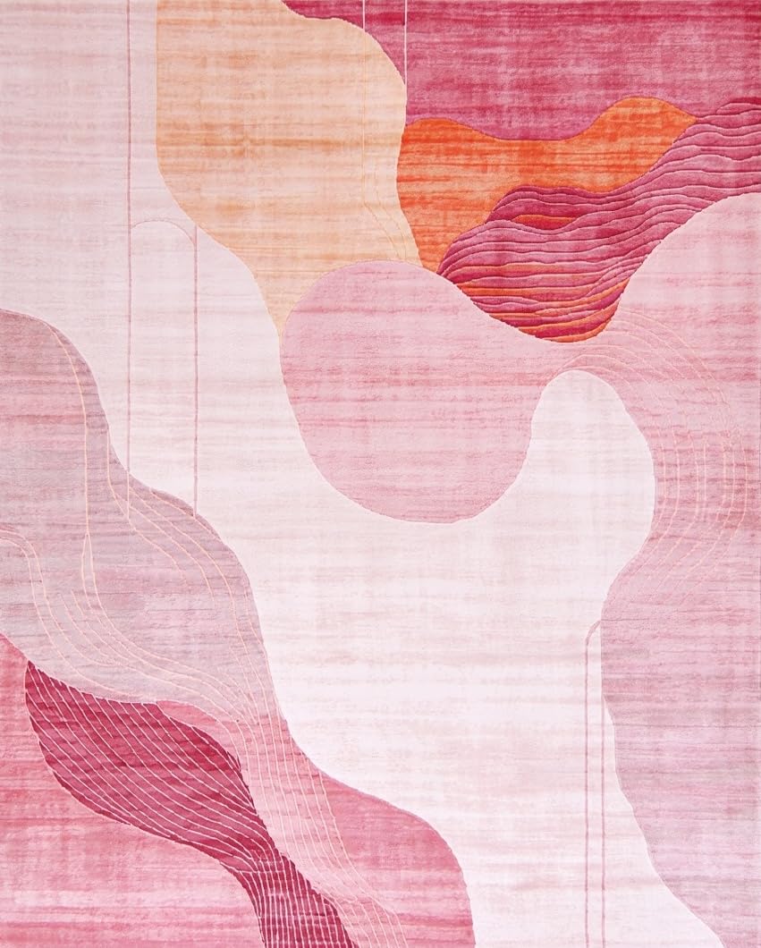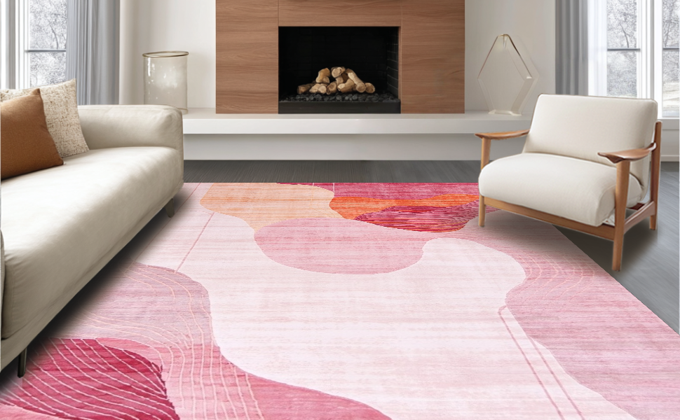 Ultra Soft Area Rug, Non Slip, Stain Resistant, Washable Area Rugs for Living Room, Bedroom, Trendy Fluid Artistic Lines(Pink) Overview: