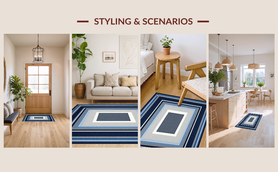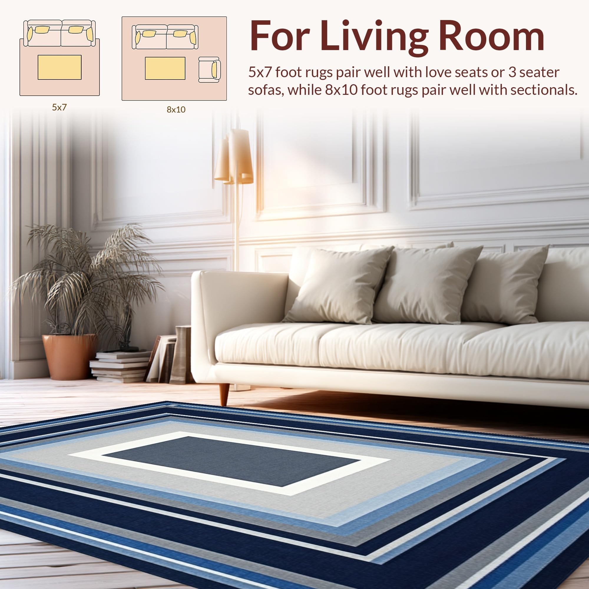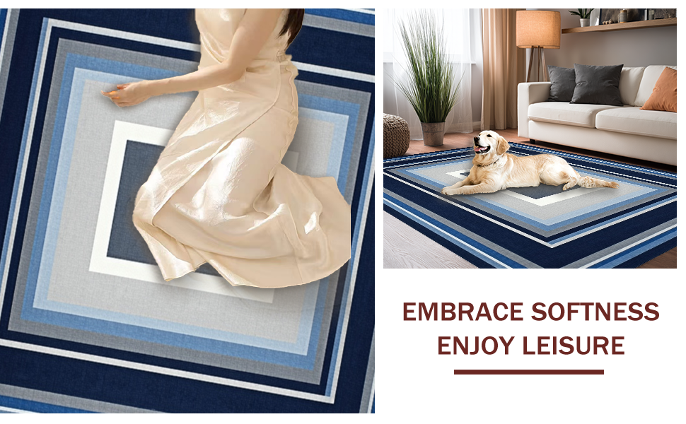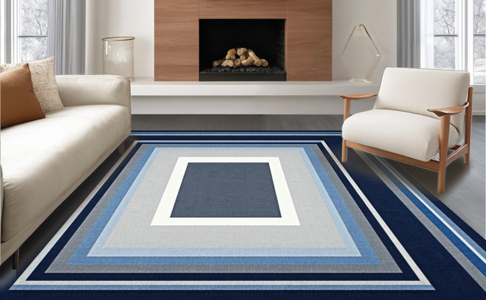 Ultra Soft Area Rug, Non Slip, Stain Resistant, Washable Area Rugs for Living Room, Bedroom, Trendy Geometric Symmetry in Blue(Blue) Overview: