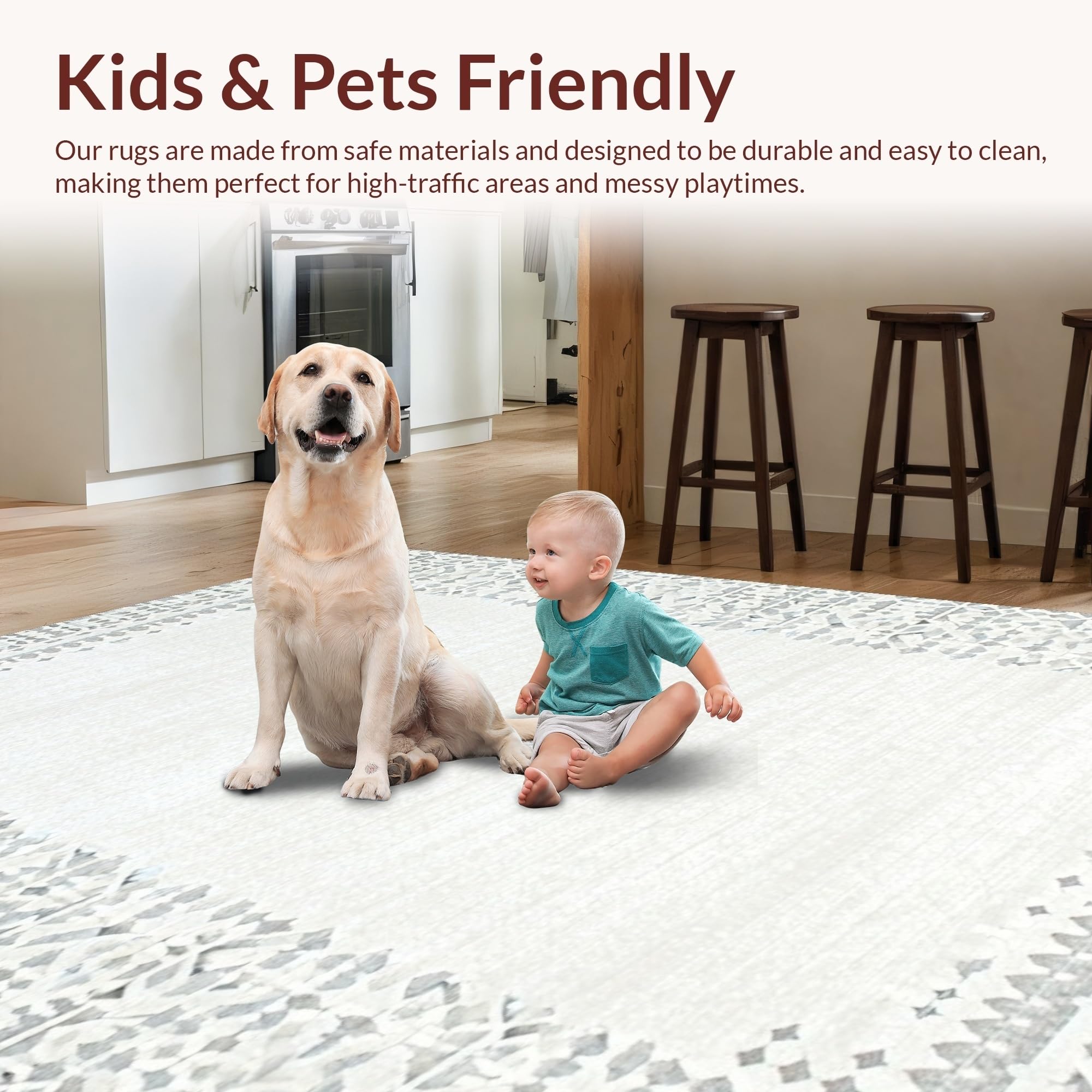 Ultra Soft Area Rug, Non Slip, Stain Resistant, Washable Area Rugs for Living Room, Bedroom, Trendy Lattice Inspired Modern Look(Gray) Overview: