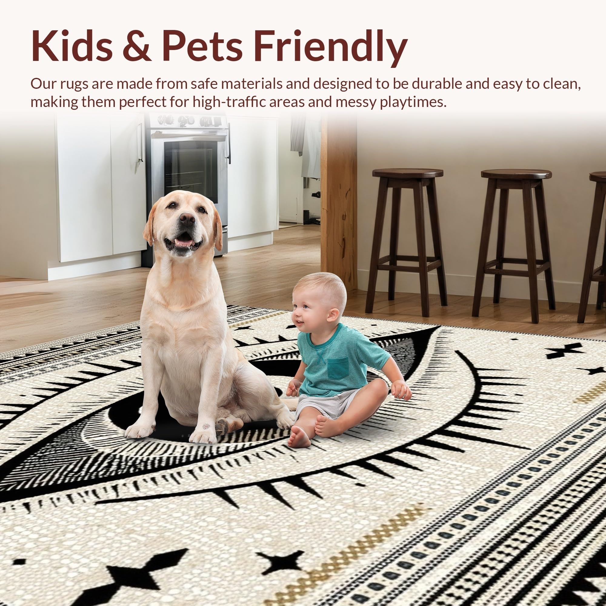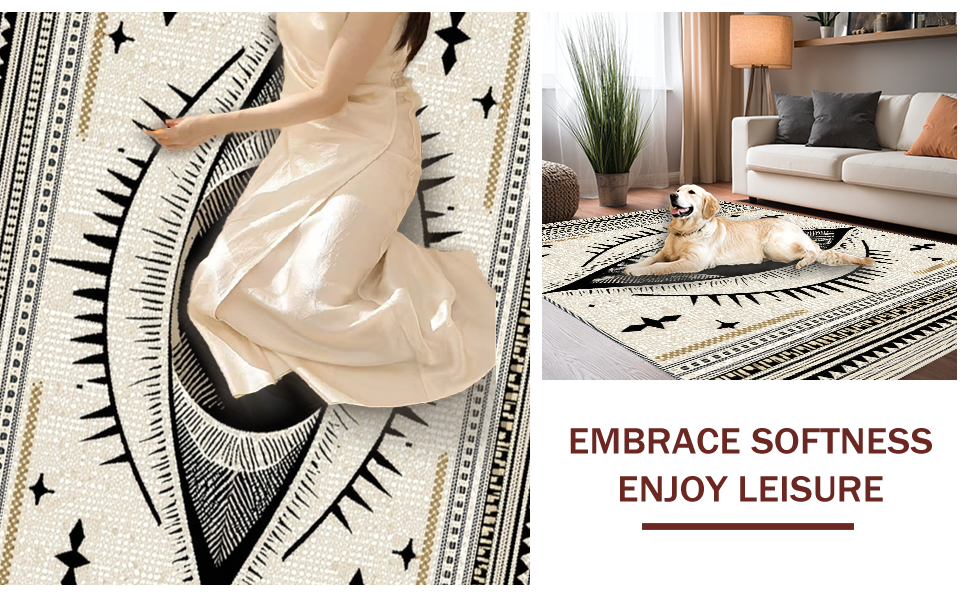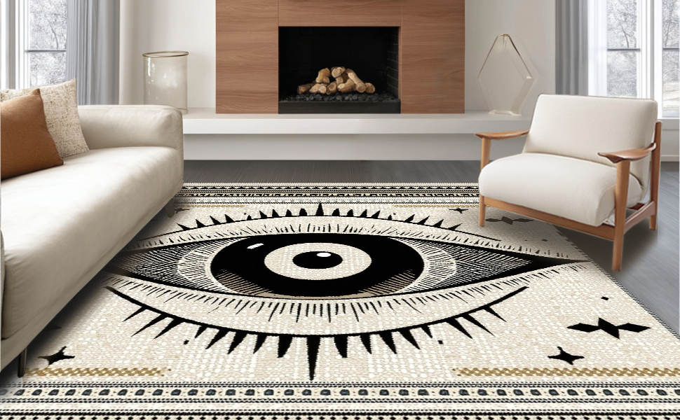 Ultra Soft Area Rug, Non Slip, Stain Resistant, Washable Area Rugs for Living Room, Bedroom, Trendy Minimalist Symbolic Rug(Black) Overview: