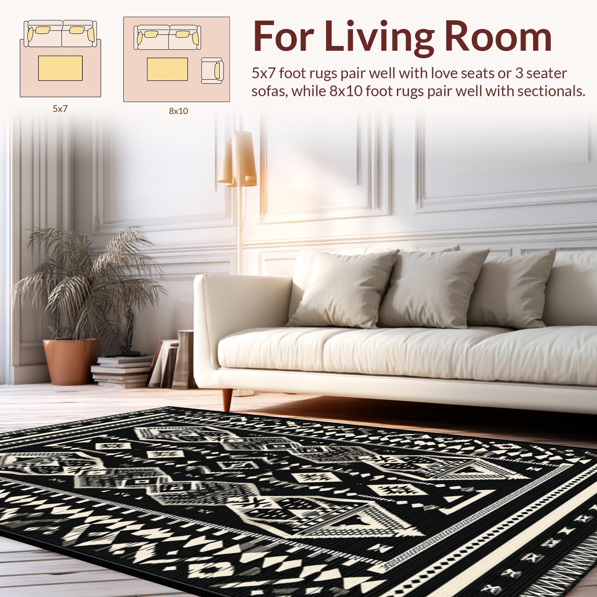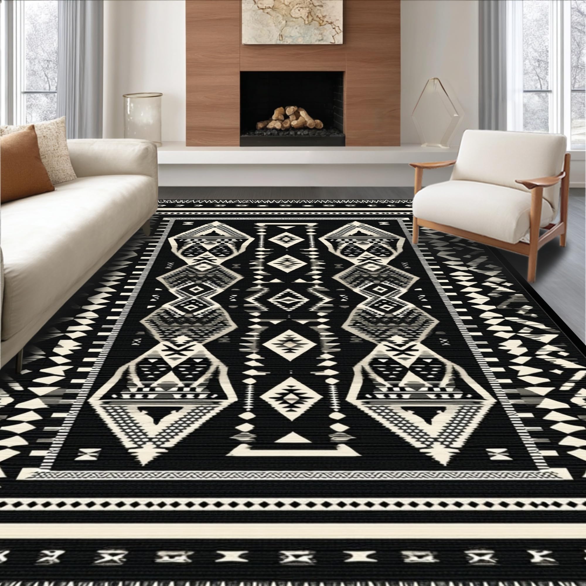 Ultra Soft Area Rug, Non Slip, Stain Resistant, Washable Area Rugs for Living Room, Bedroom, Trendy Monochrome Animal Motif(Black) Overview:
