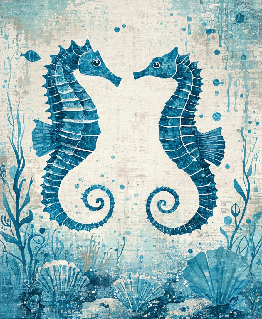 Trendy Ocean Themed with Decorative Seahorse and Shell(Blue)