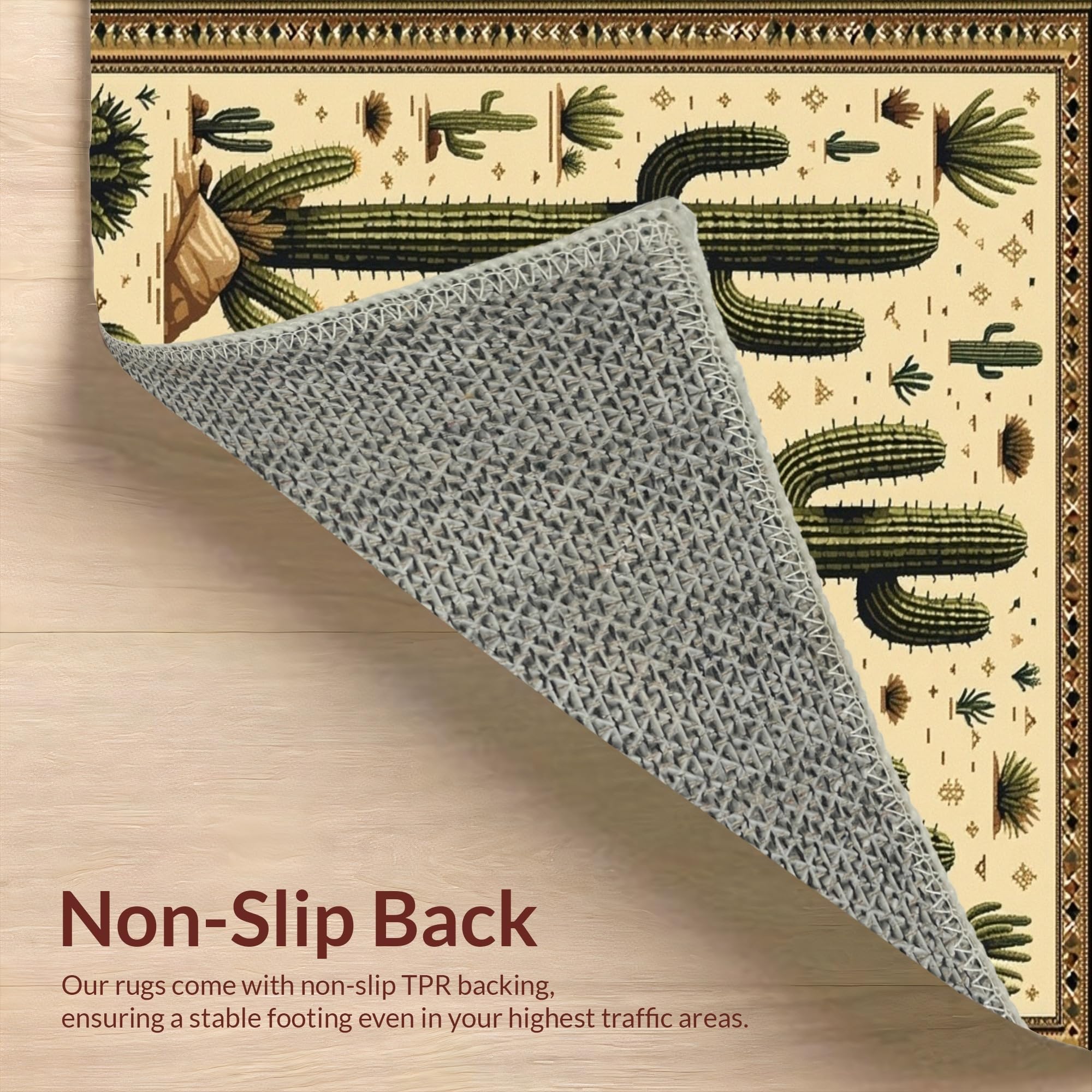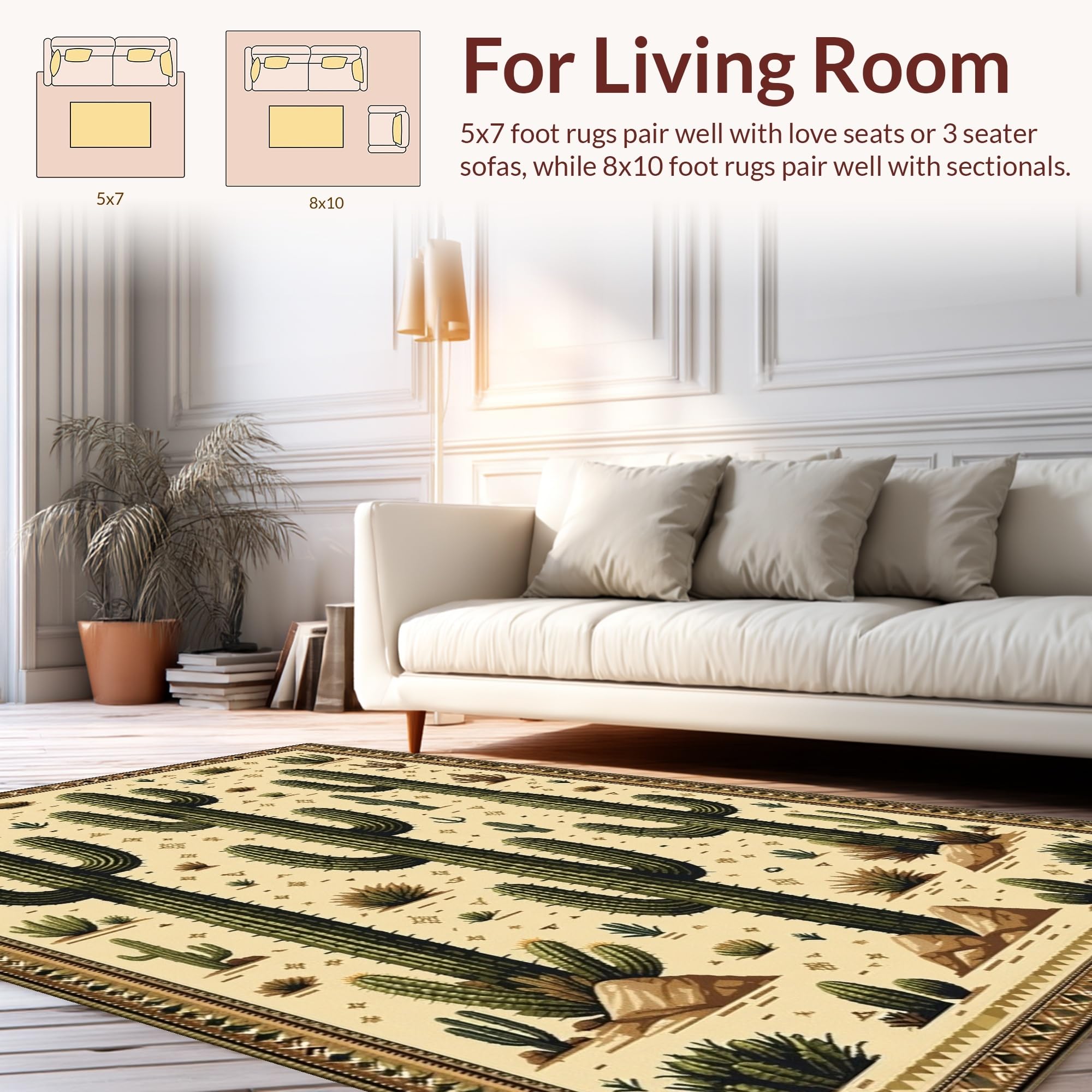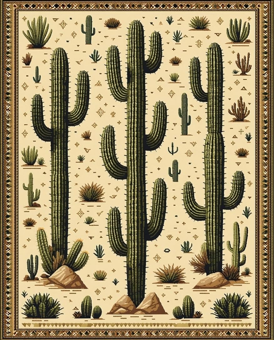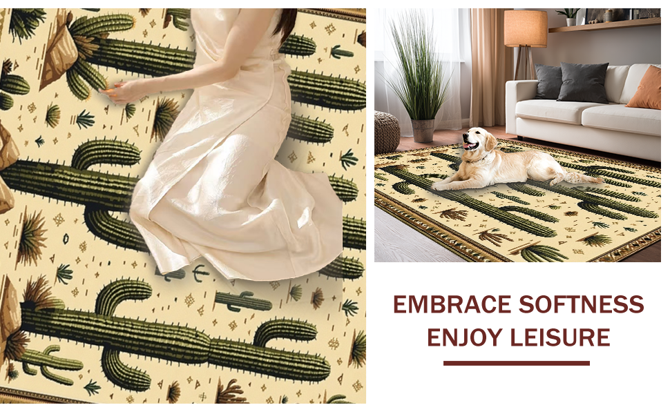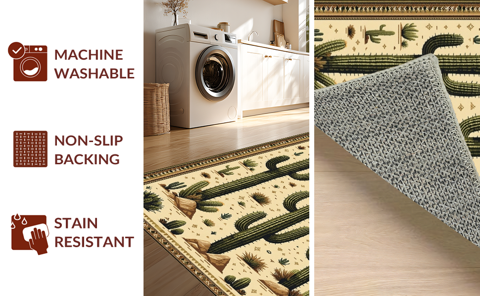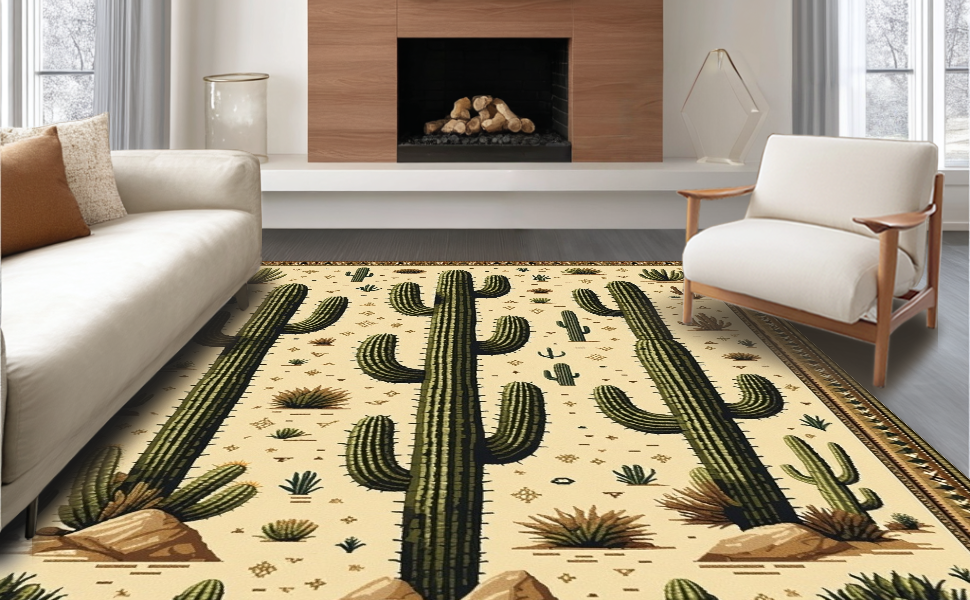 Ultra Soft Area Rug, Non Slip, Stain Resistant, Washable Area Rugs for Living Room, Bedroom, Trendy Retro Cowboy Inspired Art(Beige) Overview:
