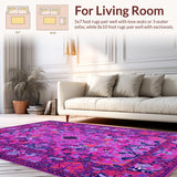 Ultra Soft Area Rug, Non Slip, Stain Resistant, Washable Area Rugs for Living Room, Bedroom, Trendy Retro Flower Power Design(Pink) Overview: