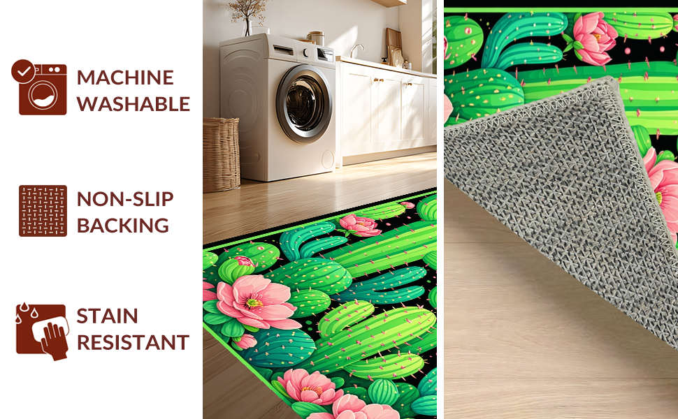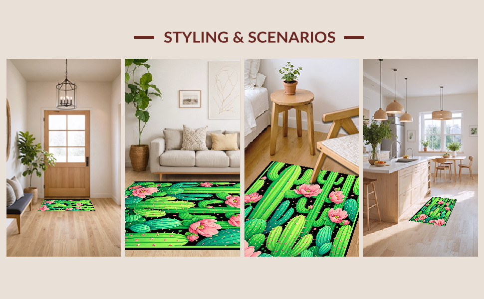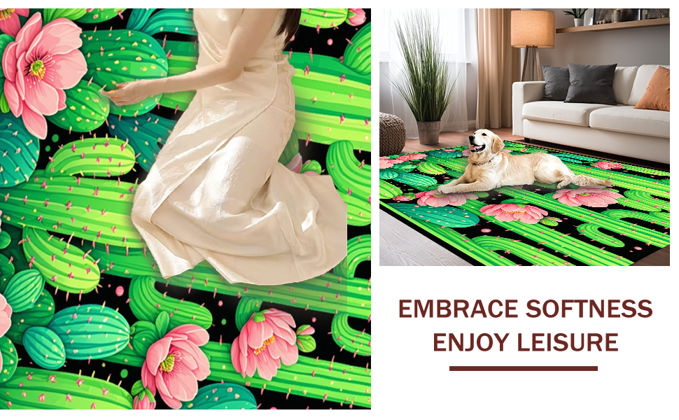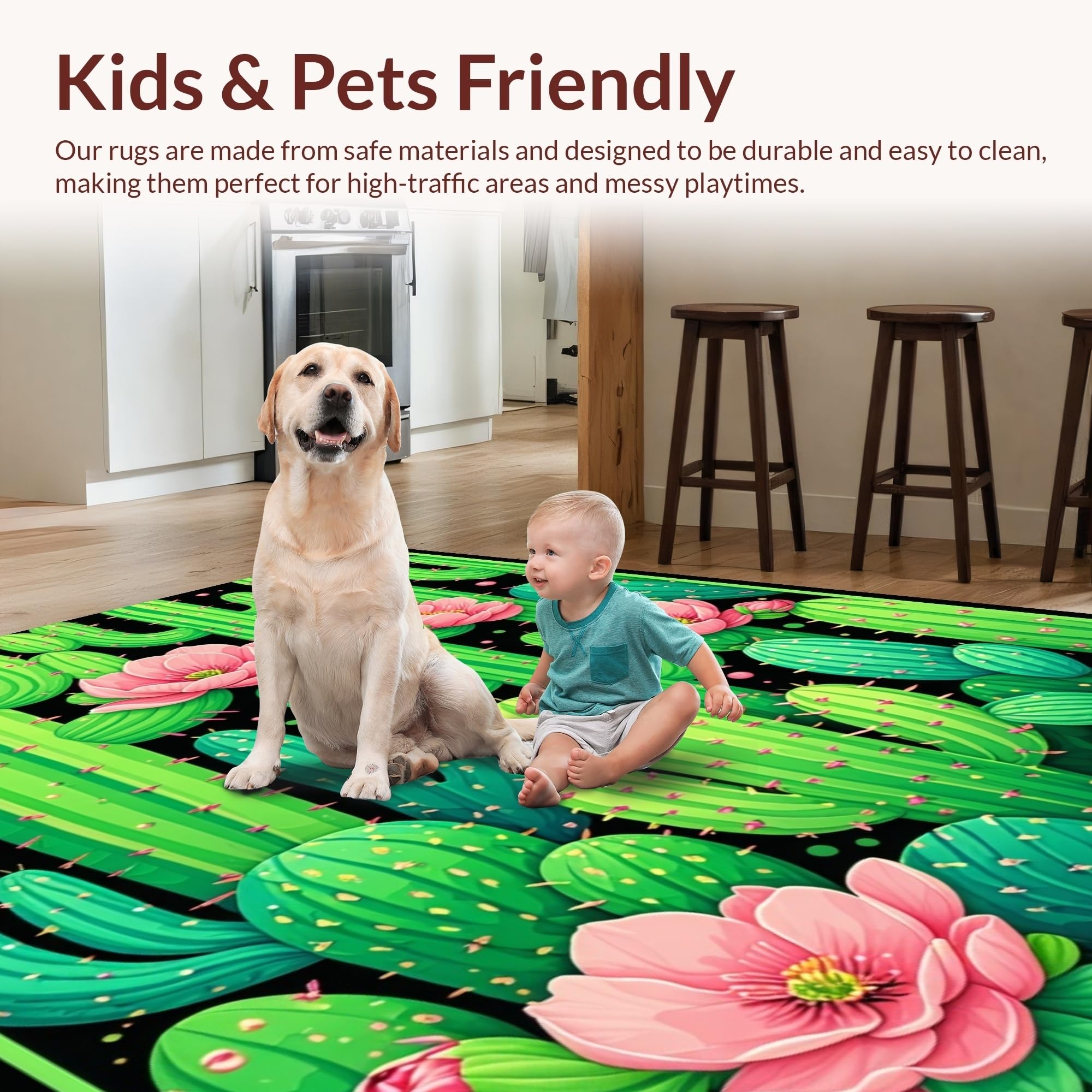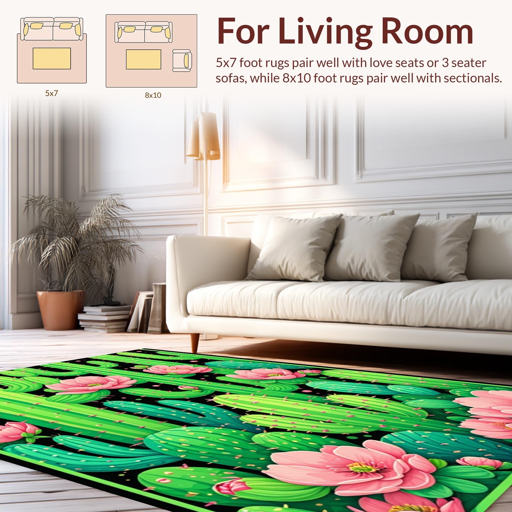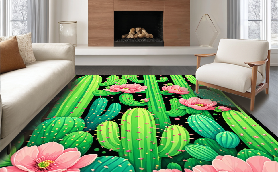 Ultra Soft Area Rug, Non Slip, Stain Resistant, Washable Area Rugs for Living Room, Bedroom, Trendy Rustic Cactus Motif(Green) Overview: