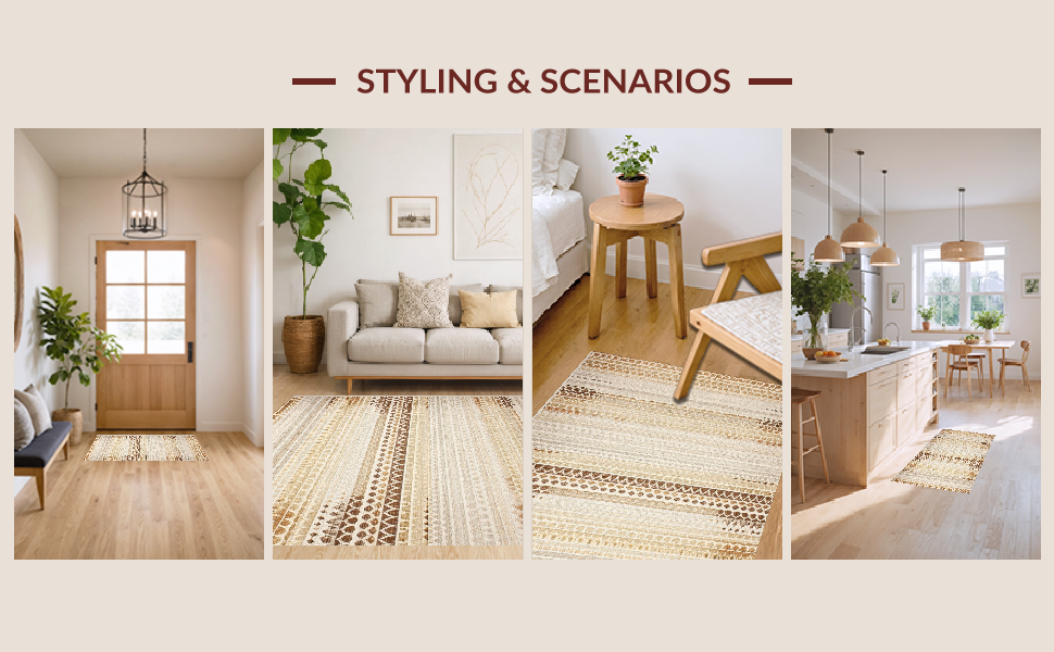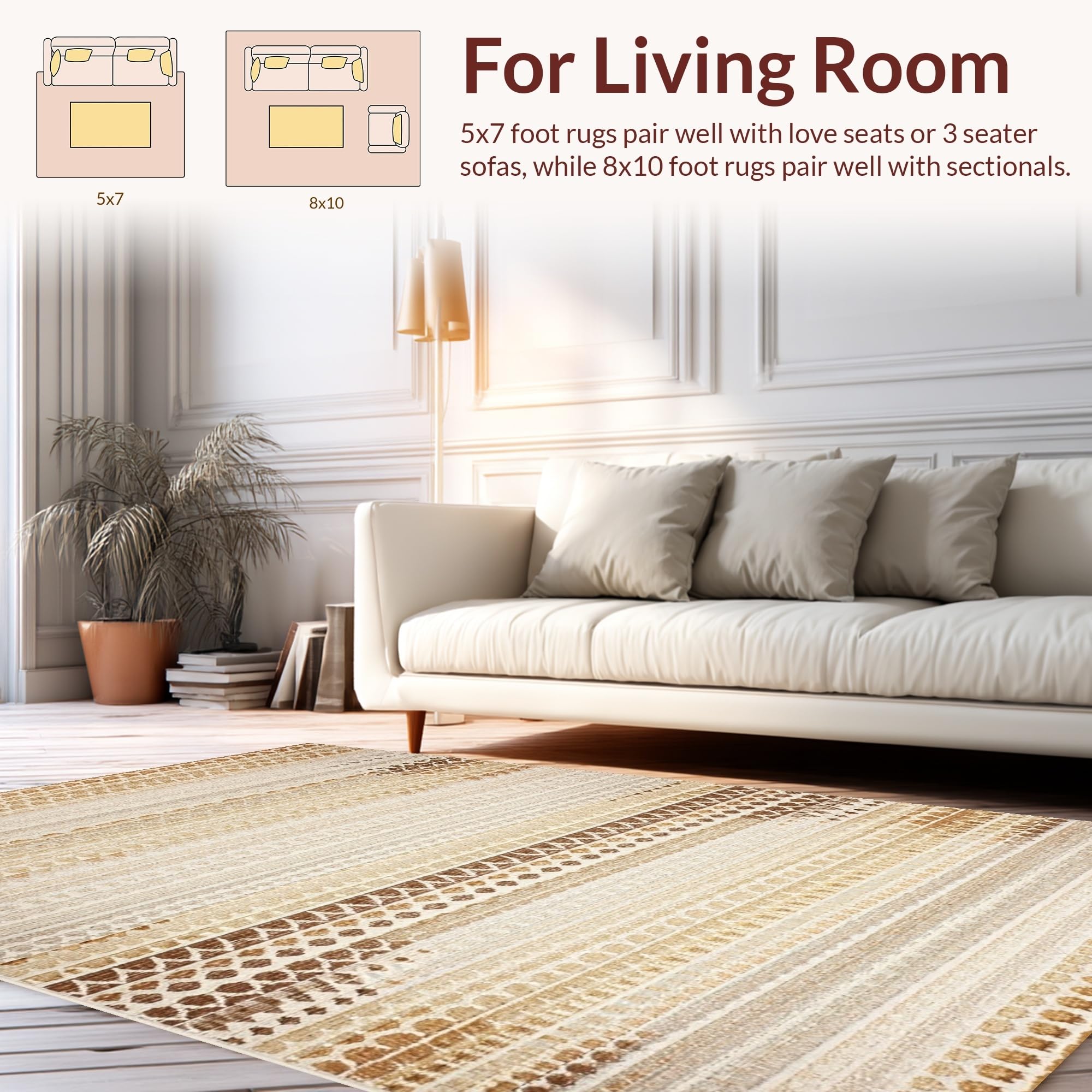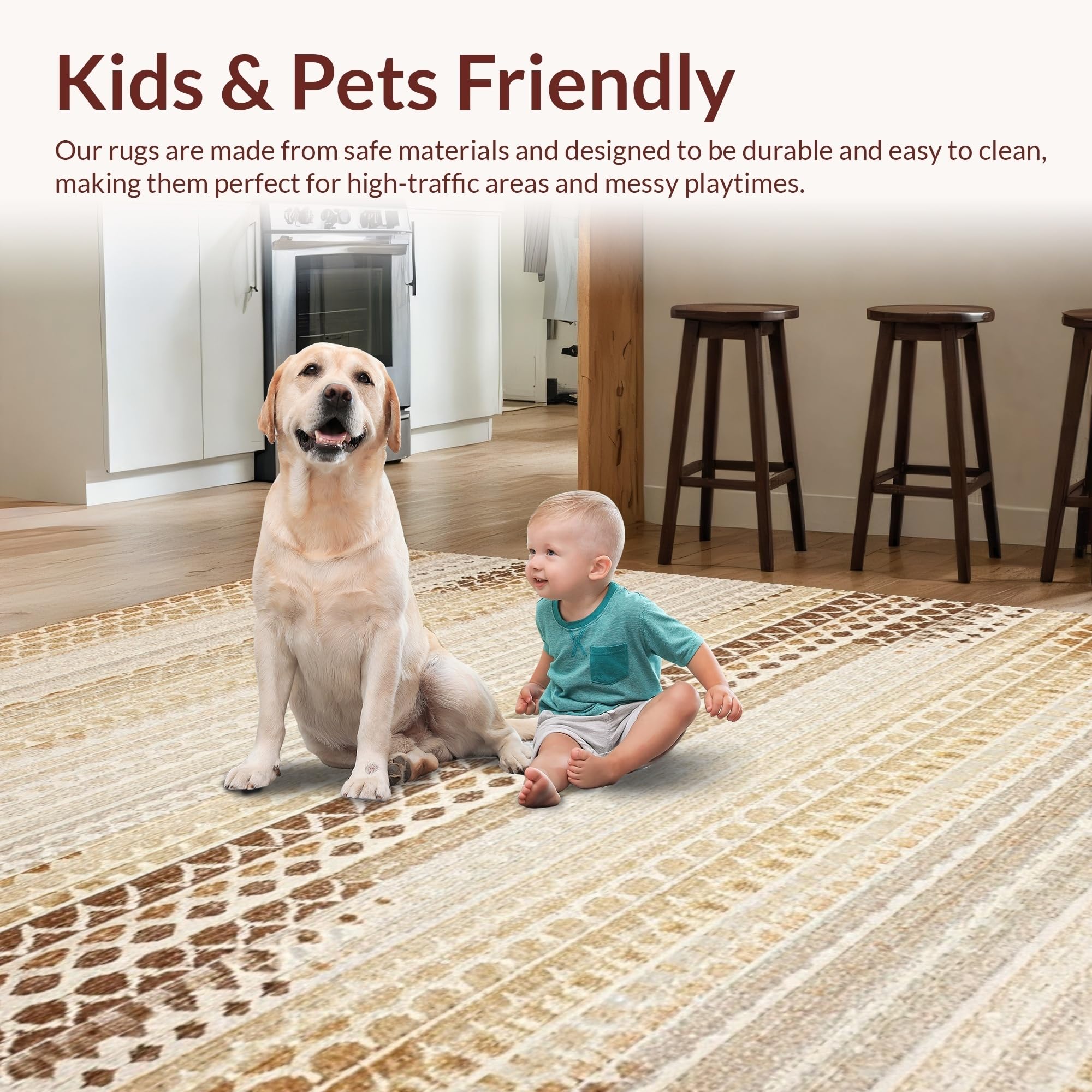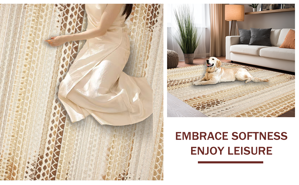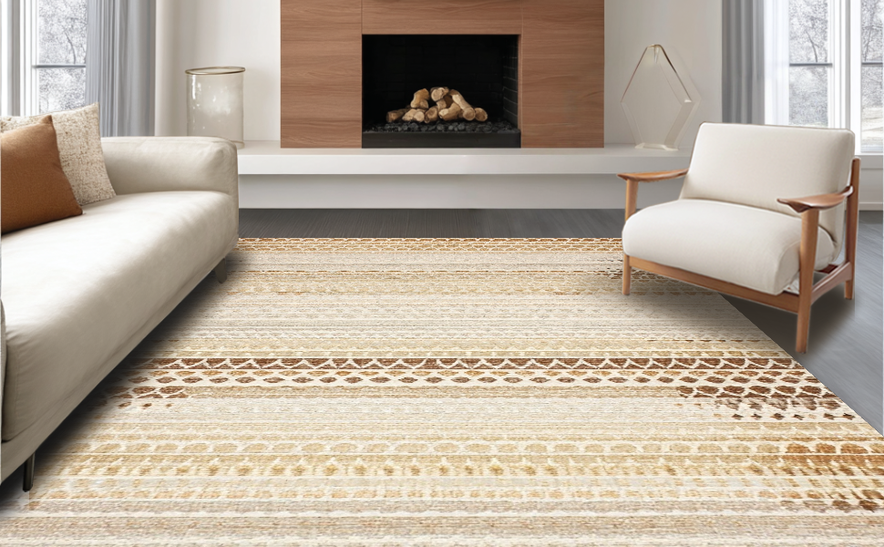 Ultra Soft Area Rug, Non Slip, Stain Resistant, Washable Area Rugs for Living Room, Bedroom, Trendy Rustic Multicolor Ripple Effect(Beige) Overview: