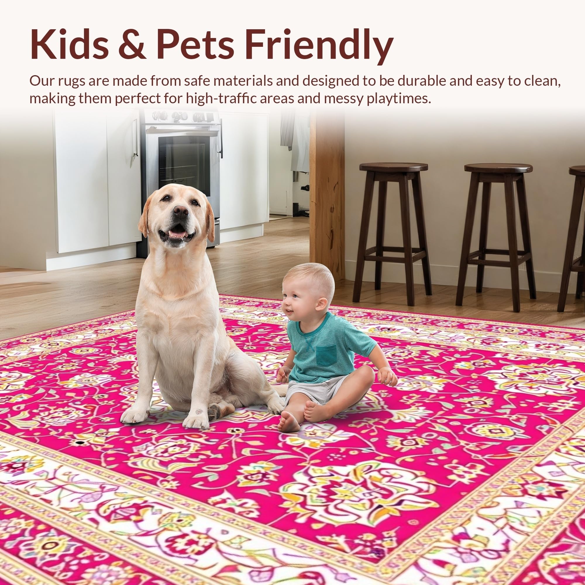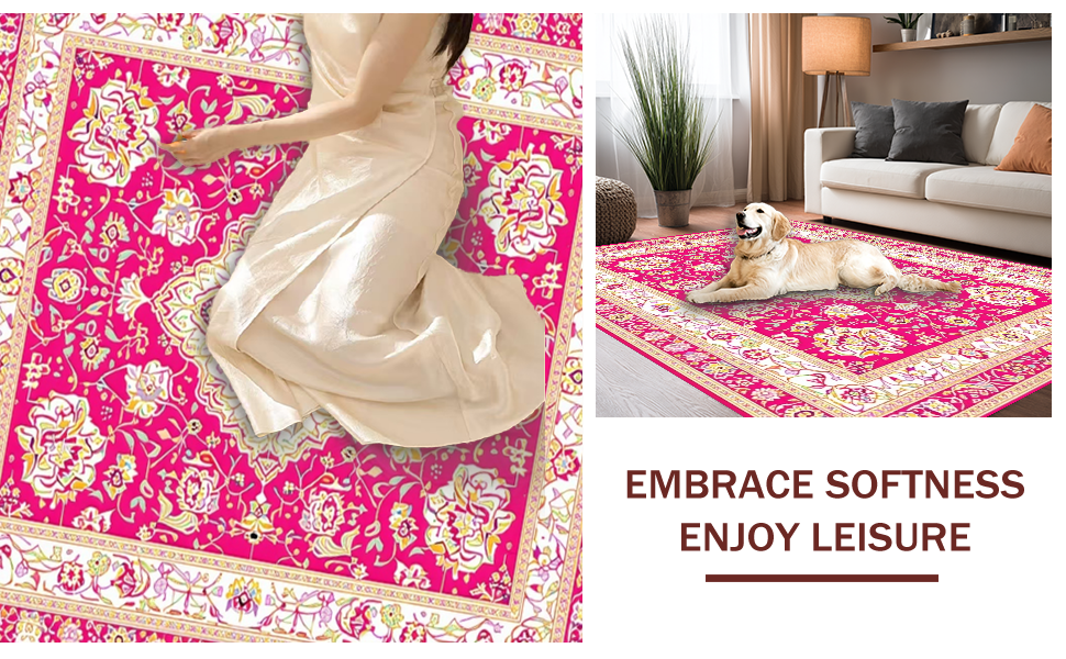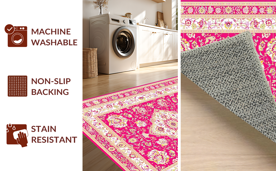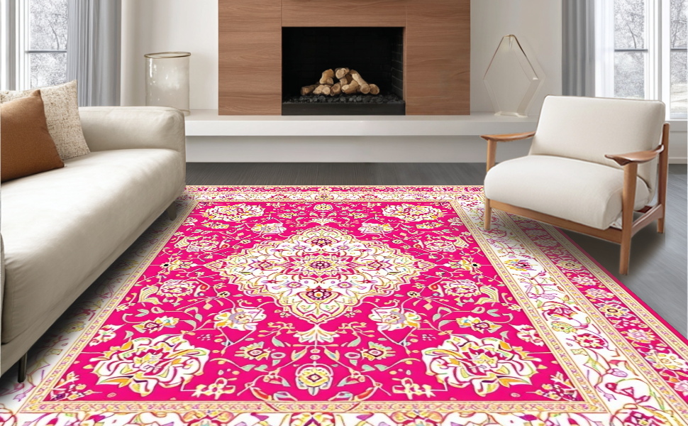 Ultra Soft Area Rug, Non Slip, Stain Resistant, Washable Area Rugs for Living Room, Bedroom, Trendy Soft Textured Minimalist Look(Pink) Overview: