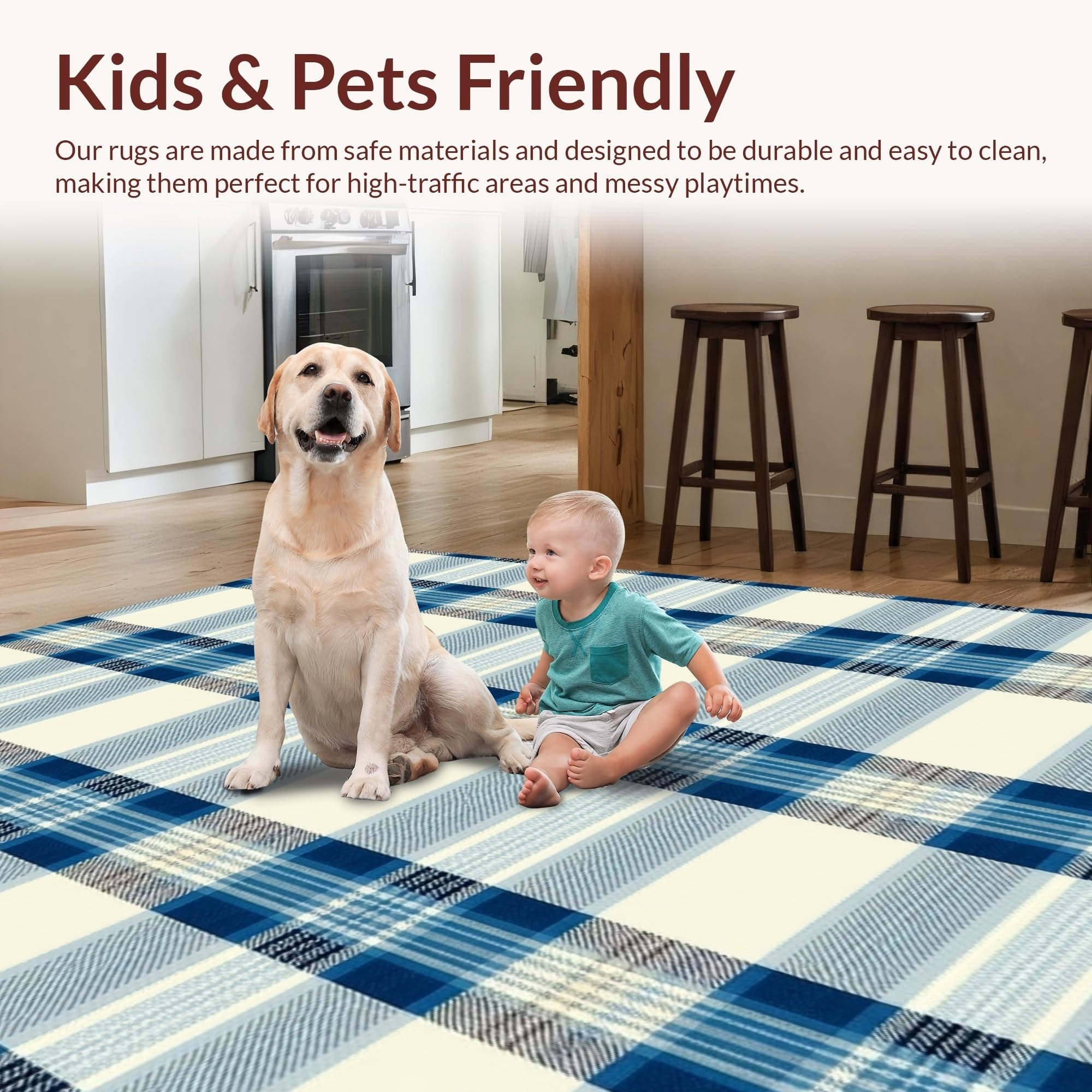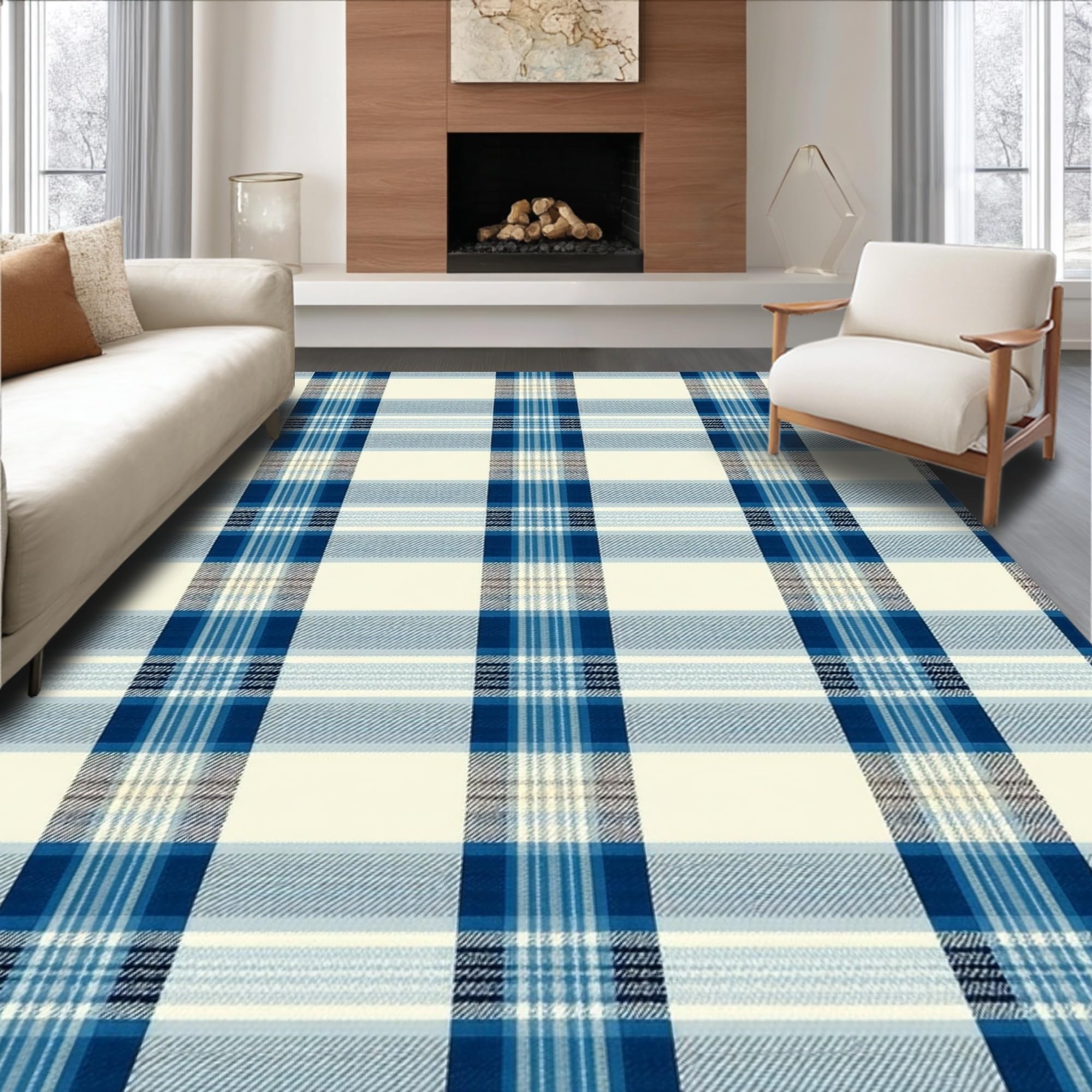 Ultra Soft Area Rug, Non Slip, Stain Resistant, Washable Area Rugs for Living Room, Bedroom, Trendy Tartan Patterned Delight(Beige) Overview:
