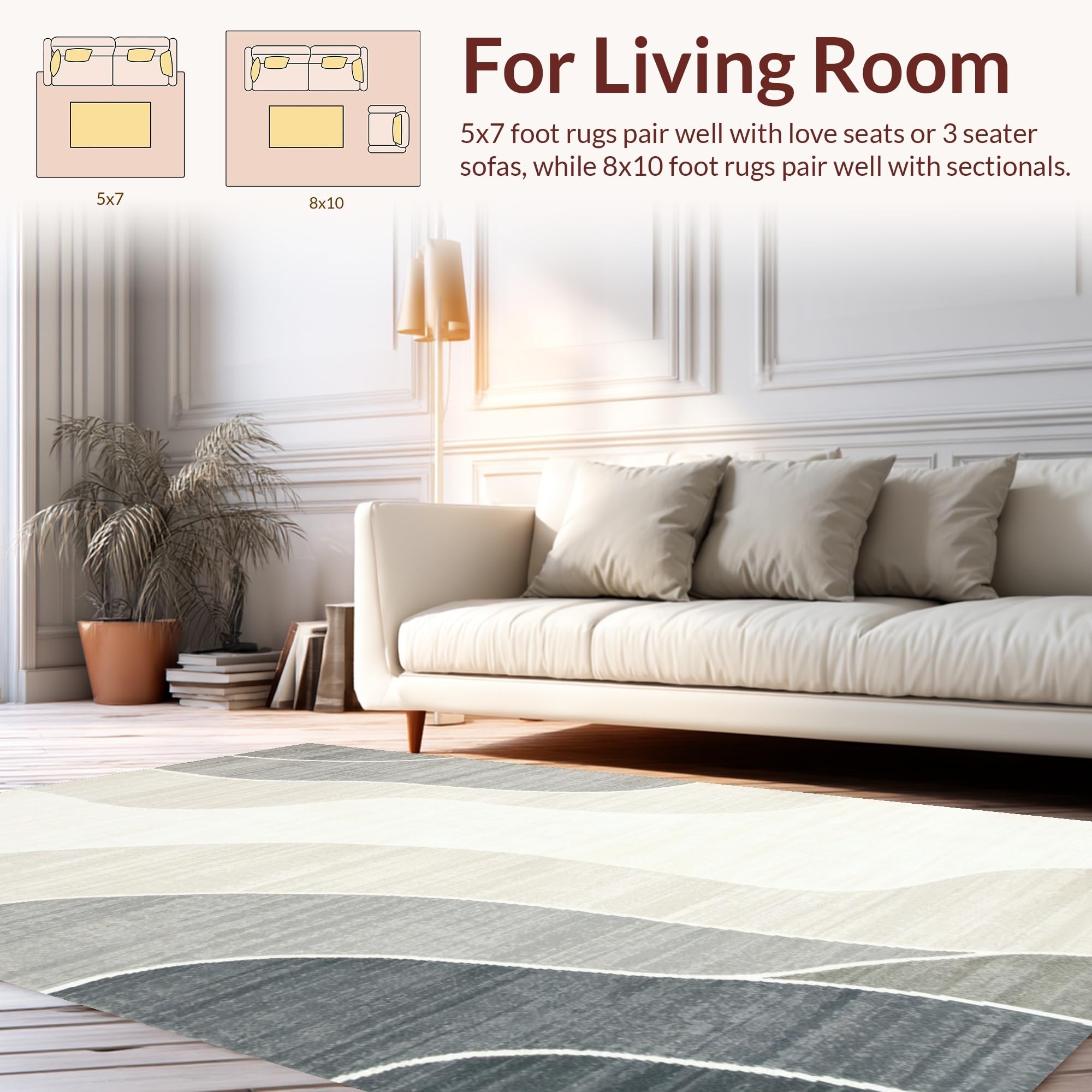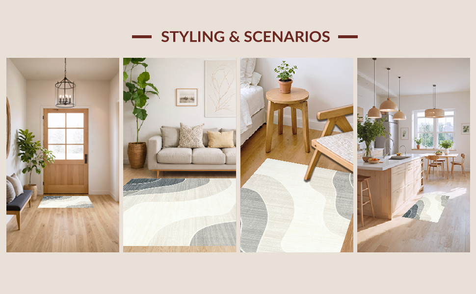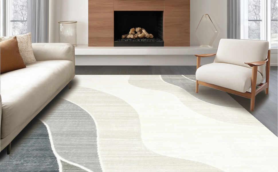 Ultra Soft Area Rug, Non Slip, Stain Resistant, Washable Area Rugs for Living Room, Bedroom, Trendy Textured Ombre Style(Beige) Overview: