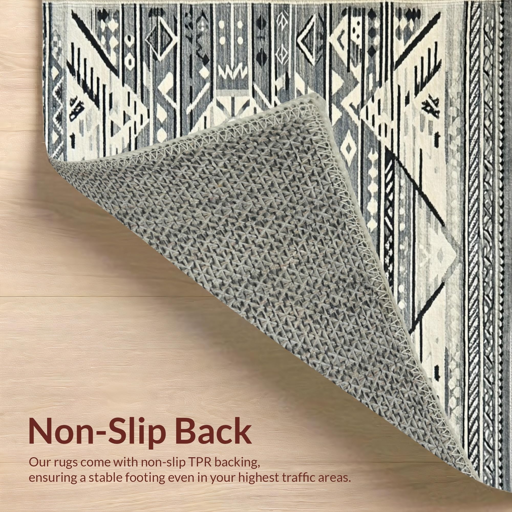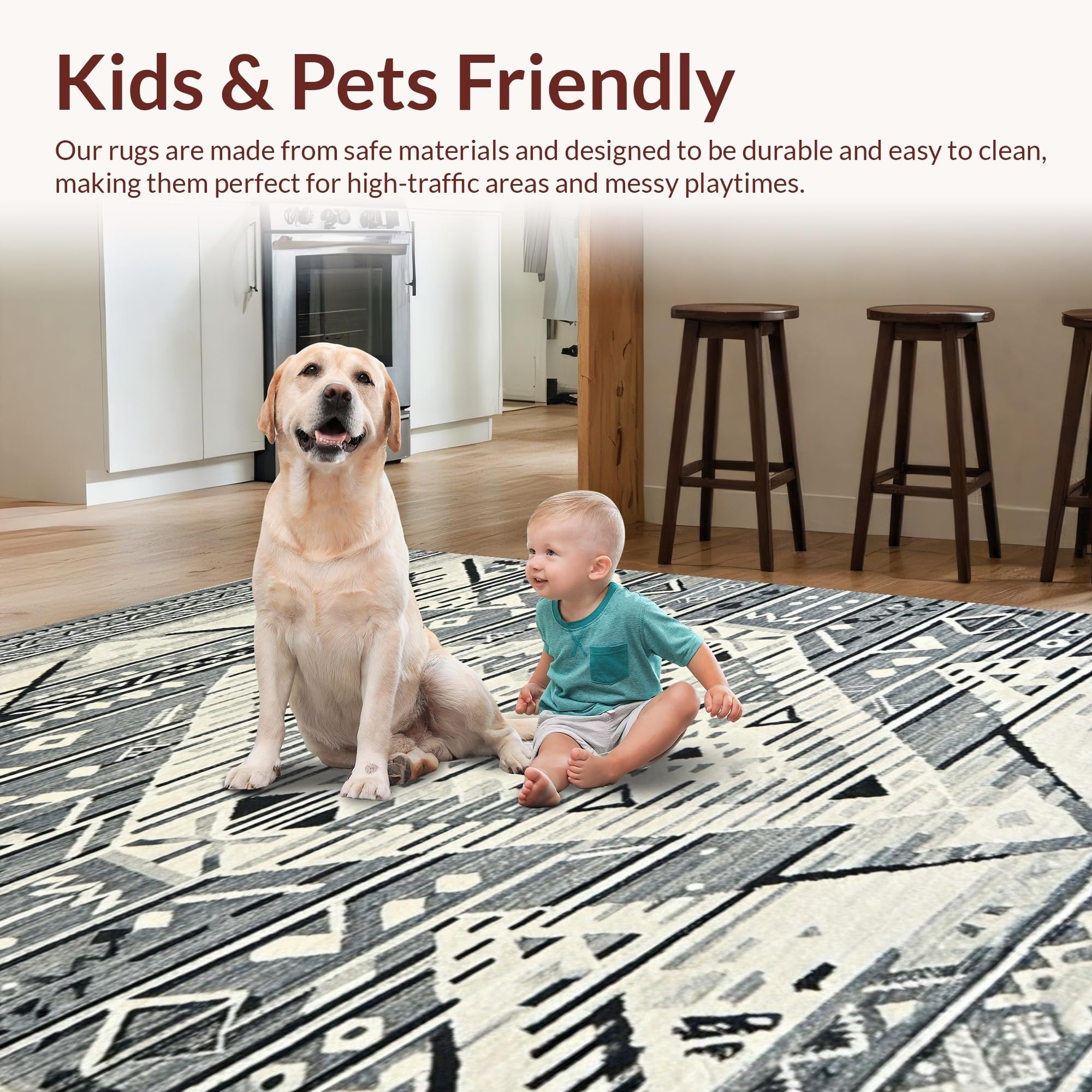 Ultra Soft Area Rug, Non Slip, Stain Resistant, Washable Area Rugs for Living Room, Bedroom, Trendy Vintage Ogee Composition(Gray) Overview: