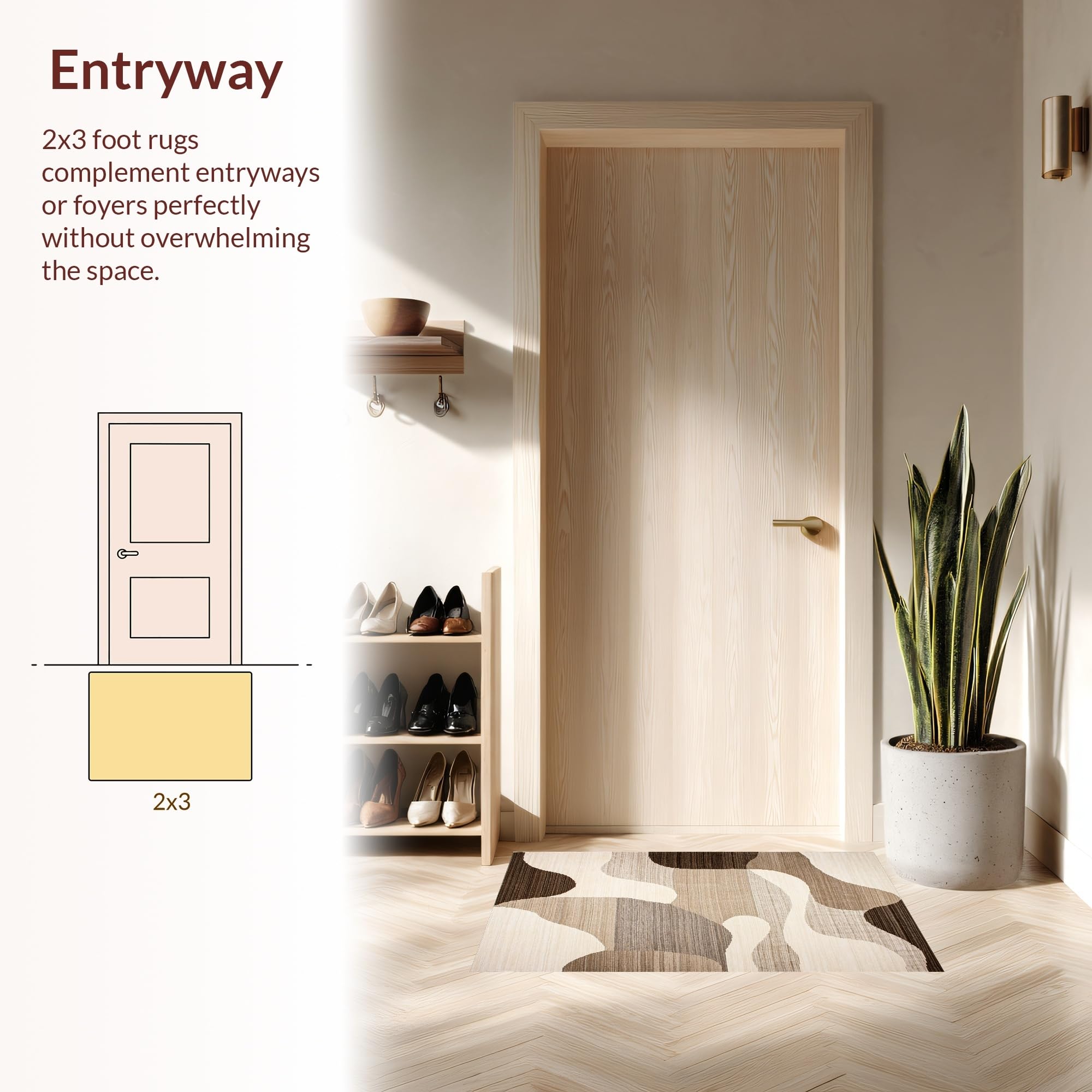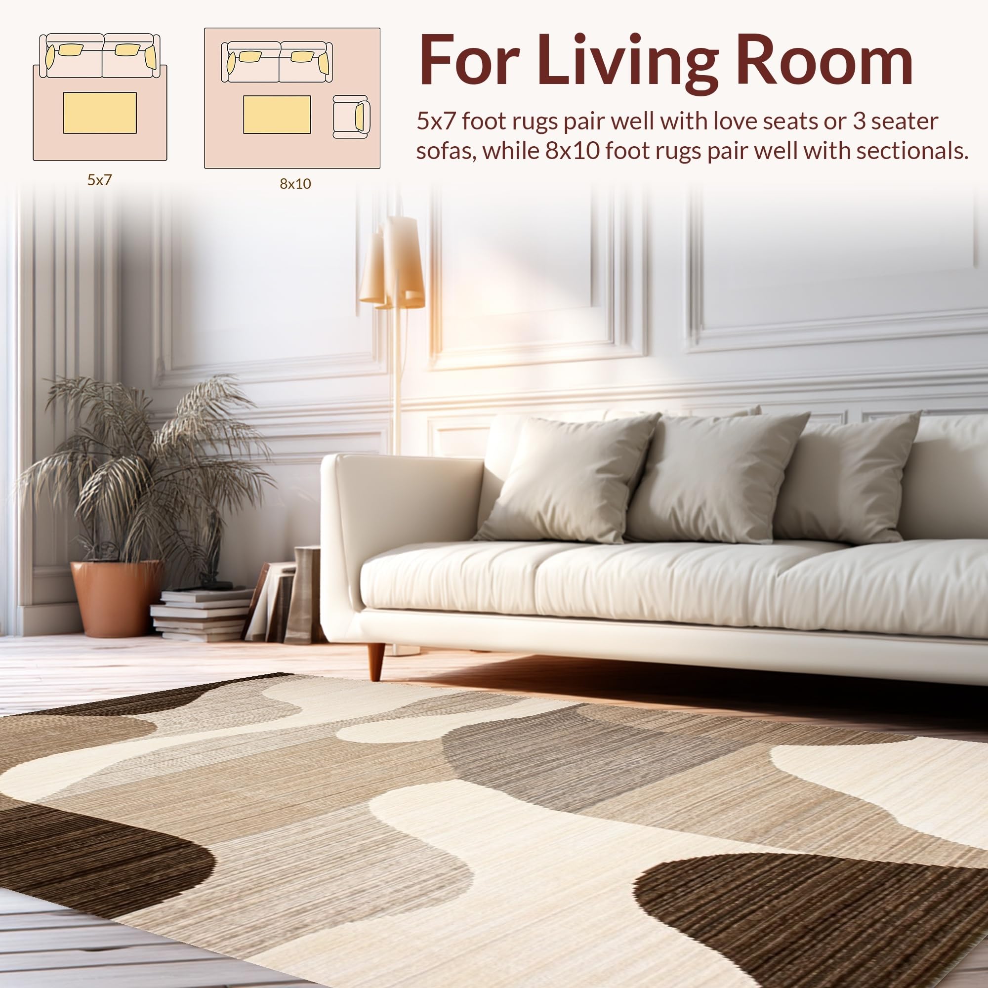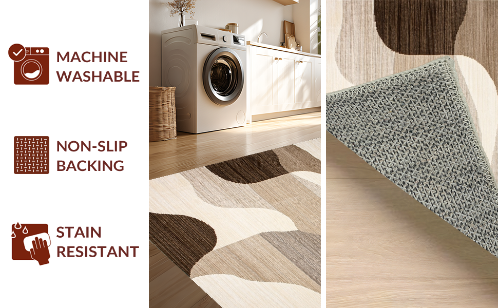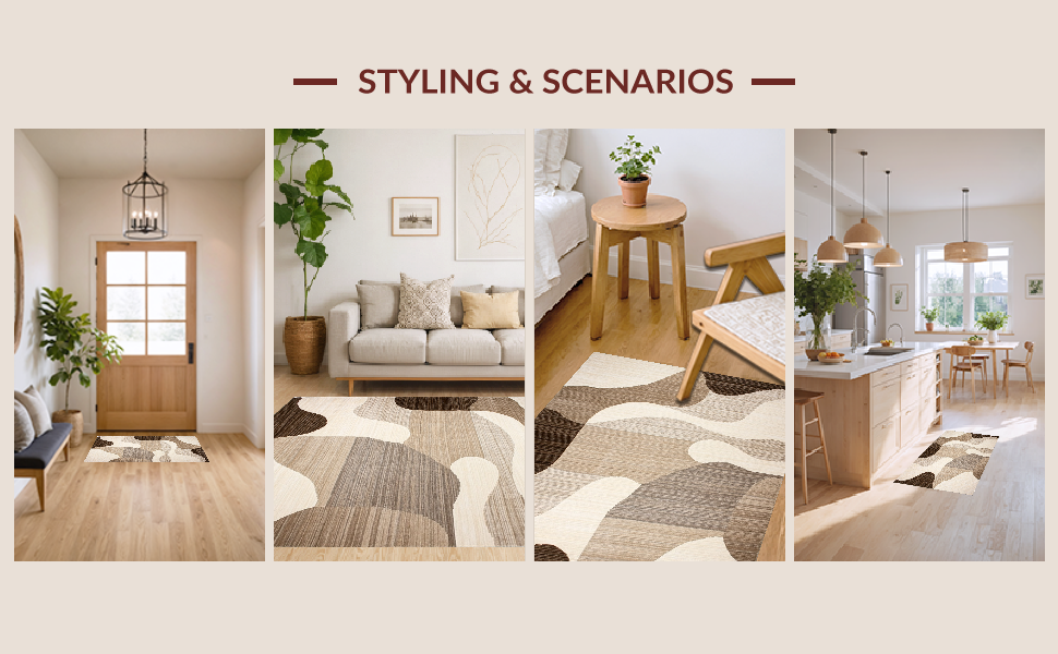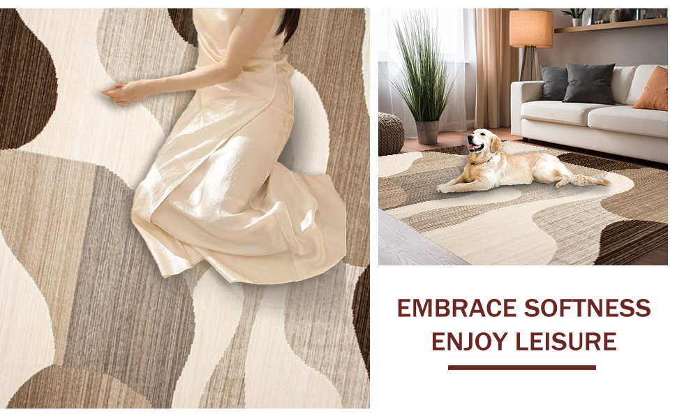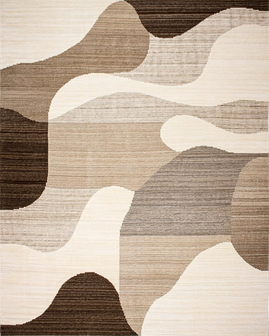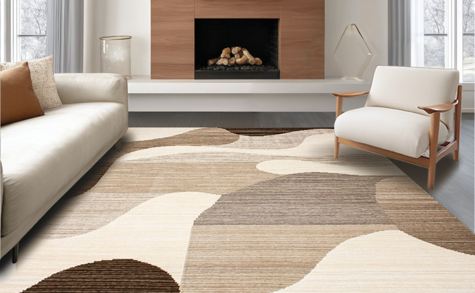 Ultra Soft Area Rug, Non Slip, Stain Resistant, Washable Area Rugs for Living Room, Bedroom, Trendy Warm Abstract Waves(Beige) Overview: