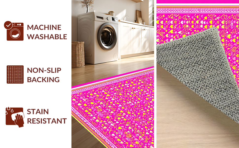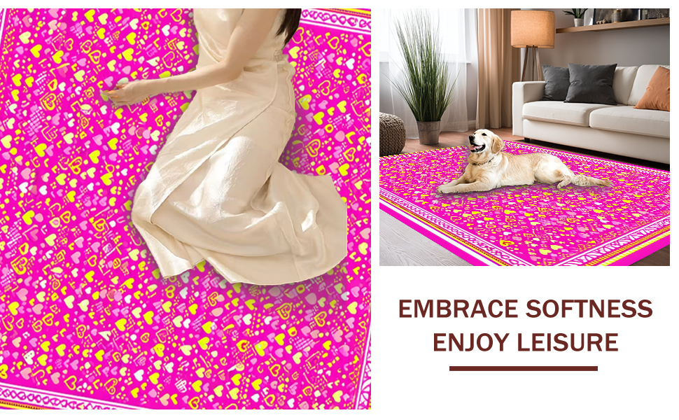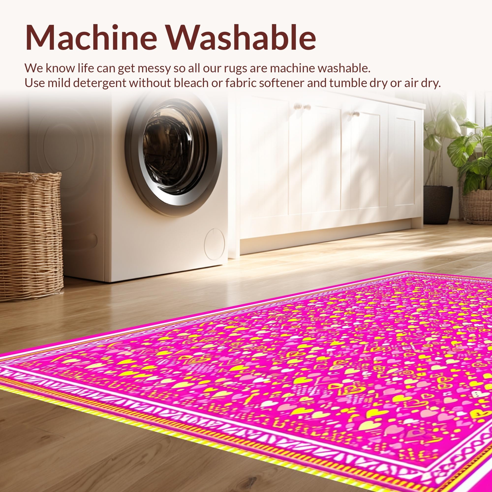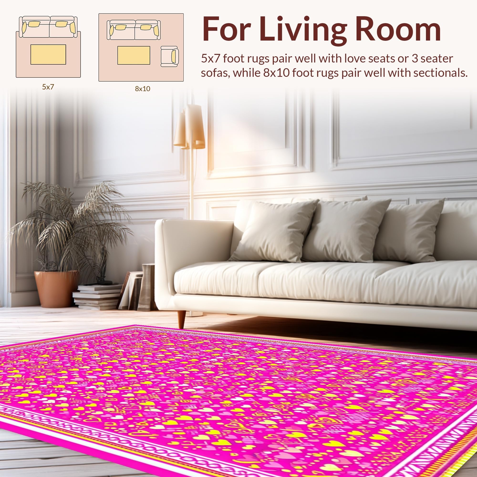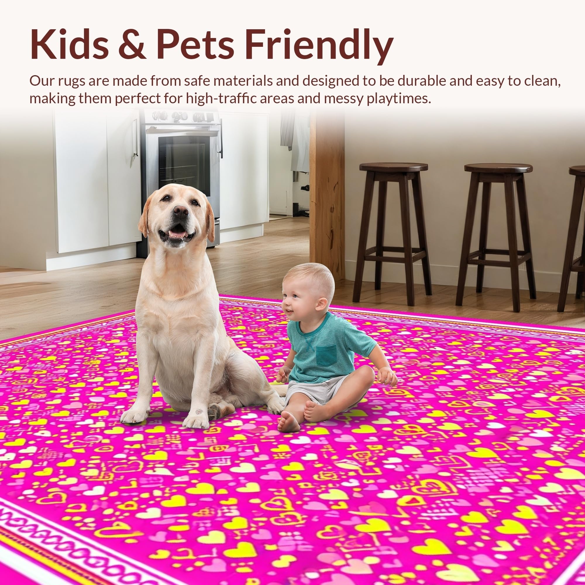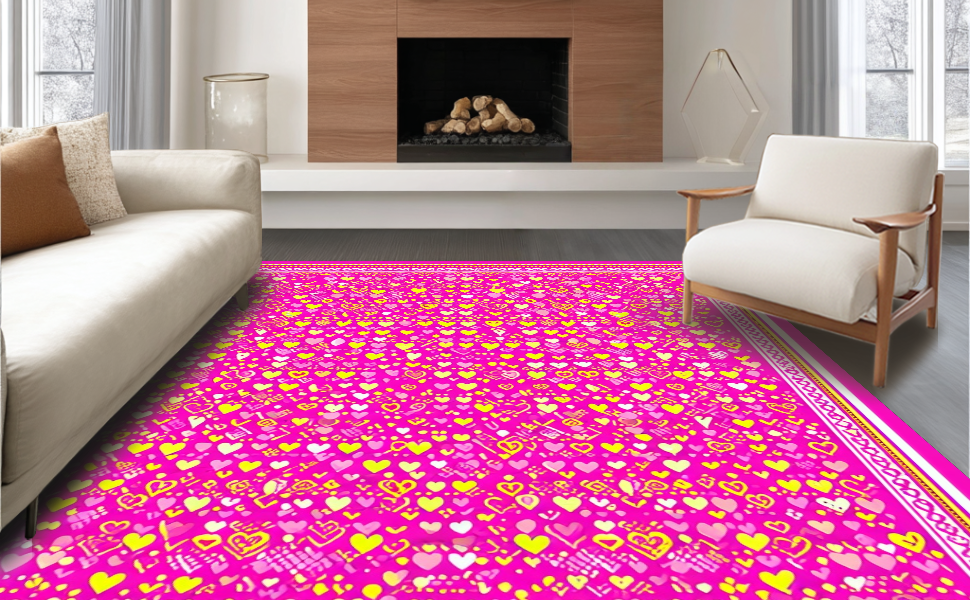 Ultra Soft Area Rug, Non Slip, Stain Resistant, Washable Area Rugs for Living Room, Bedroom, Trendy Youthful Heart Design(Pink) Overview: