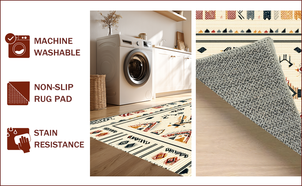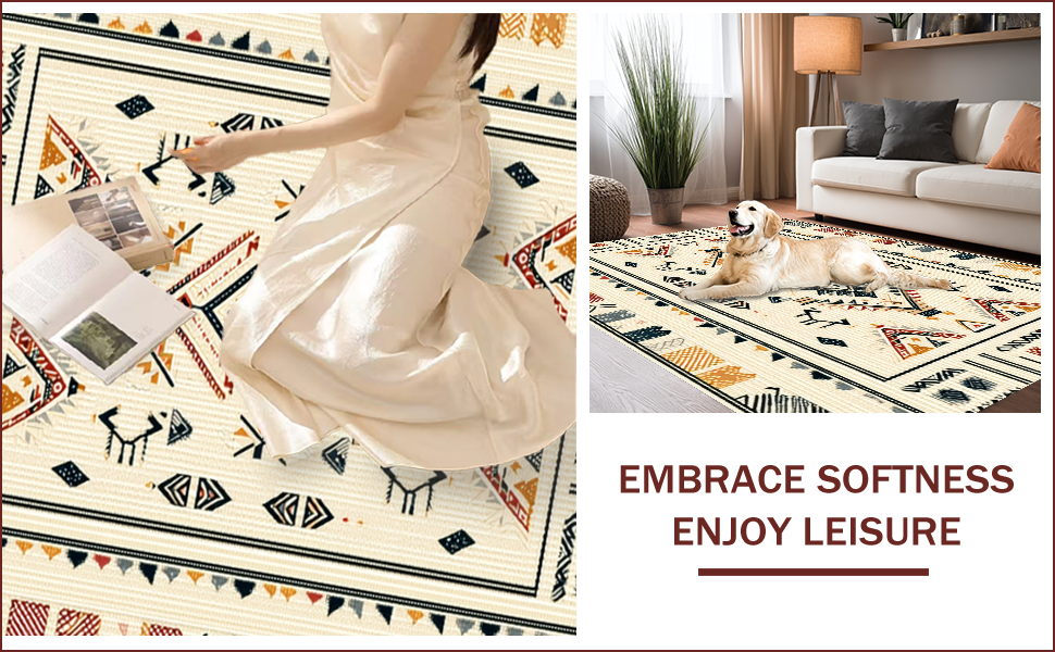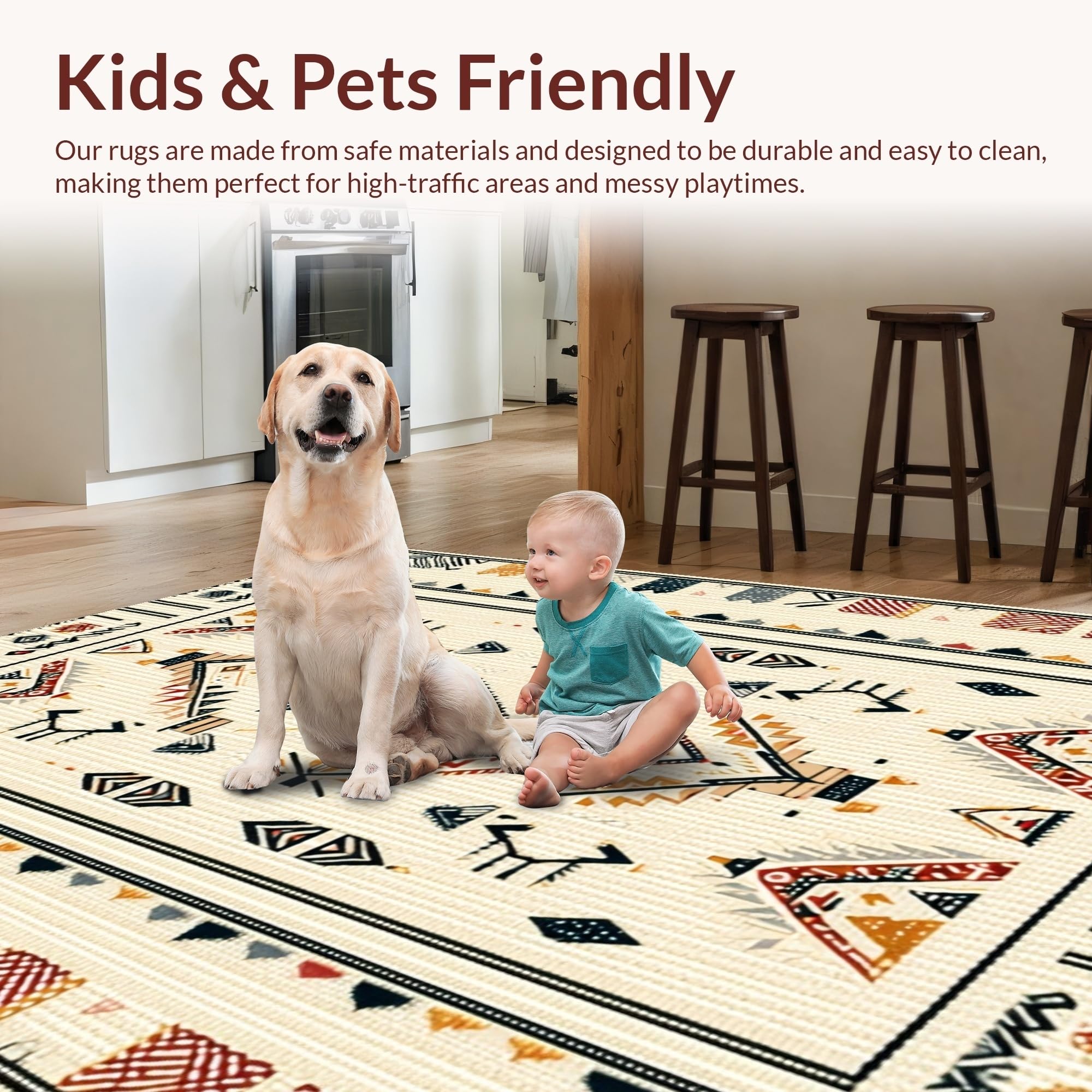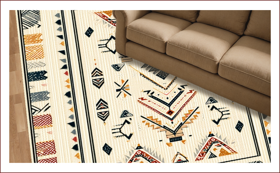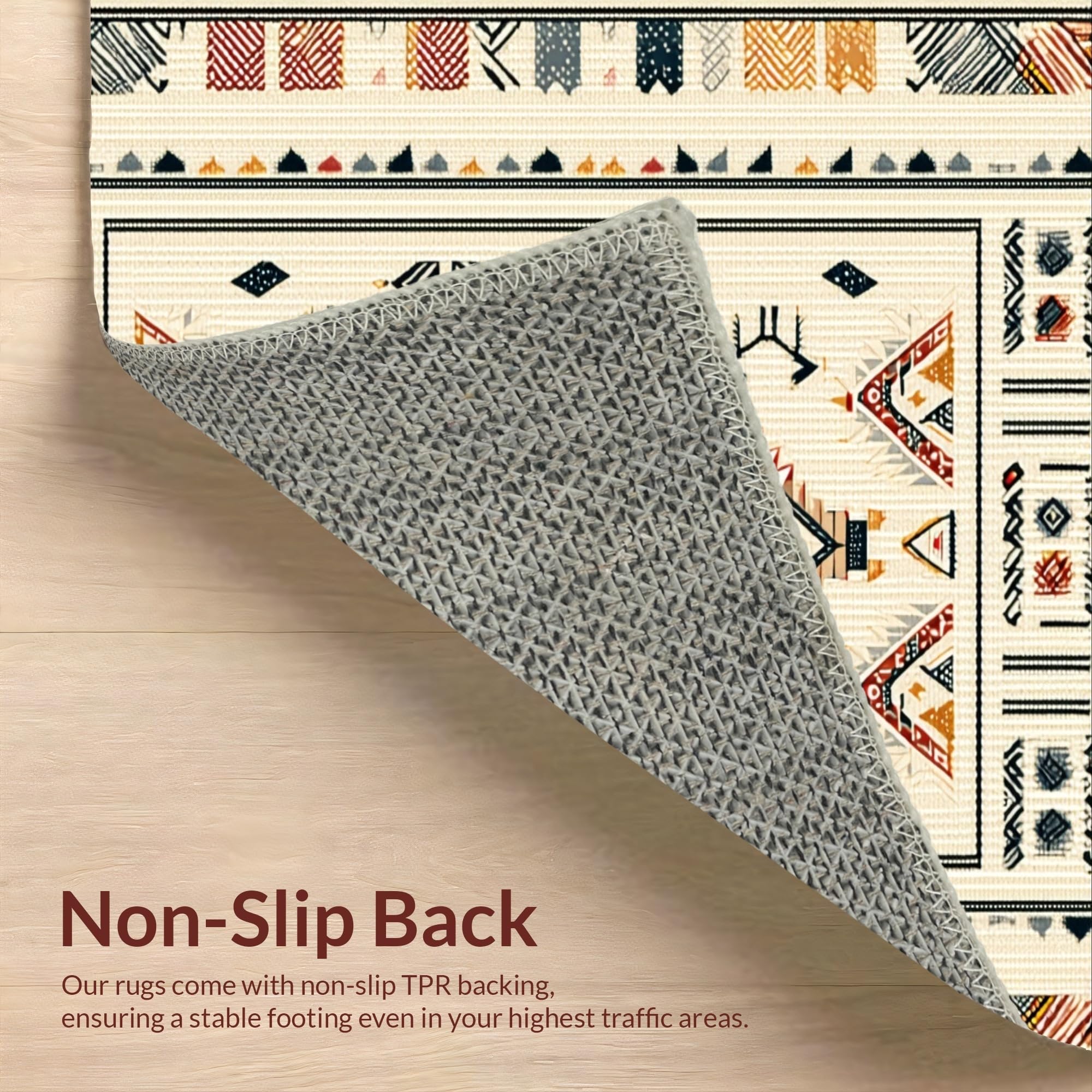 Ultra Soft Area Rug, Non Slip, Stain Resistant, Washable Area Rugs for Living Room, Bedroom, Tribal Design Plush Entryway Non-Shedding Rug(Beige) Overview: