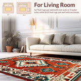 Ultra Soft Area Rug, Non Slip, Stain Resistant, Washable Area Rugs for Living Room, Bedroom, Tribal Distressed Ethnic Aesthetic(Red) Overview: