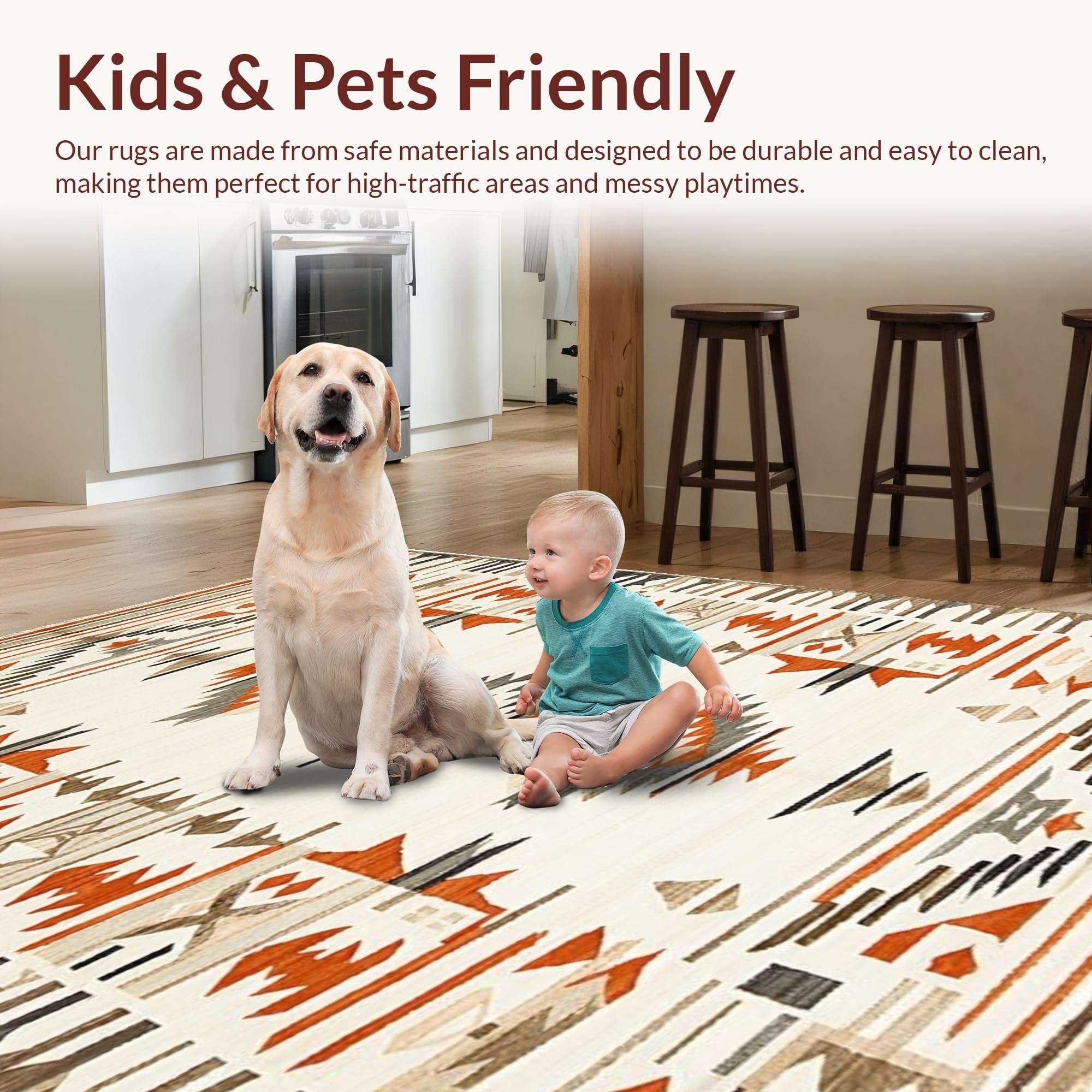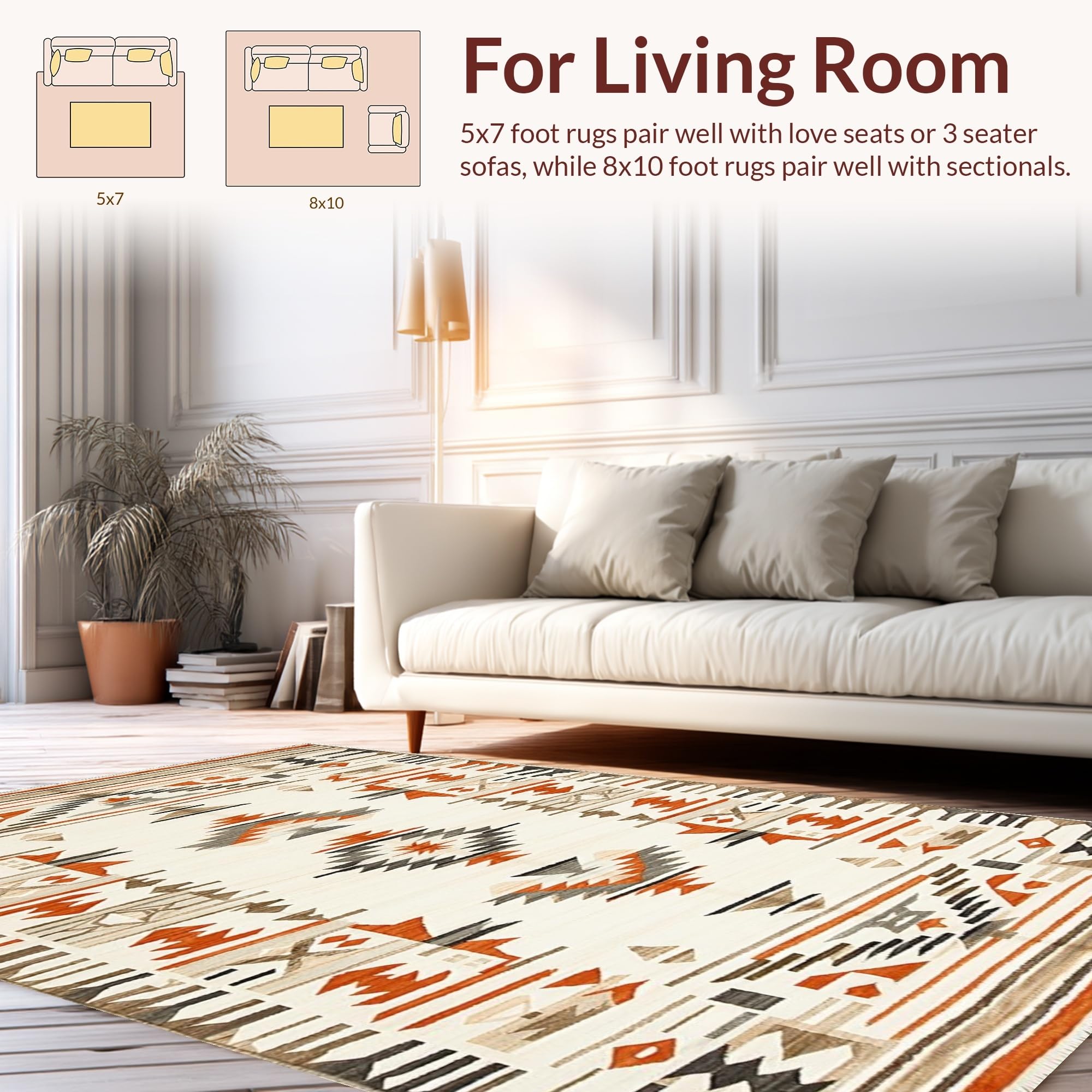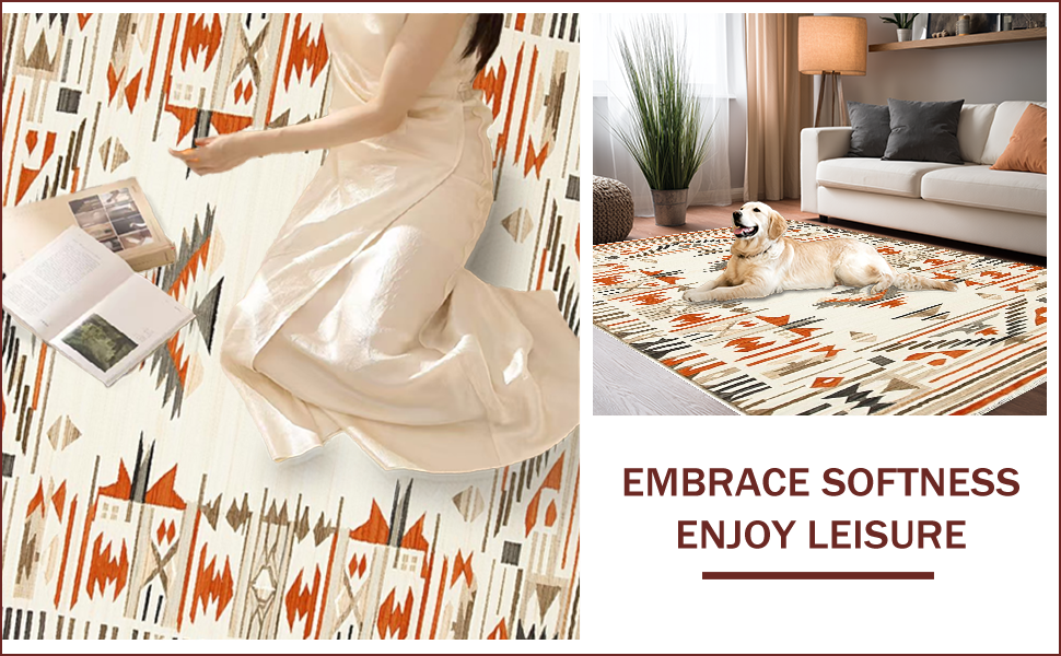 Ultra Soft Area Rug, Non Slip, Stain Resistant, Washable Area Rugs for Living Room, Bedroom, Tribal Earthy Print Aesthetic(Beige) Overview:
