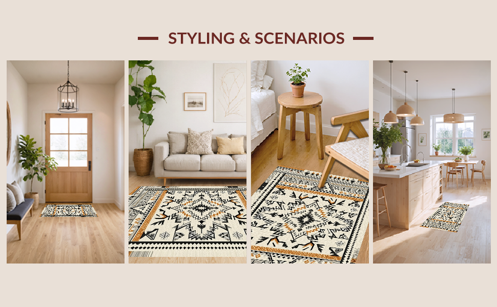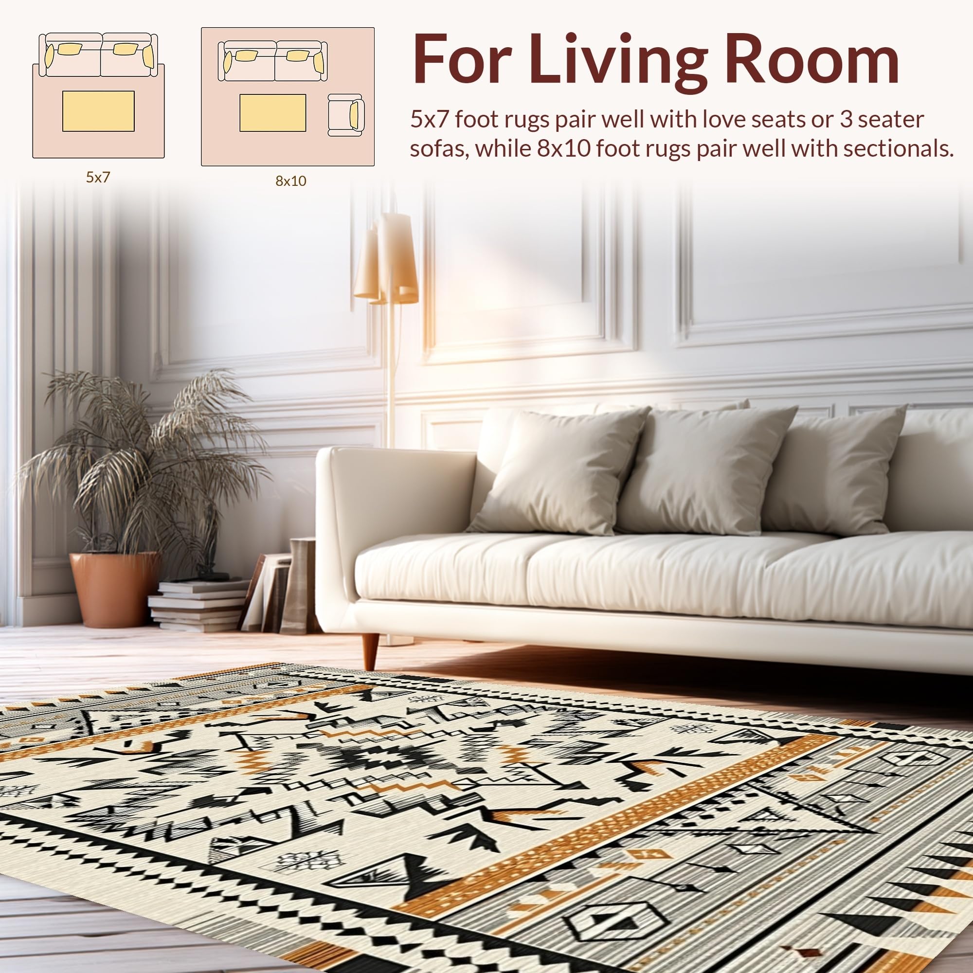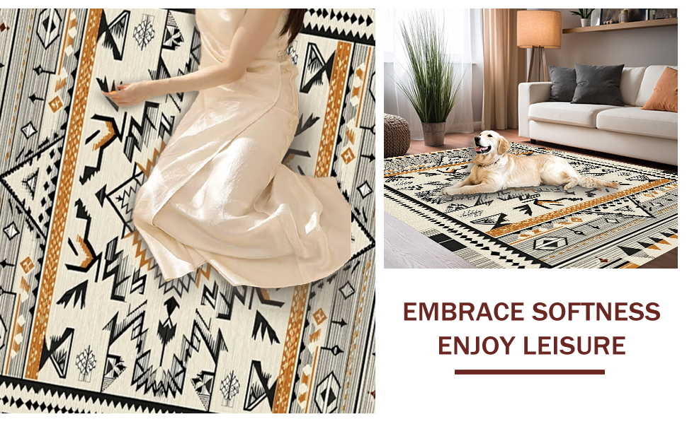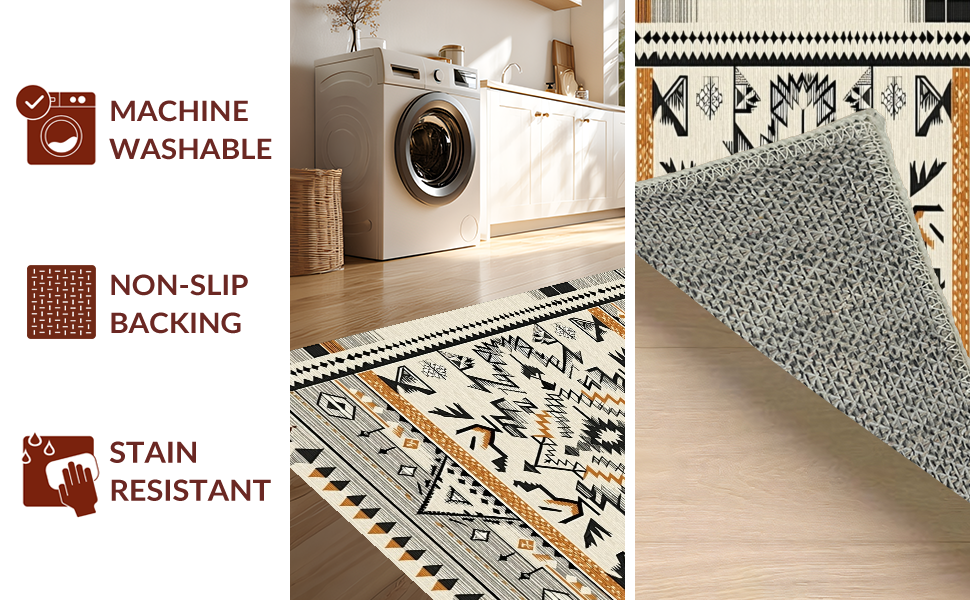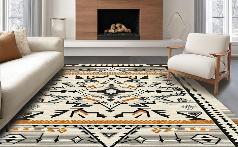 Ultra Soft Area Rug, Non Slip, Stain Resistant, Washable Area Rugs for Living Room, Bedroom, Tribal Ethnic Geometric Delight(Beige) Overview: