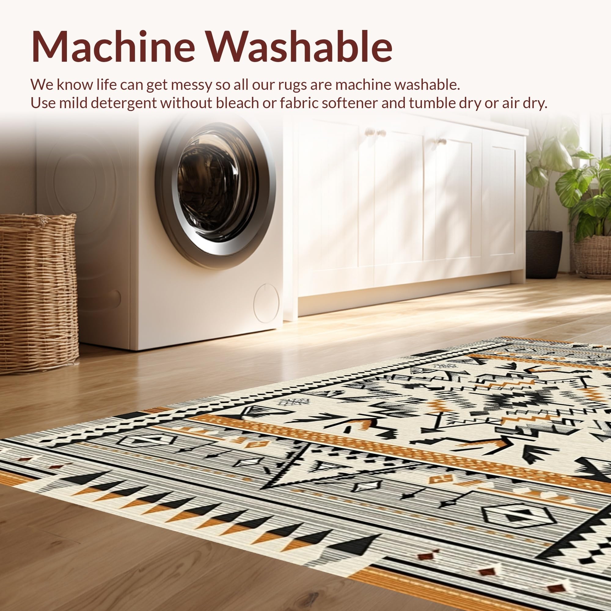 - Machine Washable: Our rugs can be easily thrown in the wash machine.