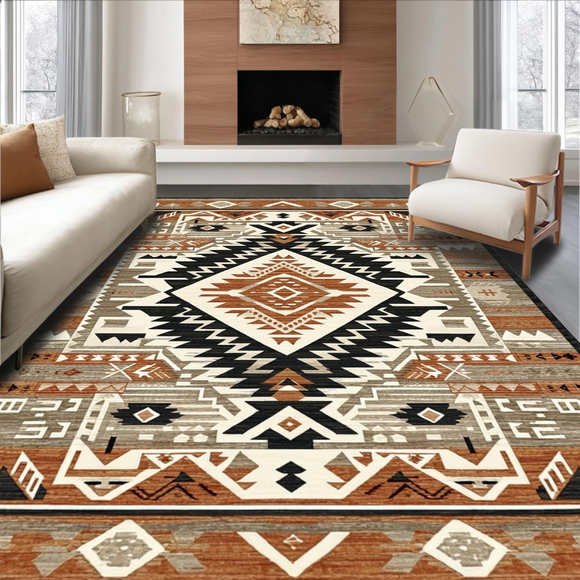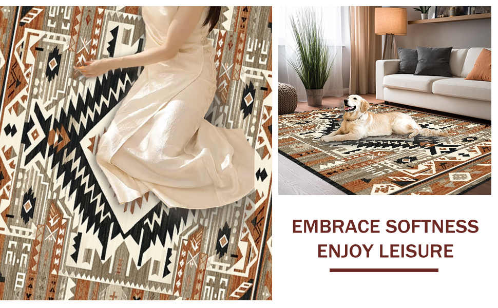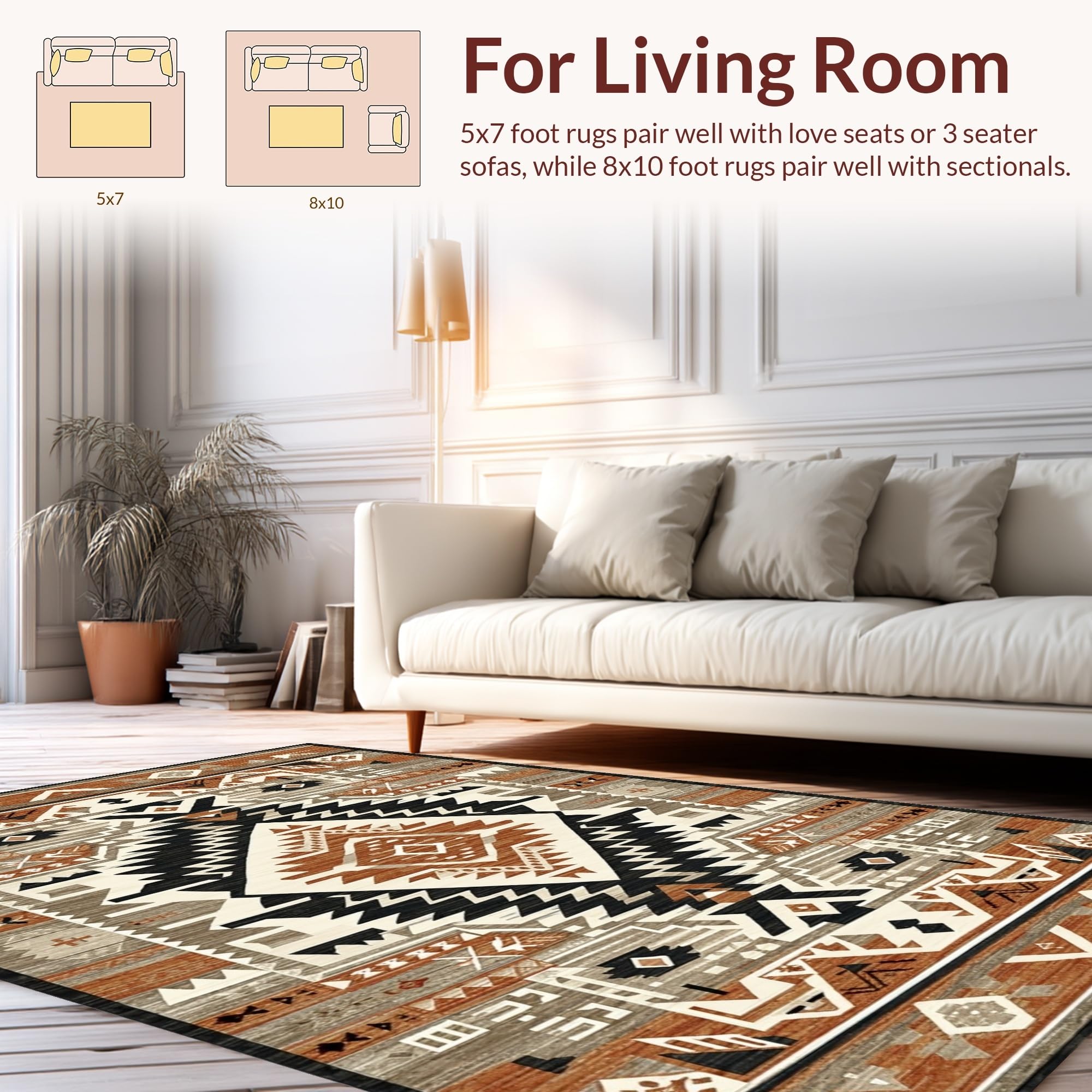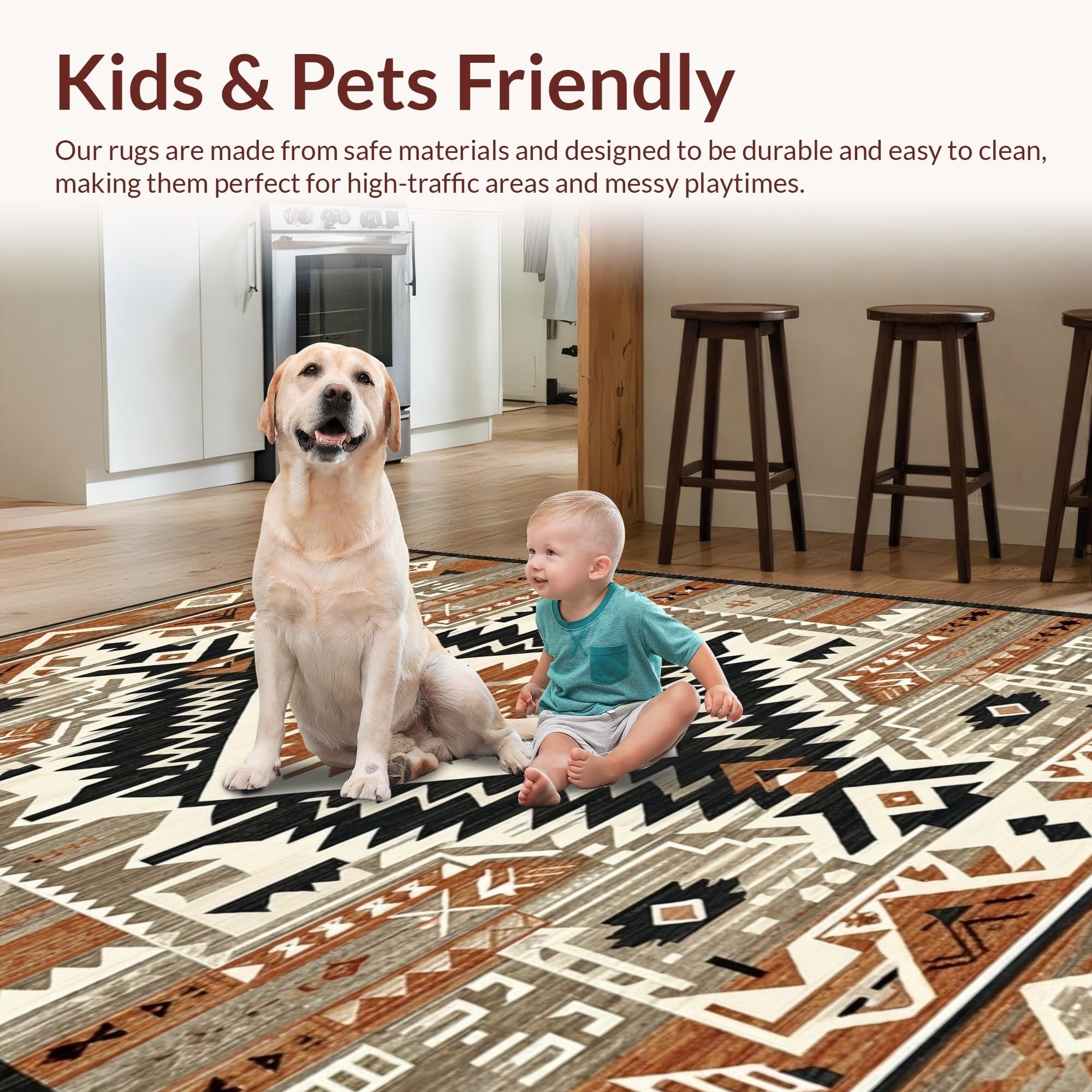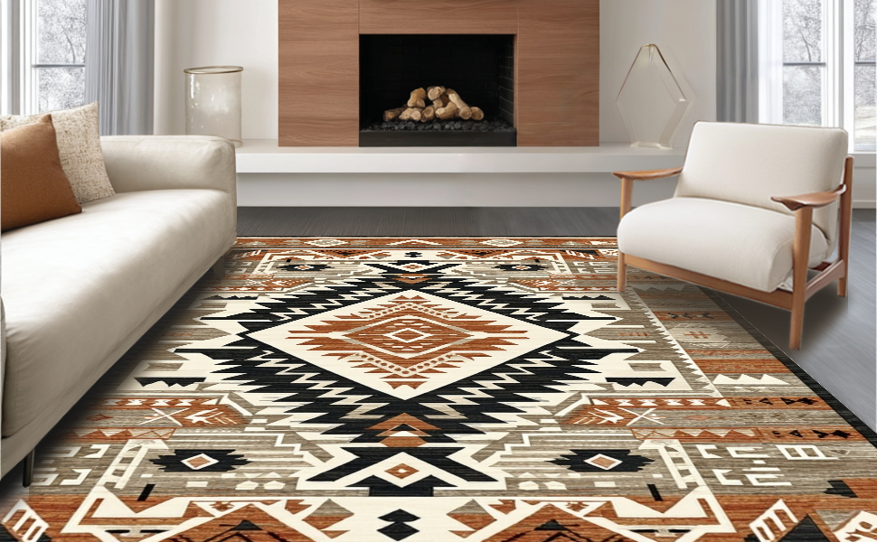 Ultra Soft Area Rug, Non Slip, Stain Resistant, Washable Area Rugs for Living Room, Bedroom, Tribal Textured Earthy Palette(Brown) Overview: