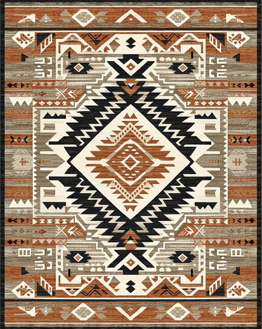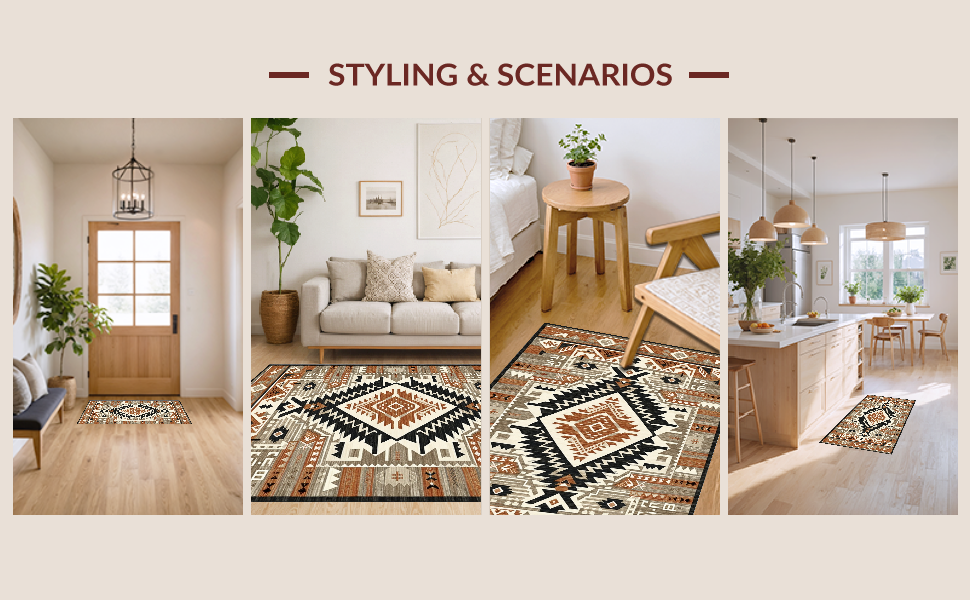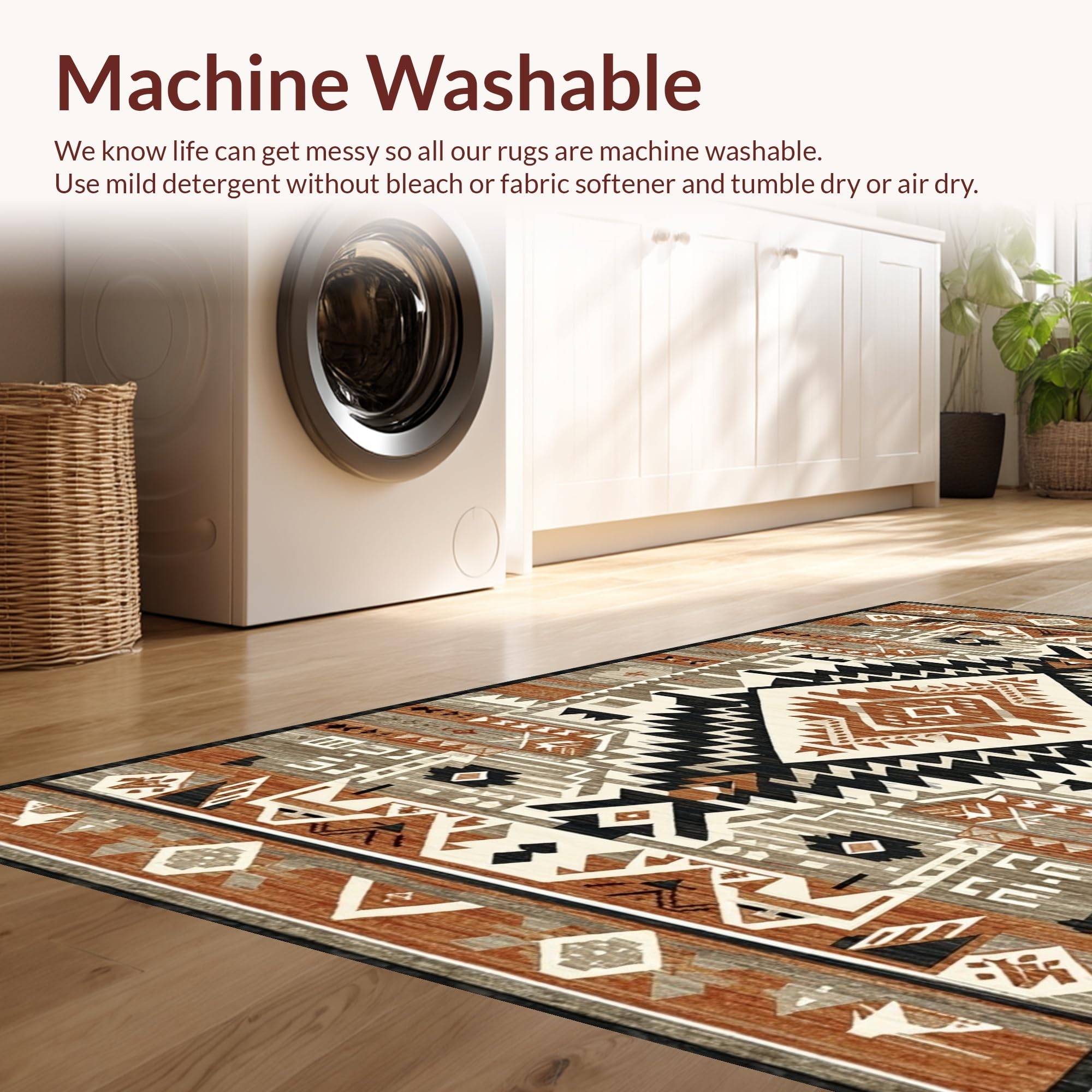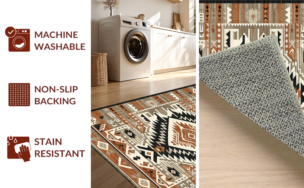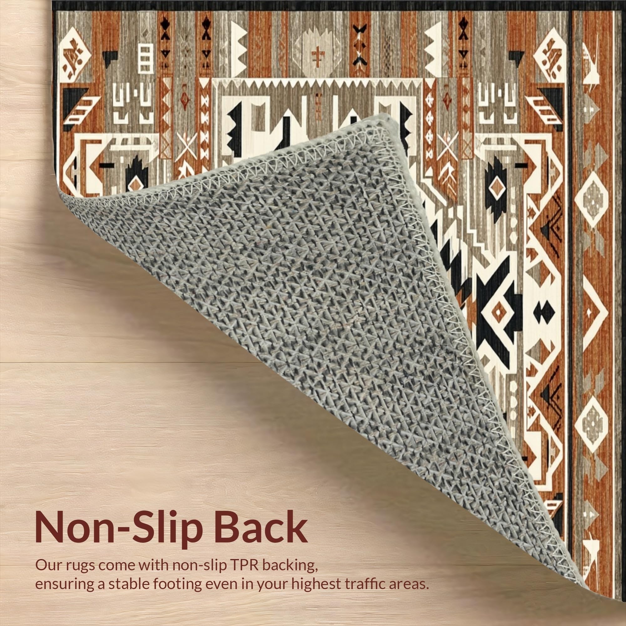 Ultra Soft Area Rug, Non Slip, Stain Resistant, Washable Area Rugs for Living Room, Bedroom, Tribal Textured Earthy Palette(Brown) Overview: