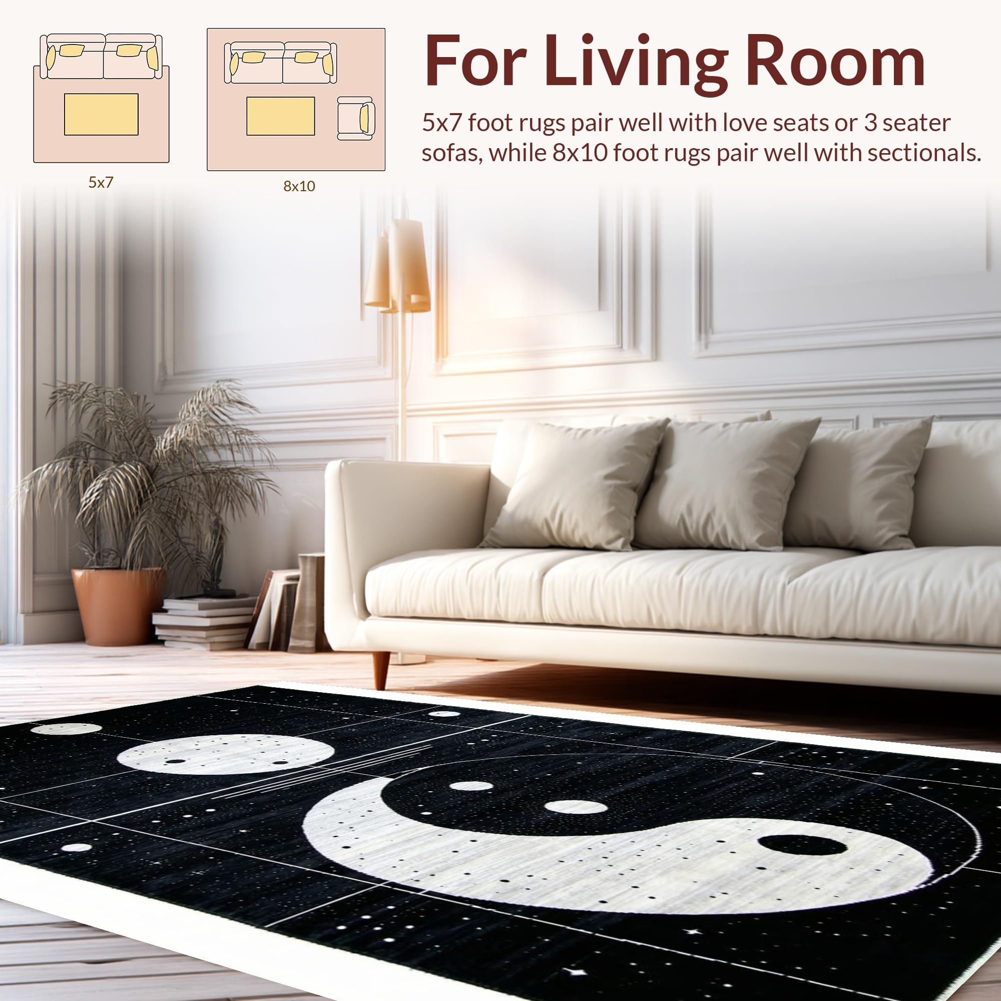 Ultra Soft Area Rug, Non Slip, Stain Resistant, Washable Area Rugs for Living Room, Bedroom, Trippy Multi-Colored Abstract Aesthetic(Black) Overview:
