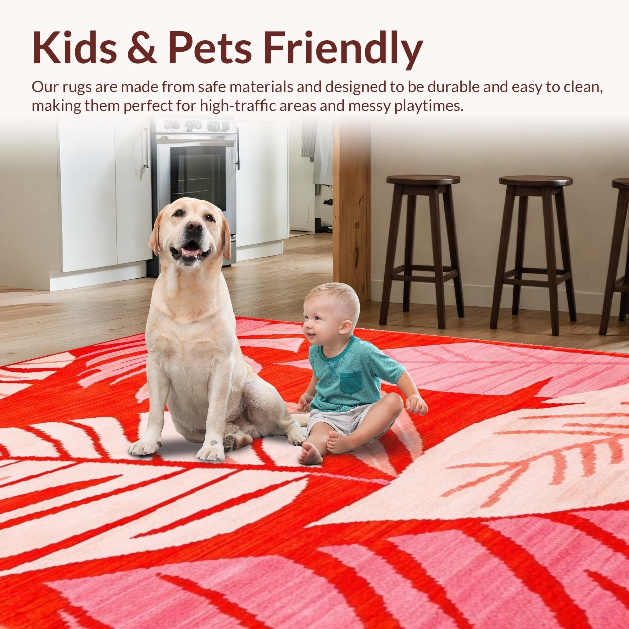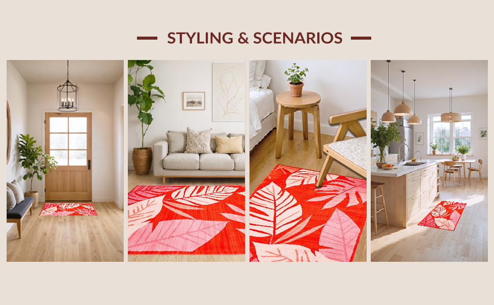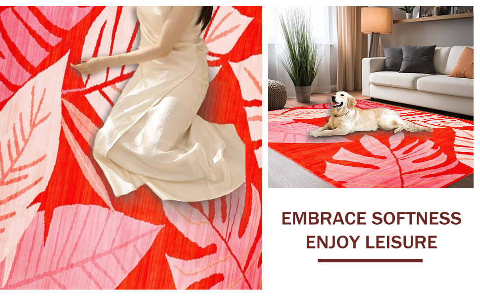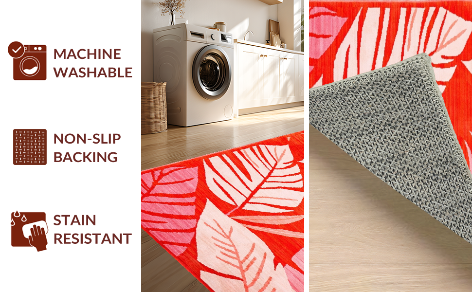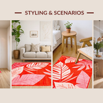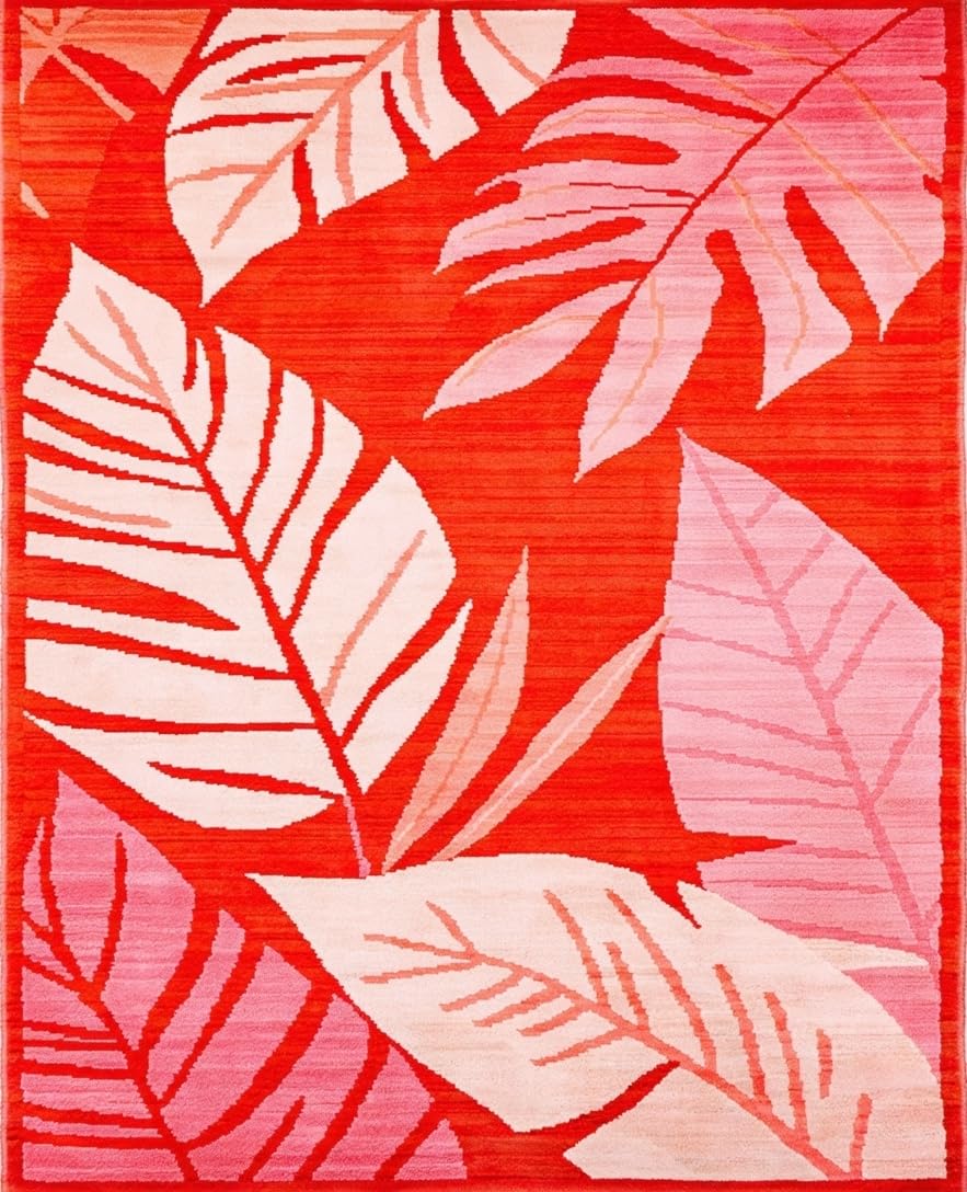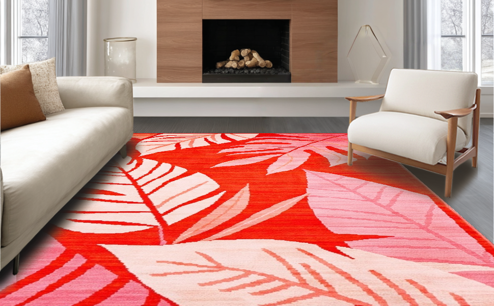 Ultra Soft Area Rug, Non Slip, Stain Resistant, Washable Area Rugs for Living Room, Bedroom, Tropical Abstract Leaf Patterns(Red) Overview: