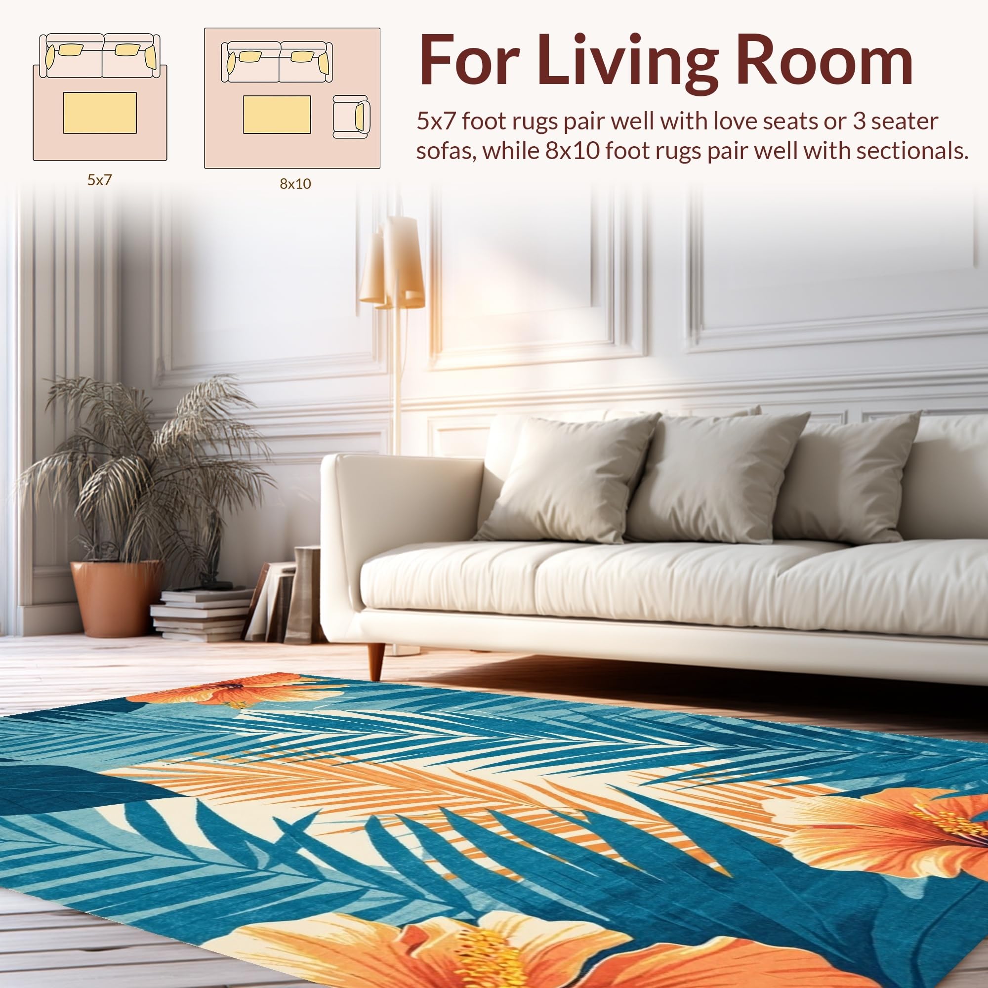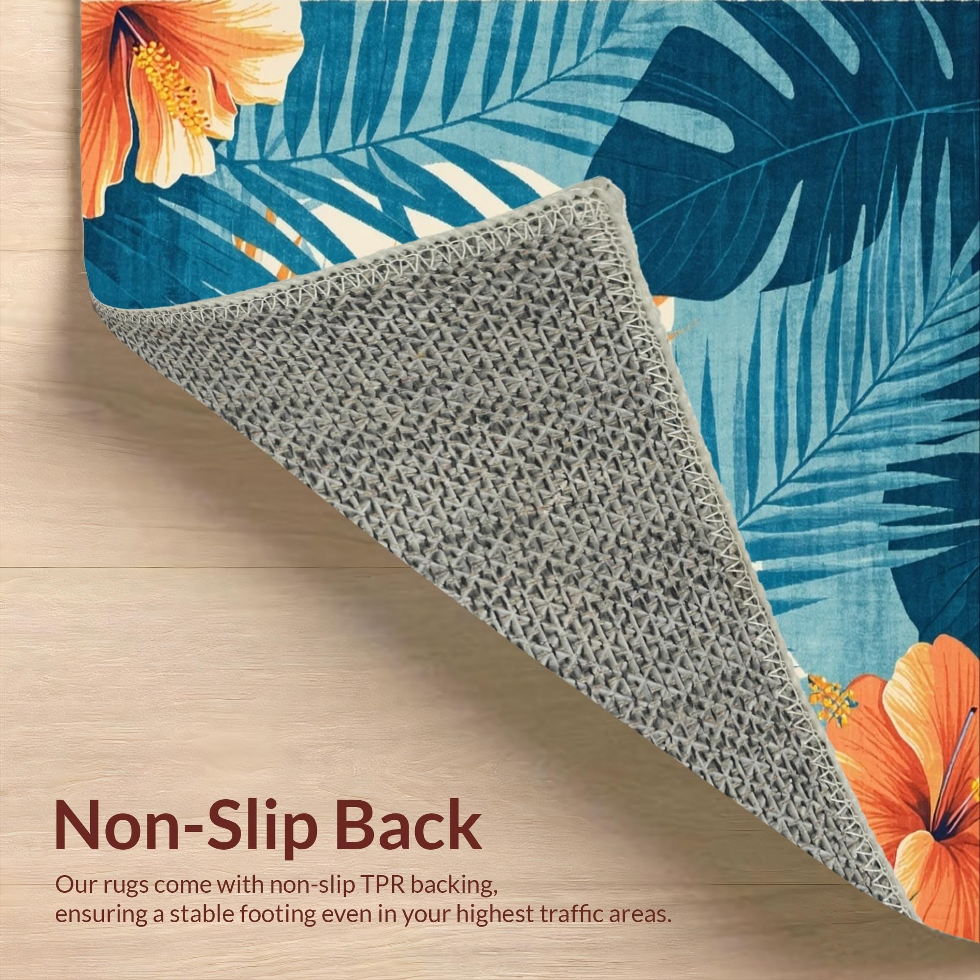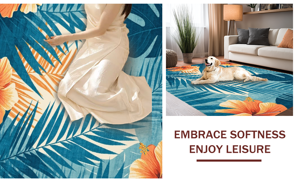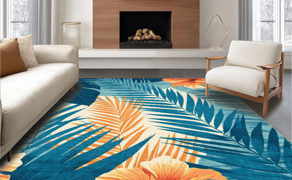 Ultra Soft Area Rug, Non Slip, Stain Resistant, Washable Area Rugs for Living Room, Bedroom, Tropical Botanical Leaf Print(Blue) Overview: