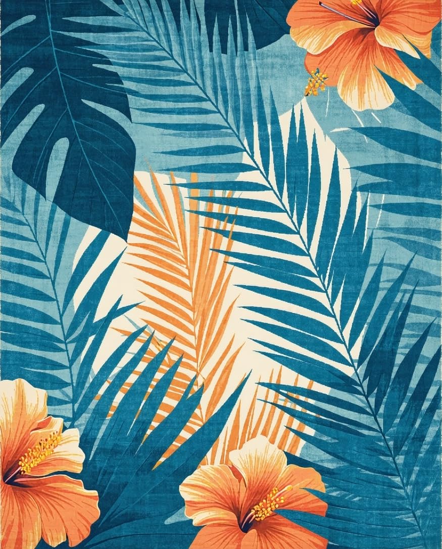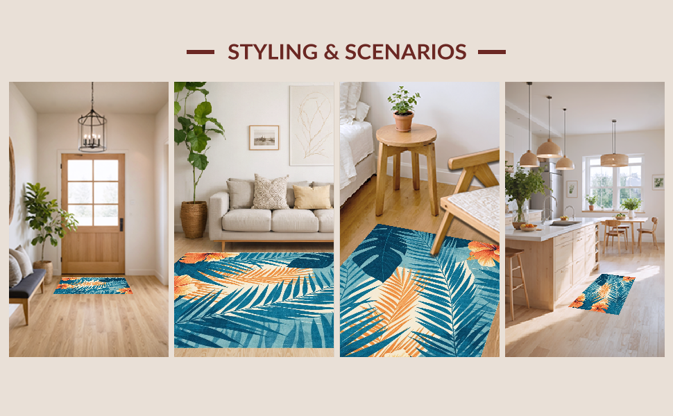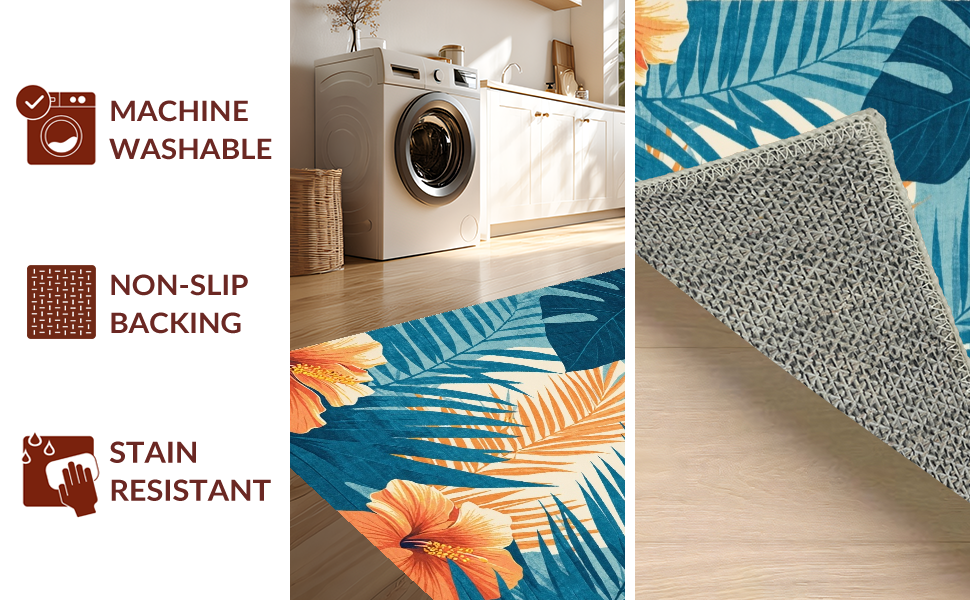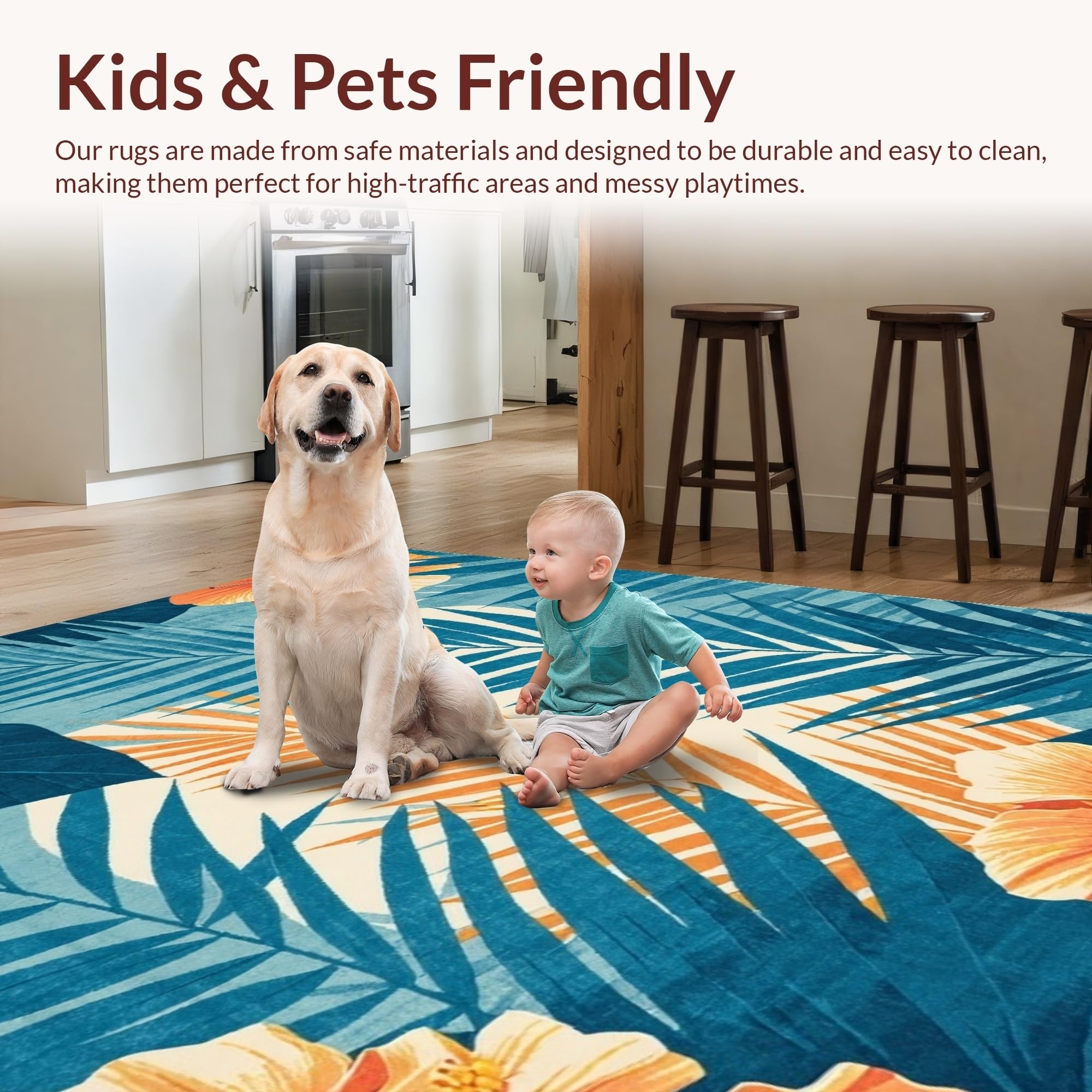 Ultra Soft Area Rug, Non Slip, Stain Resistant, Washable Area Rugs for Living Room, Bedroom, Tropical Botanical Leaf Print(Blue) Overview: