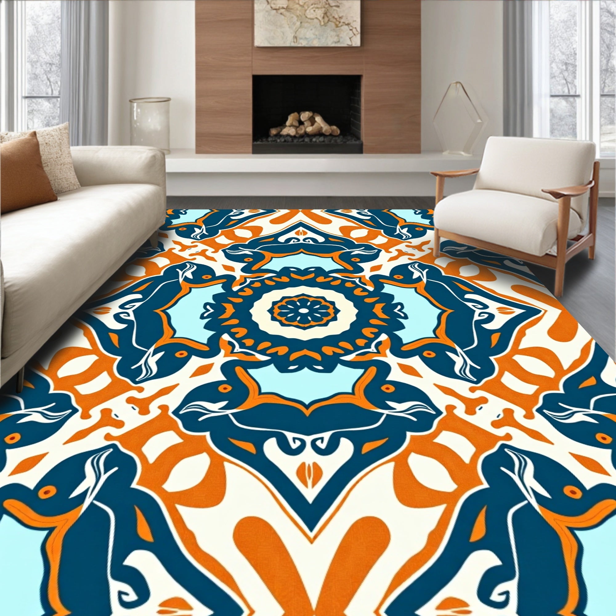 Ultra Soft Area Rug, Non Slip, Stain Resistant, Washable Area Rugs for Living Room, Bedroom, Tropical Conch Shell with Sand Dollar Accents(Orange) Overview: