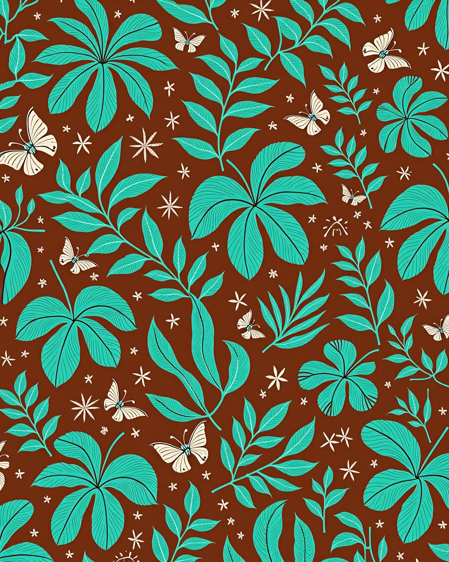 Tropical Jungle Wonderland Exotic Verdant Leafy Foliage(Brown)