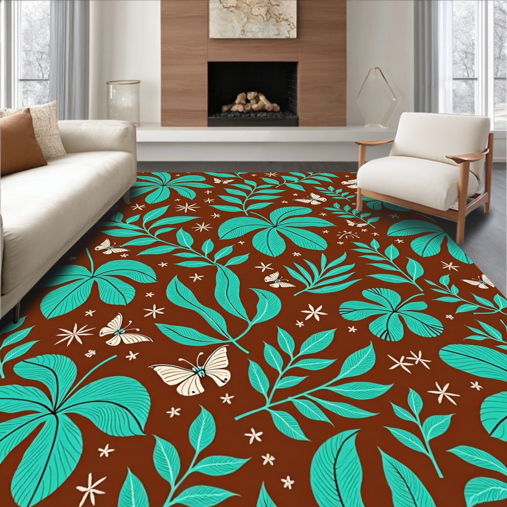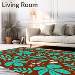 Flatwoven High Traffic Area Rug, Tropical Jungle Wonderland Exotic Verdant Leafy Foliage, Non Slip, Stain Resistant, Washable Area Rugs for Living Room, Bedroom (Brown) Overview: