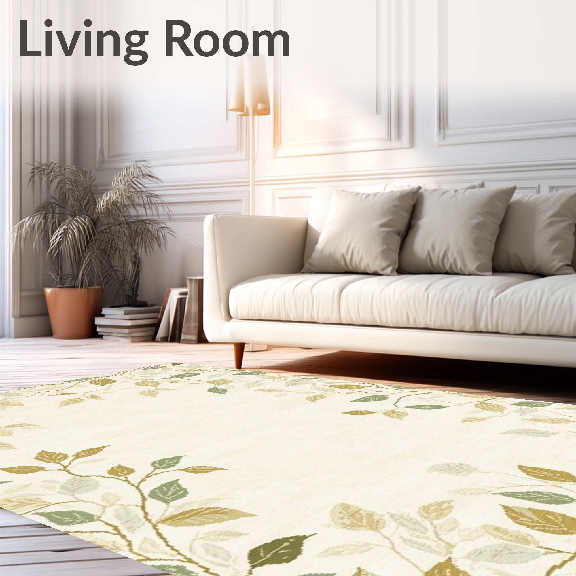 Ultra Soft Area Rug, Non Slip, Stain Resistant, Washable Area Rugs for Living Room, Bedroom, Tropical Leaf Area Natural Botanical Beige(Beige) Overview: